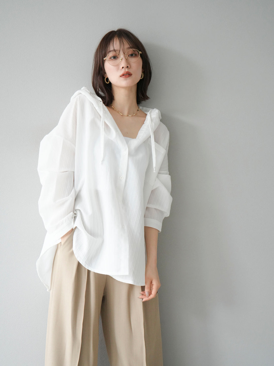 [予約]ワッシャーストライプフーディーシャツ/オフ