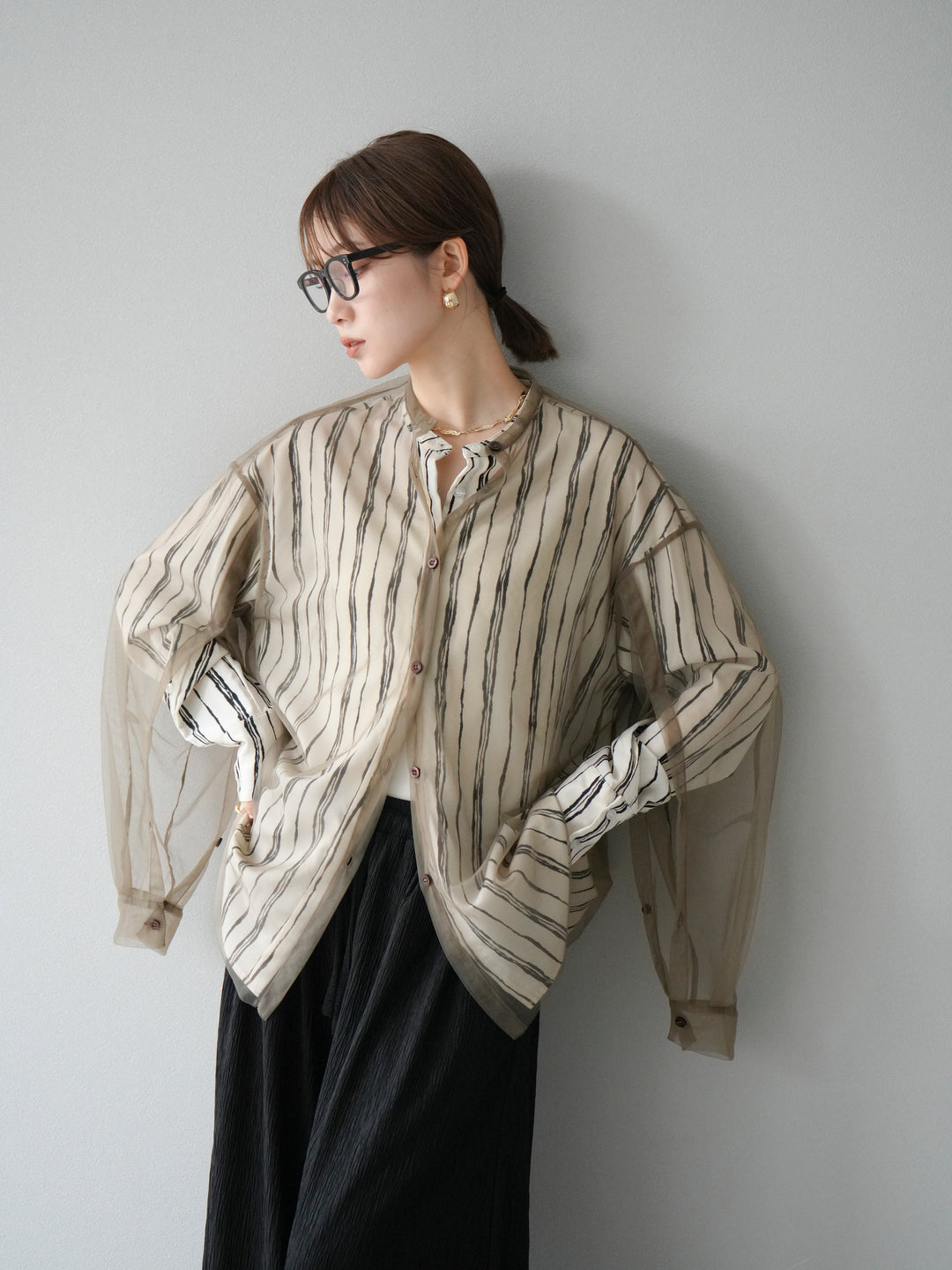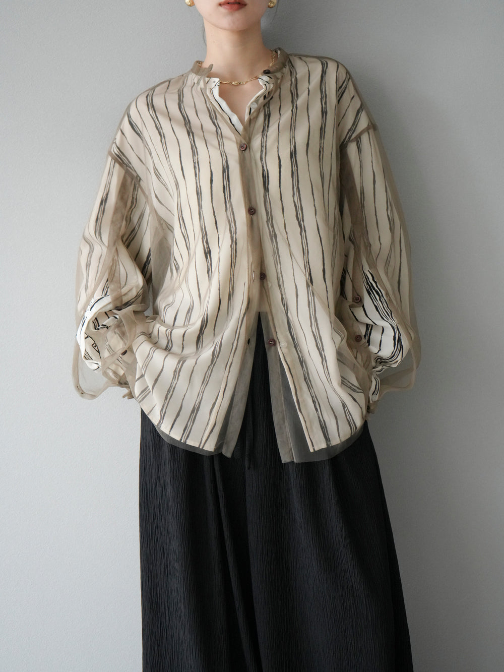 [予約]2WAYスリーブチュールシャツ/ベージュ