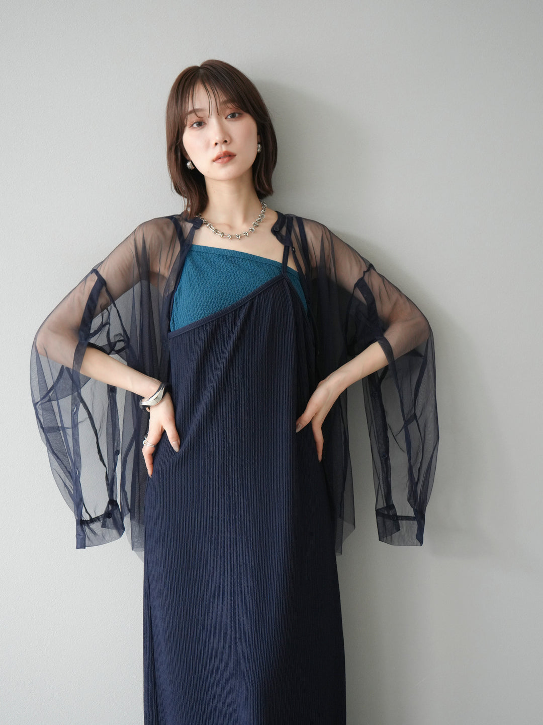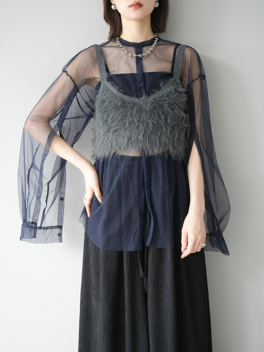 [予約]2WAYスリーブチュールシャツ/ネイビー