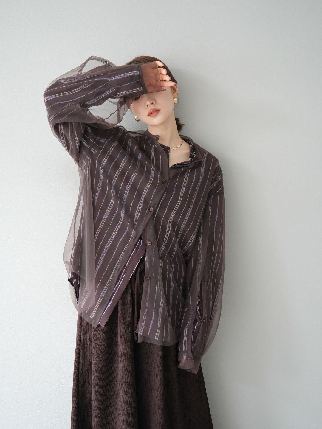 [予約]2WAYスリーブチュールシャツ/ブラウン