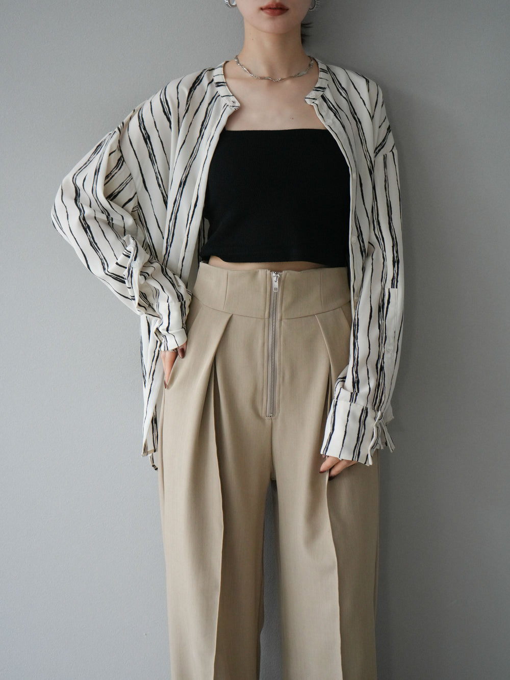[予約]ペンタッチストライプ2WAYスリーブバンドカラーシャツ/アイボリー