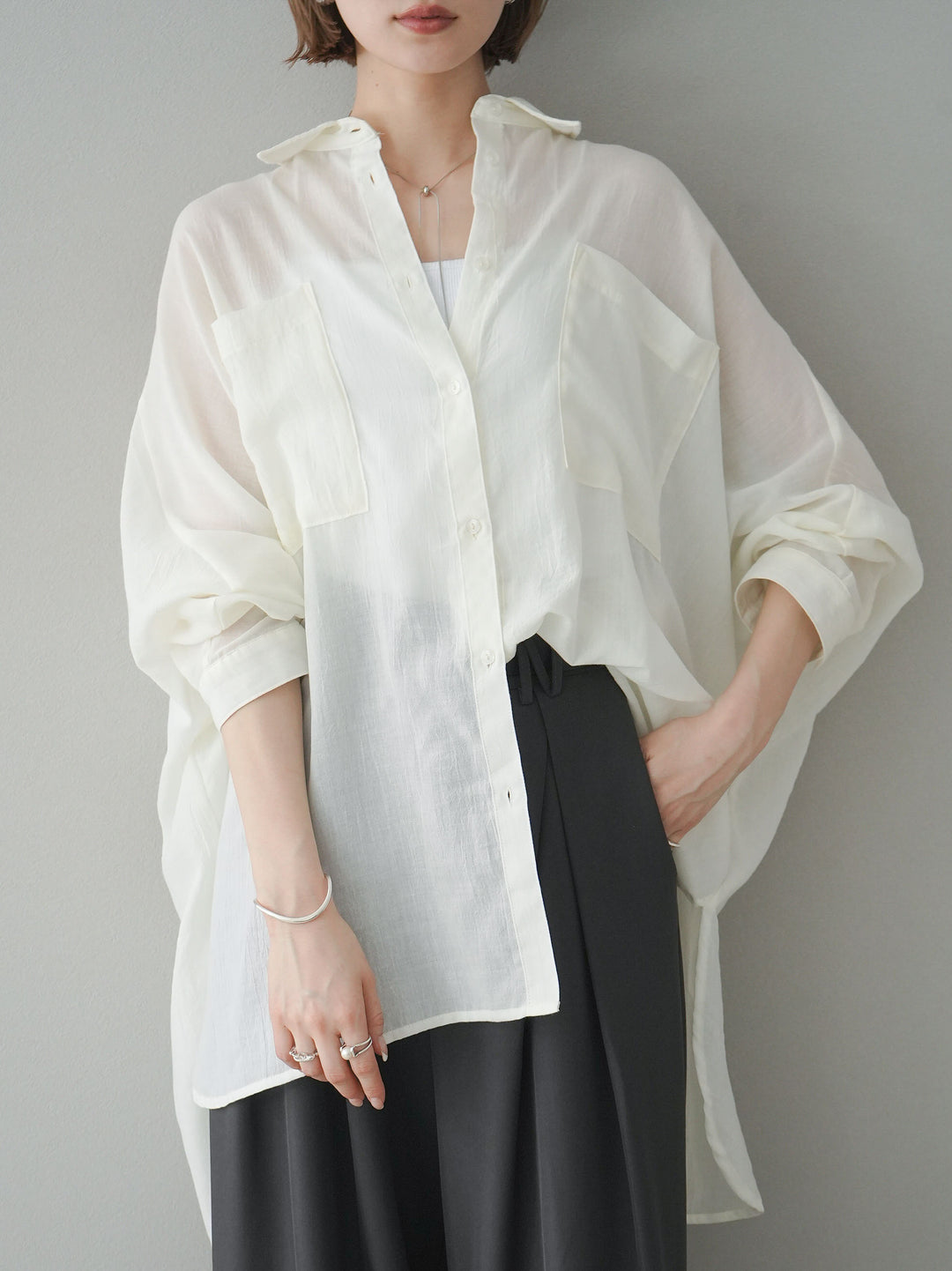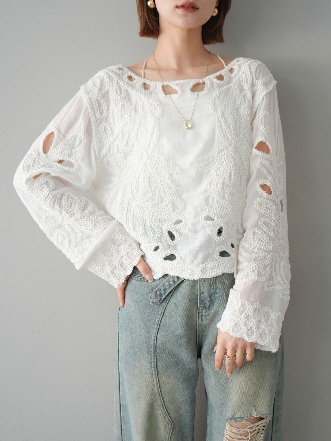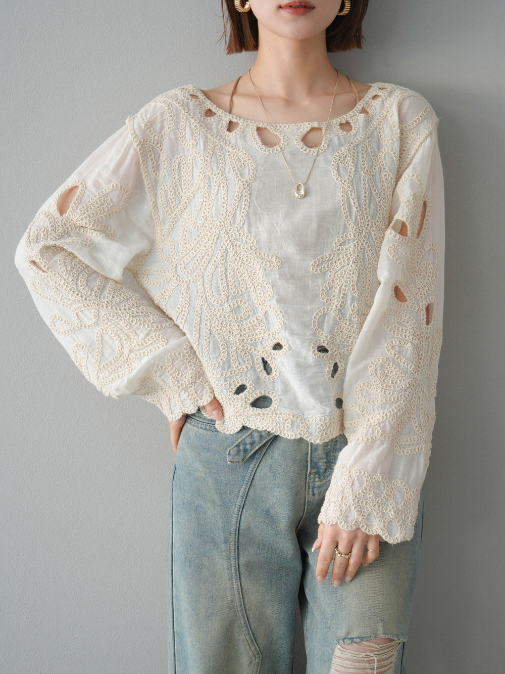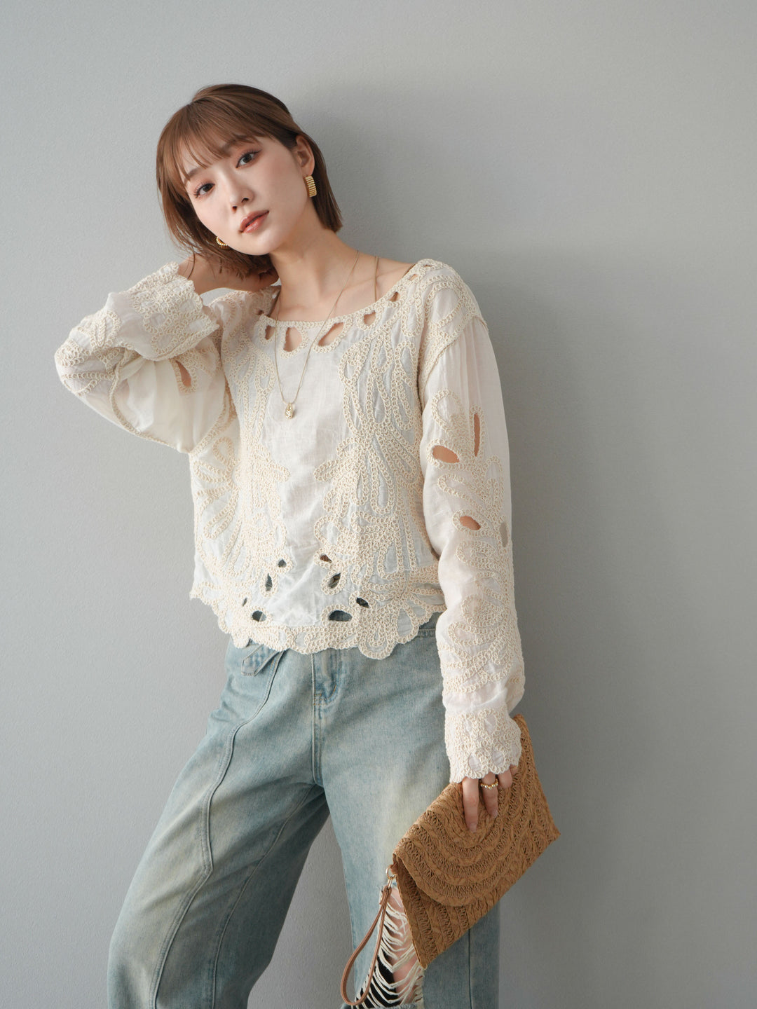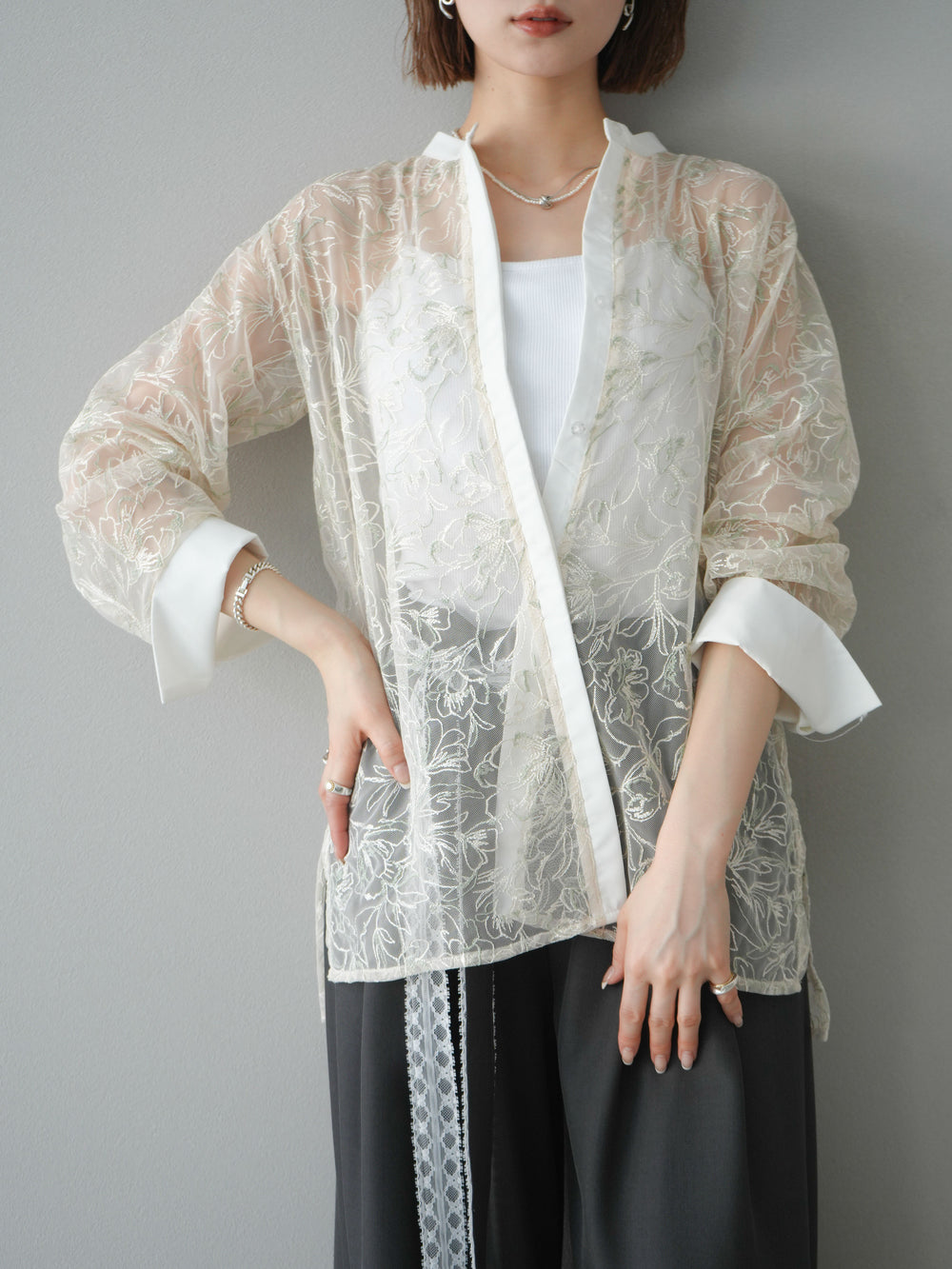 [予約]チュールフラワー刺繍オーバーシャツ/エクリュ