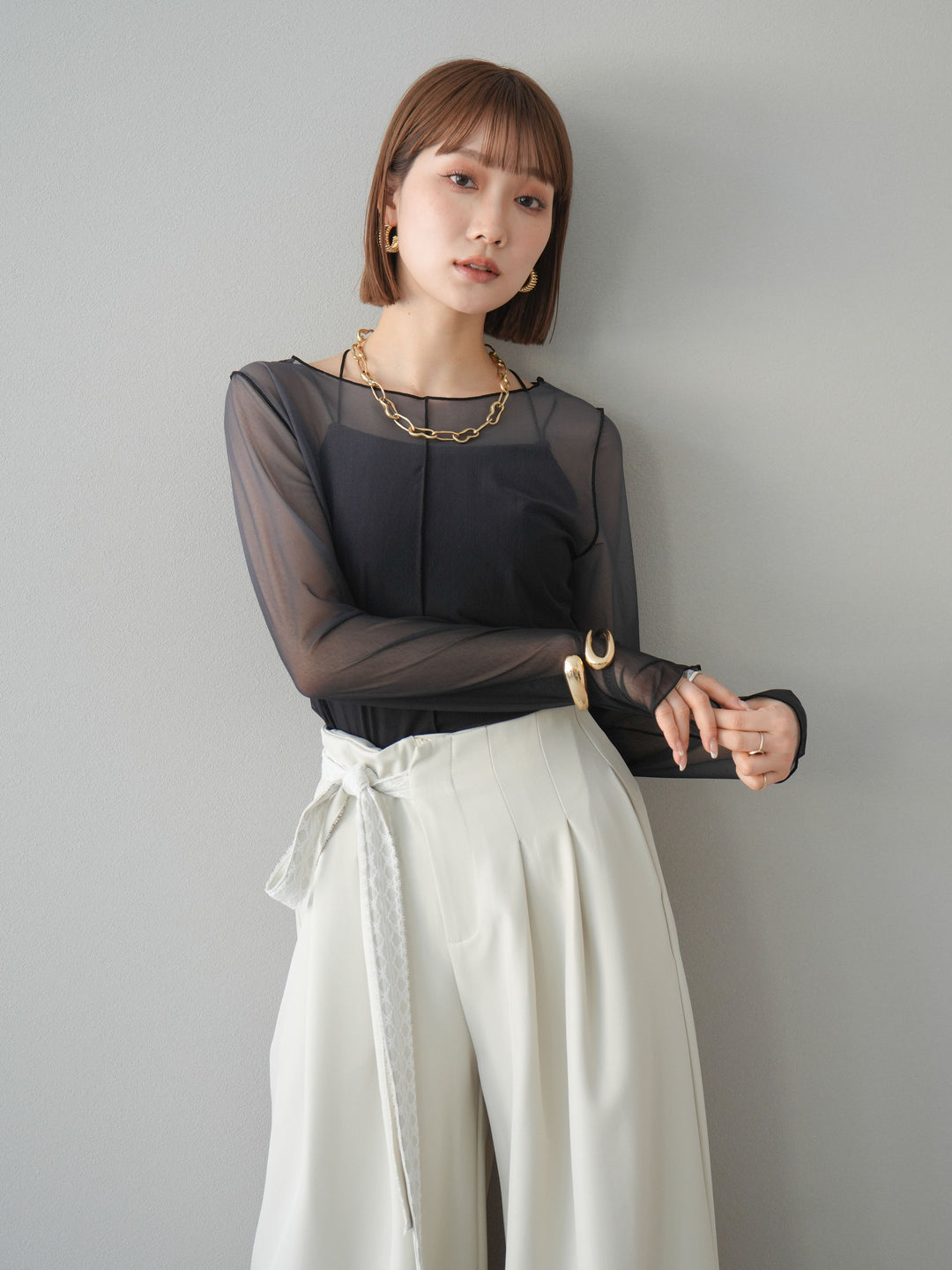 [予約]シアードレープレイヤードノースリーブトップス/ブラック
