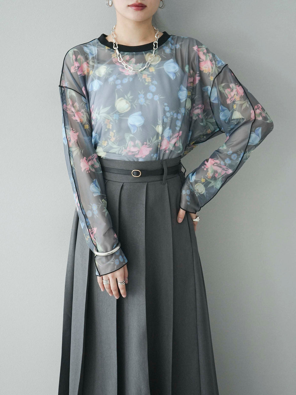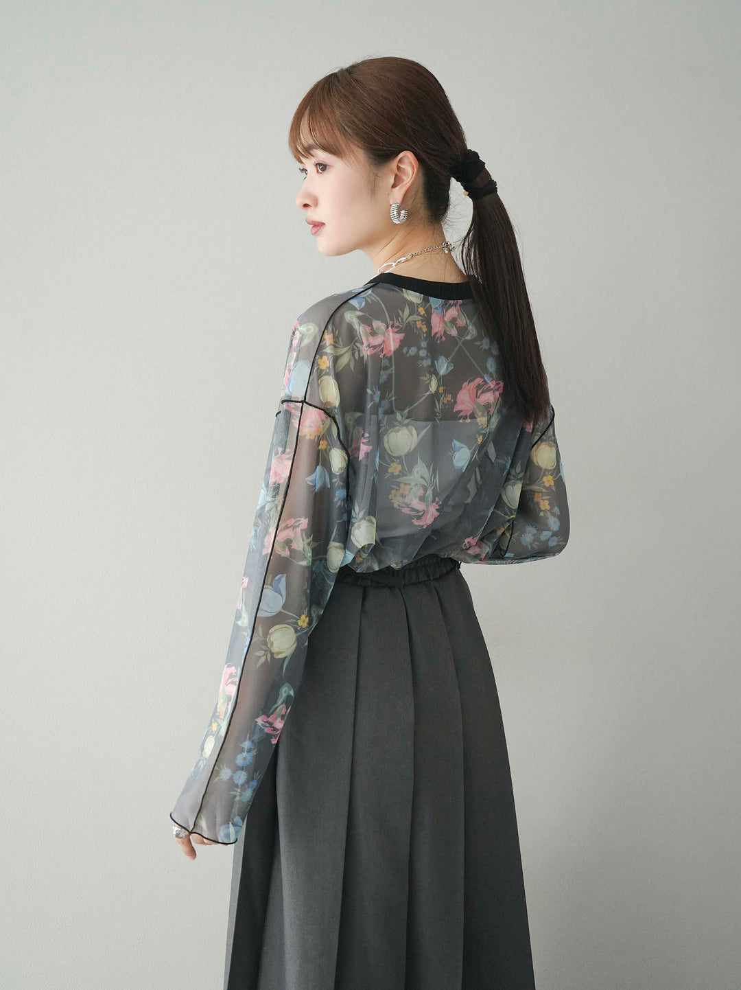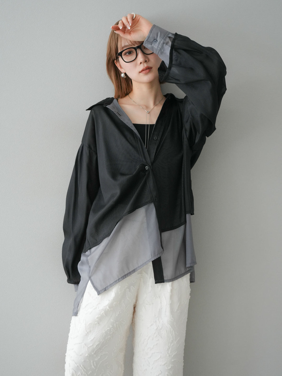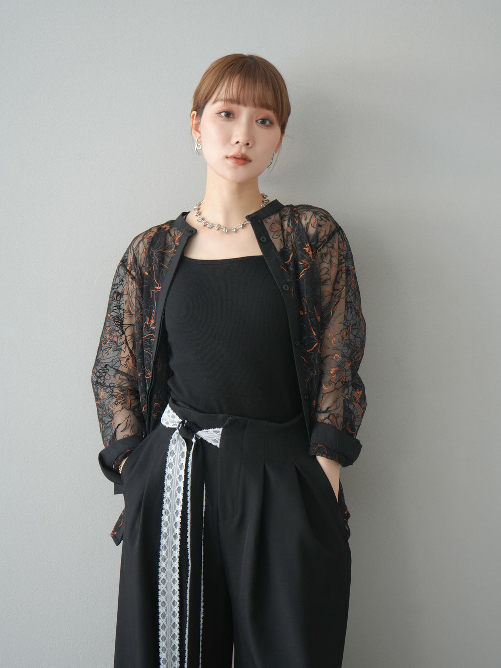 [予約]チュールフラワー刺繍オーバーシャツ/ブラック