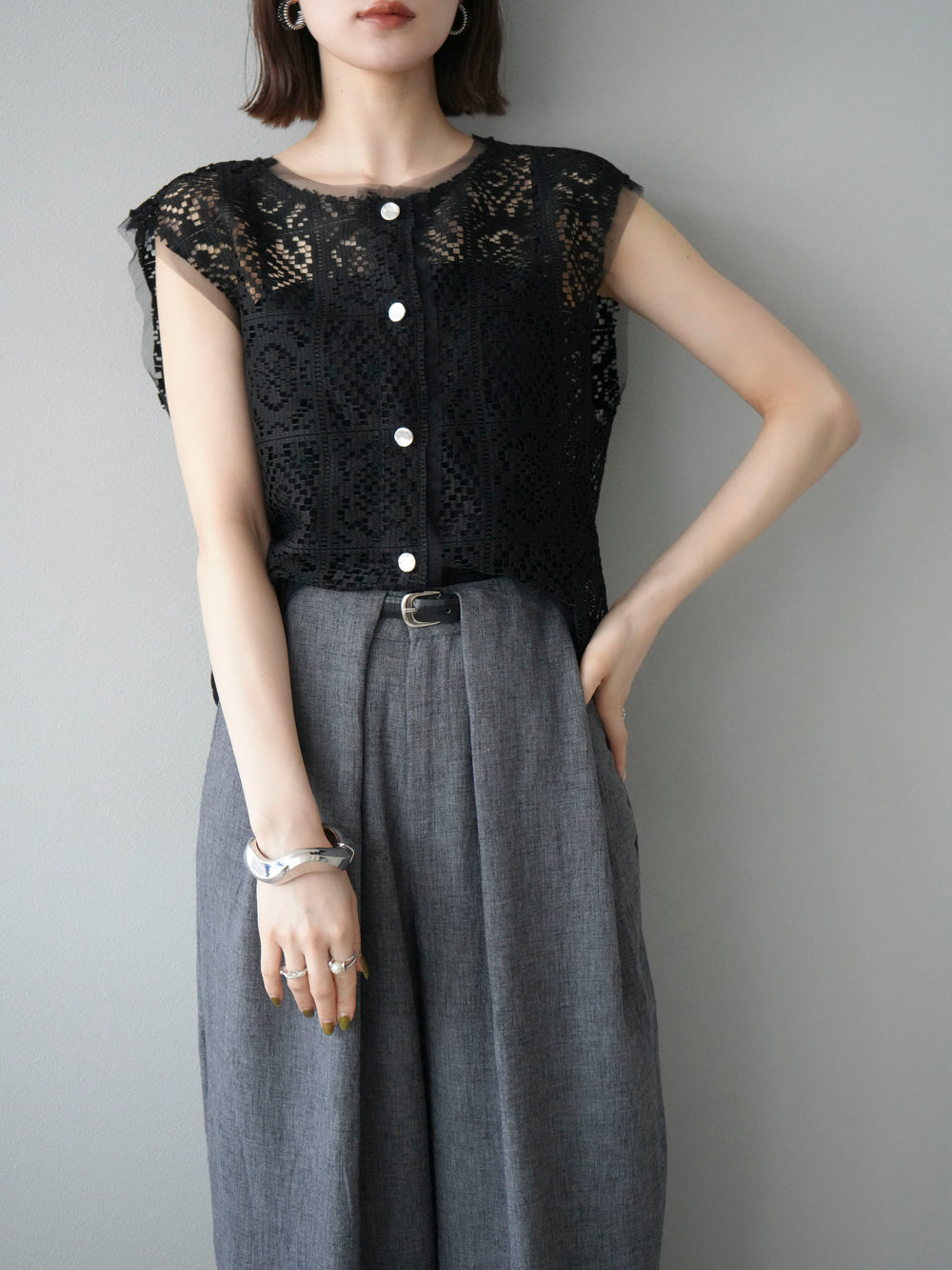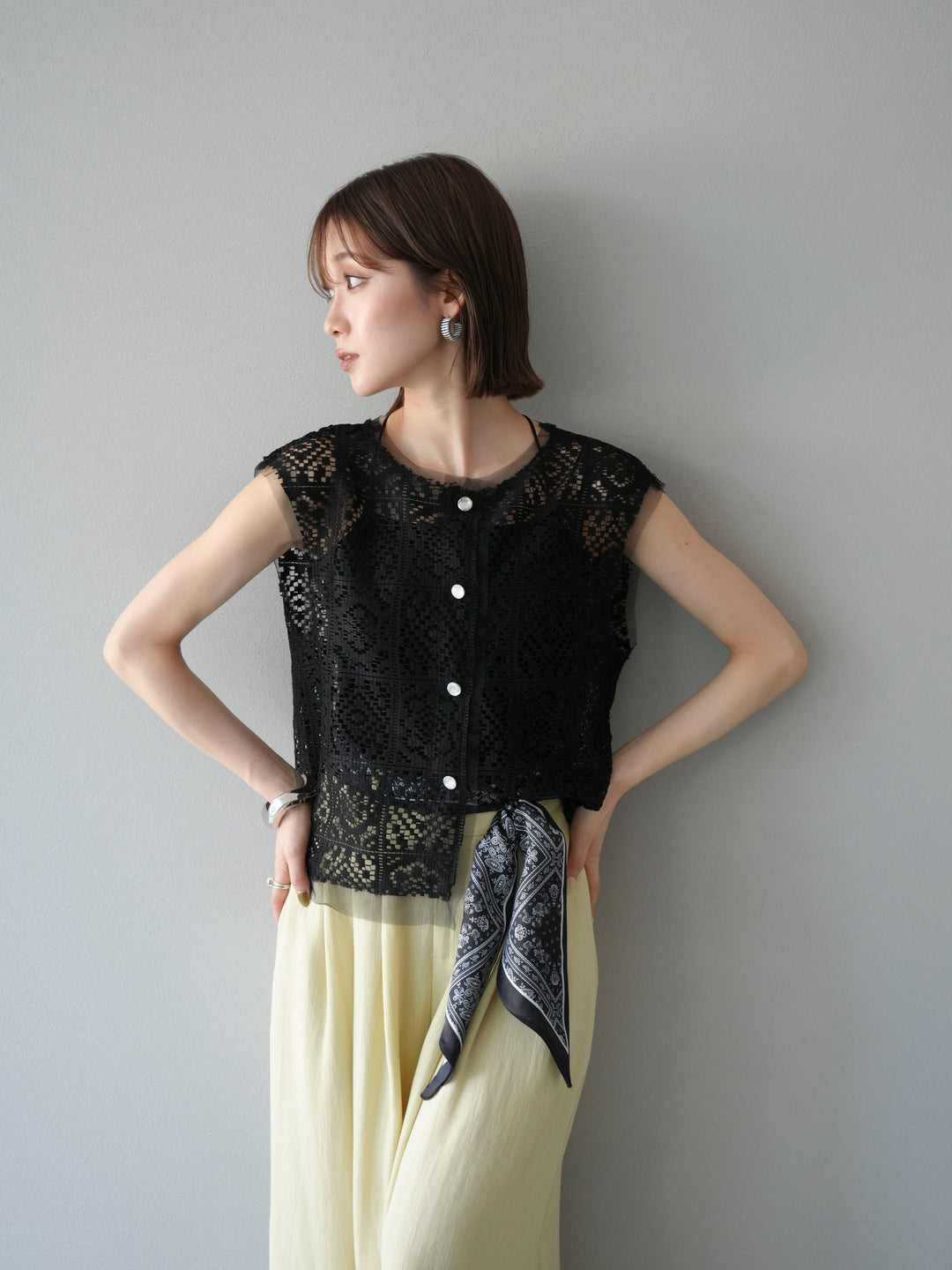 [予約]エンブロイダリーレースタックショルダーブラウス/ブラック