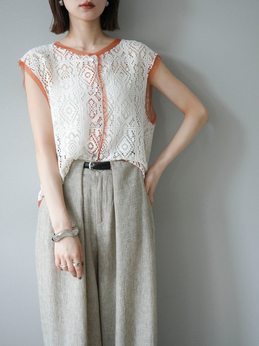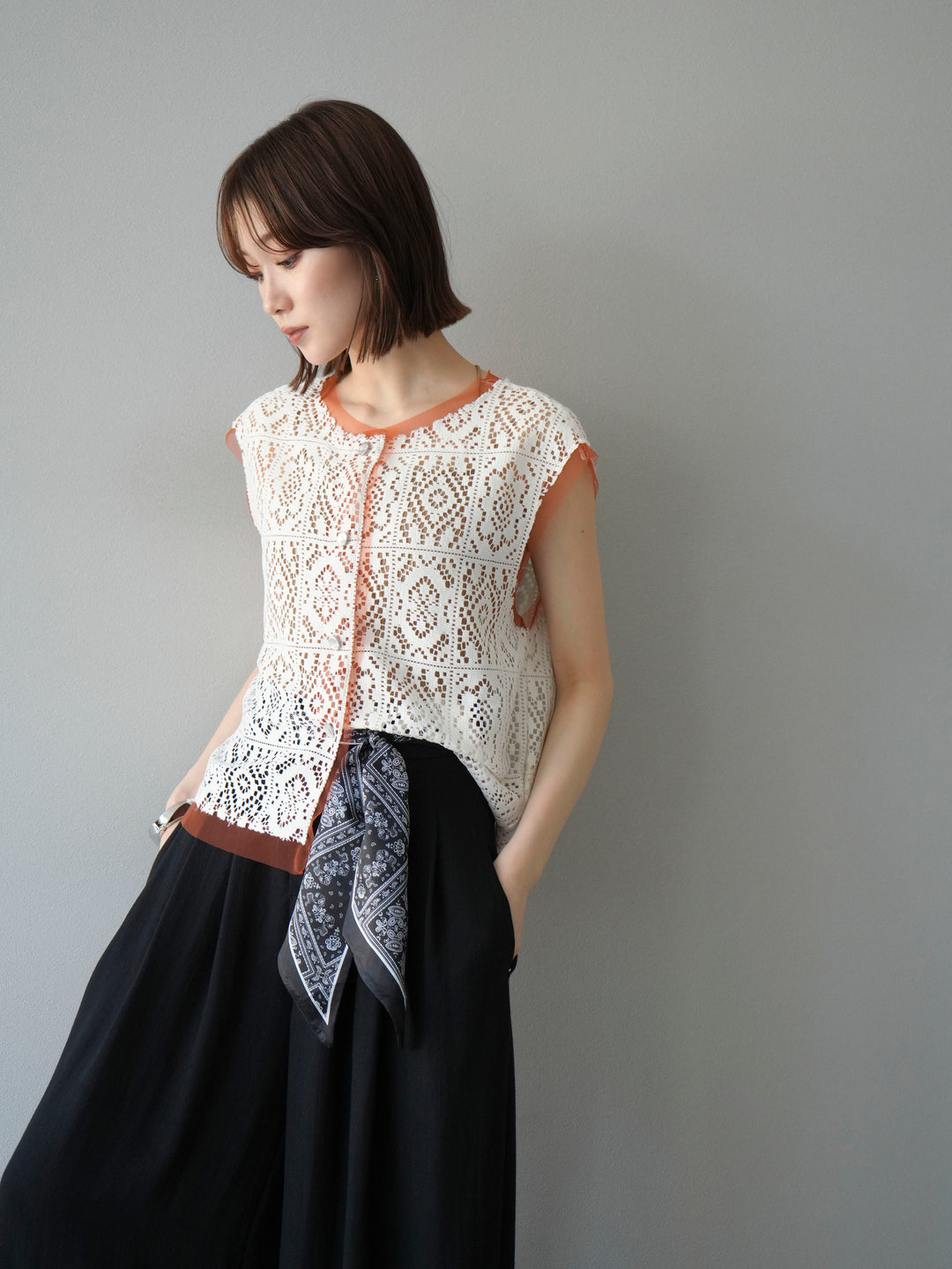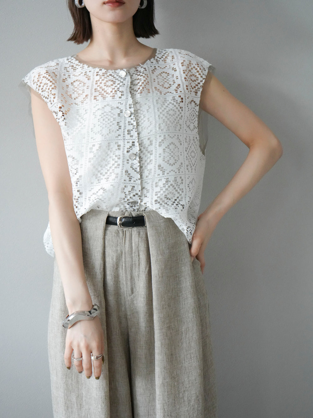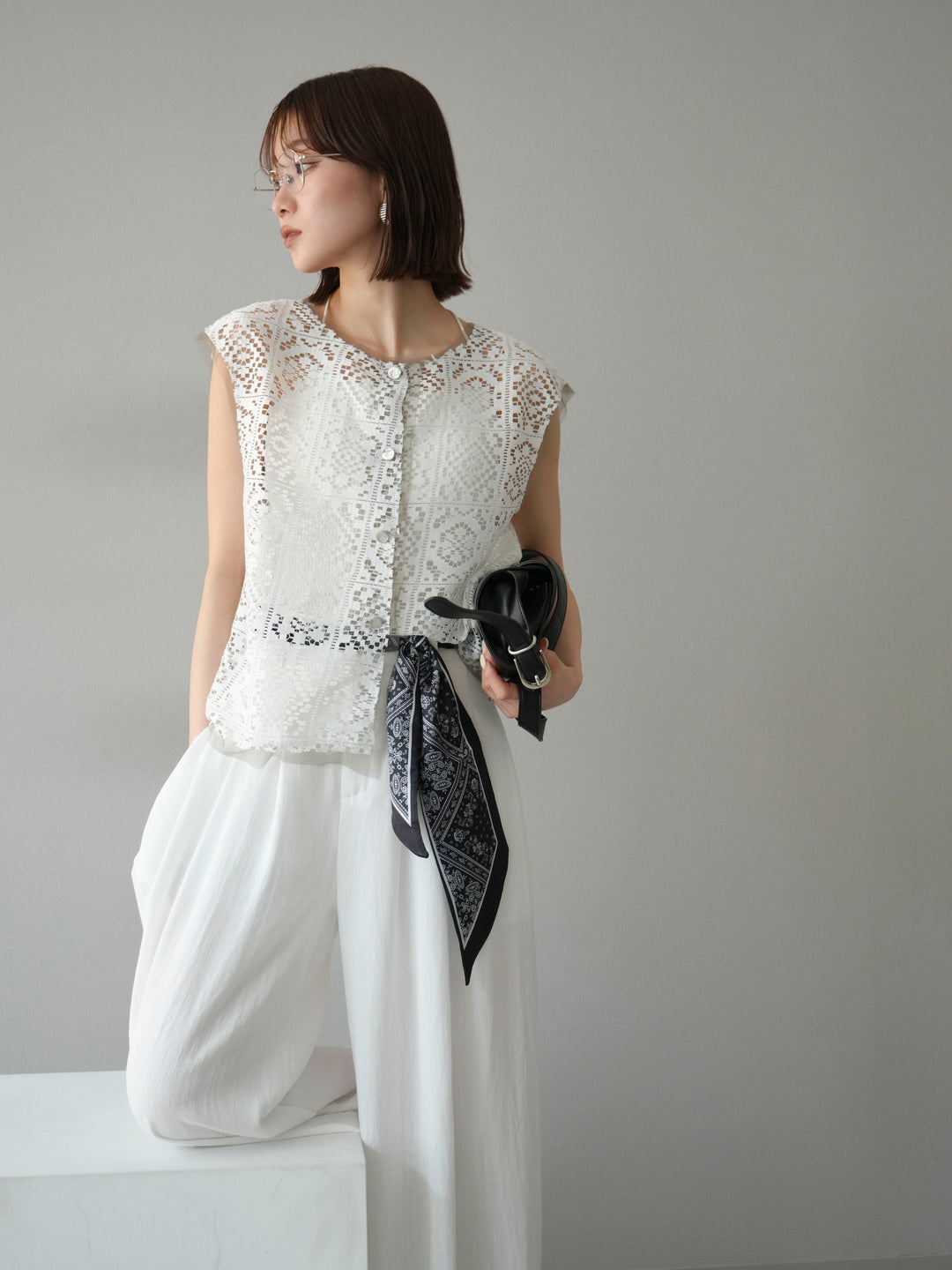 [予約]エンブロイダリーレースタックショルダーブラウス/ホワイト
