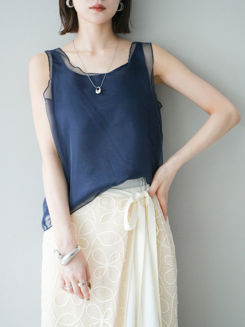 [予約]オーガンジーレイヤードタンクトップ/ネイビー
