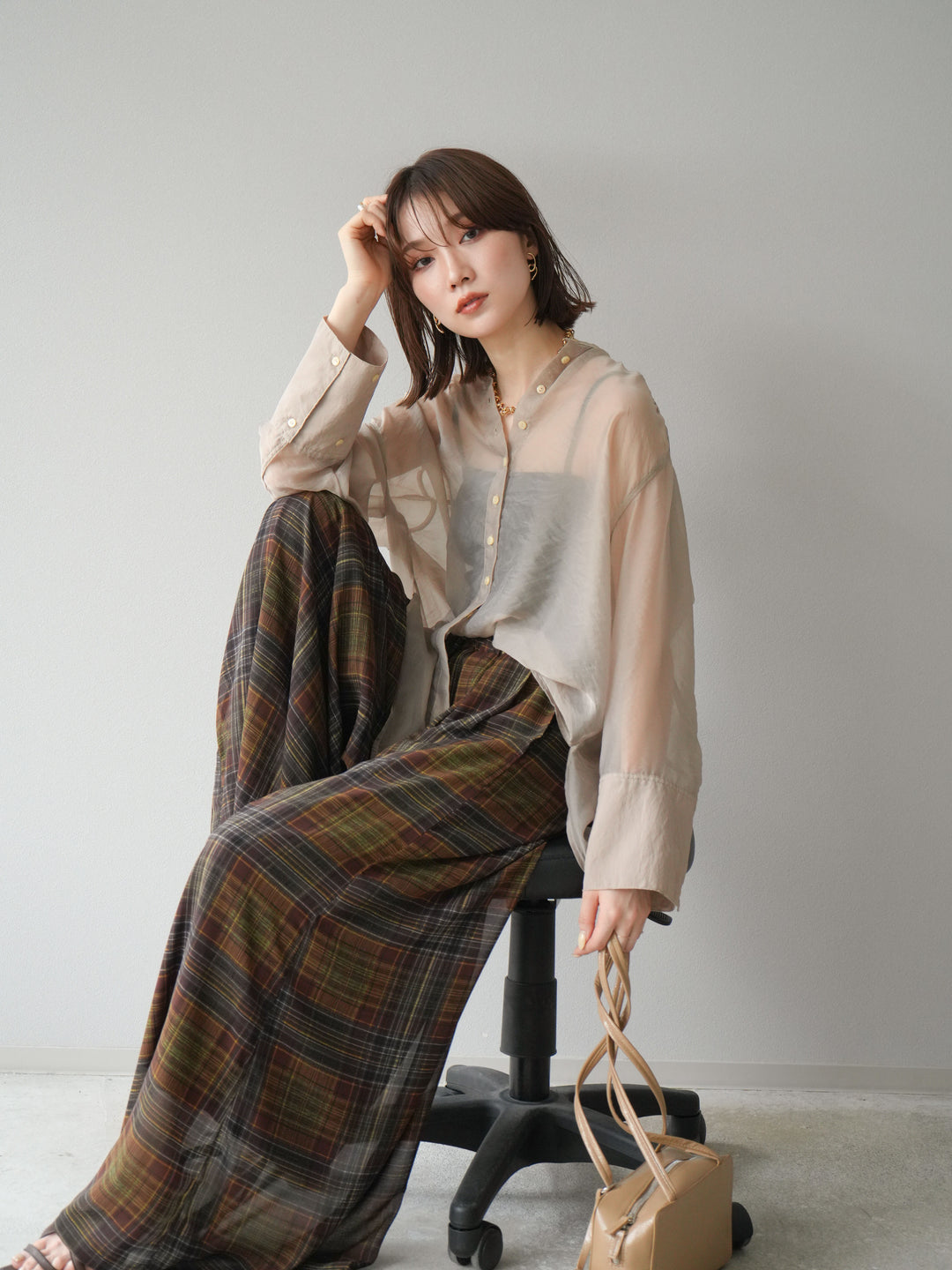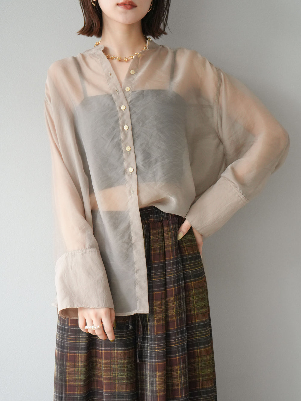 [予約]シャイニーシアーバンドカラーシャツ/ベージュ