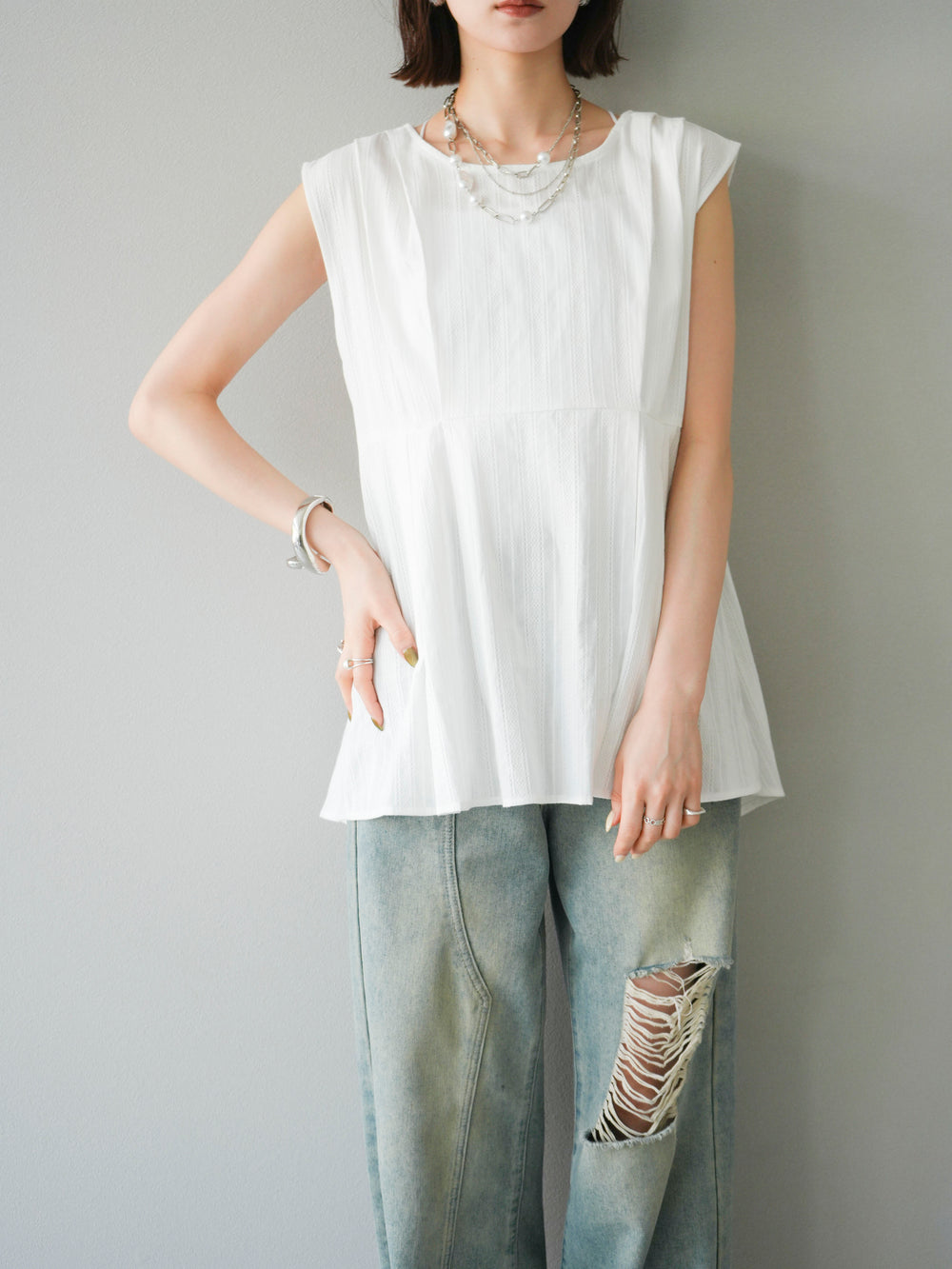 [予約]フリンジジャガード×チュールレイヤードシャツ/アイボリー