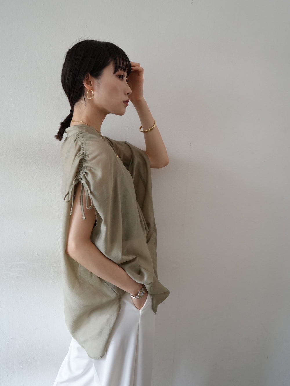 [予約]シャーリングシフォンハーフスリーブブラウス/グレー