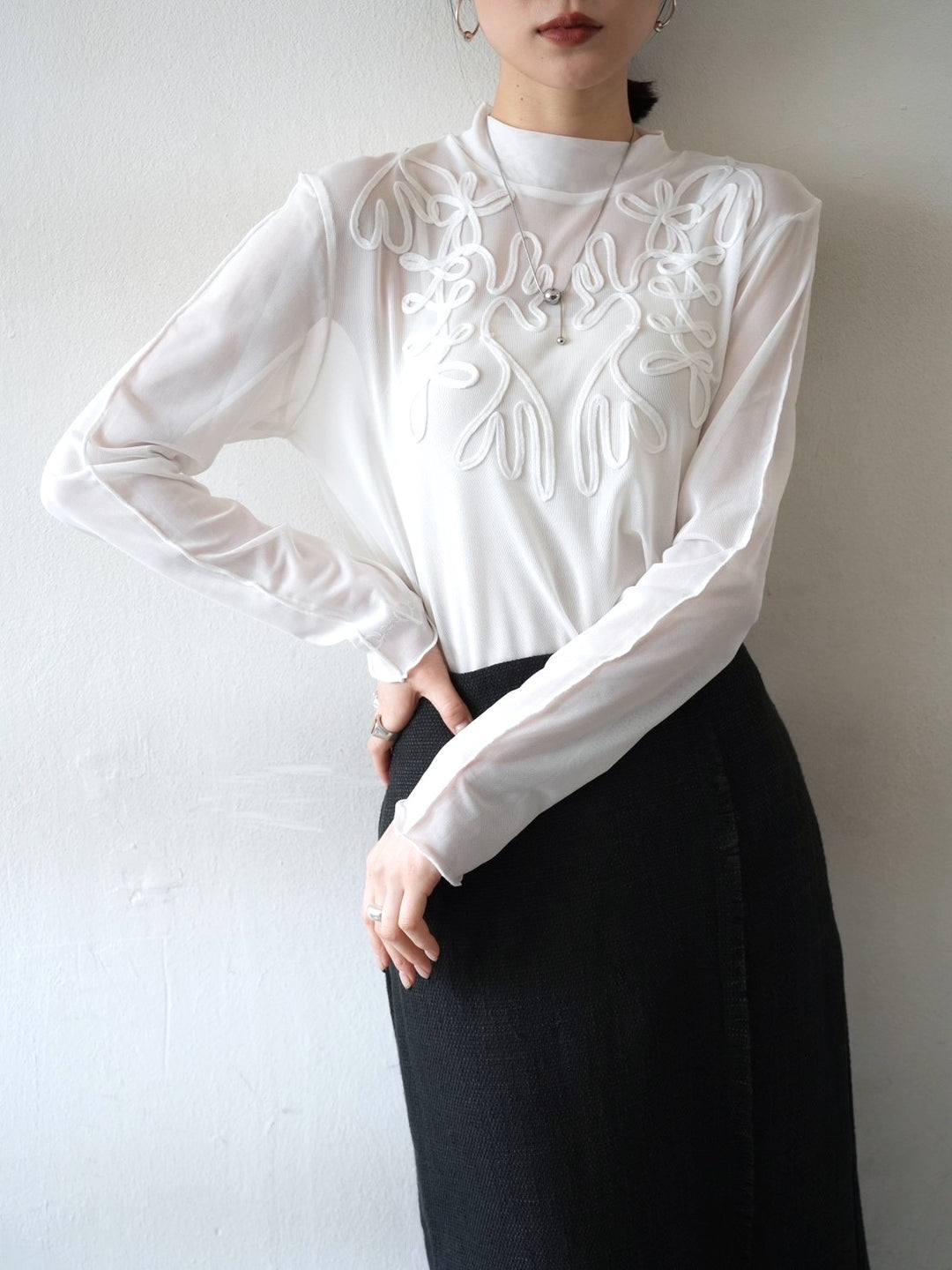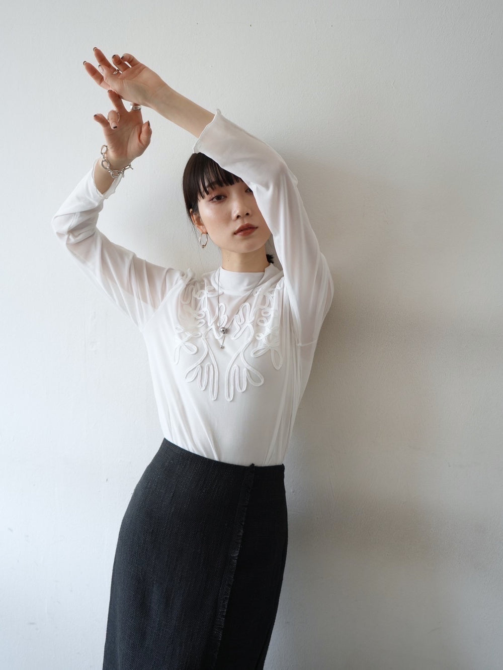 [予約]シャーリングシフォンブラウス/オフホワイト