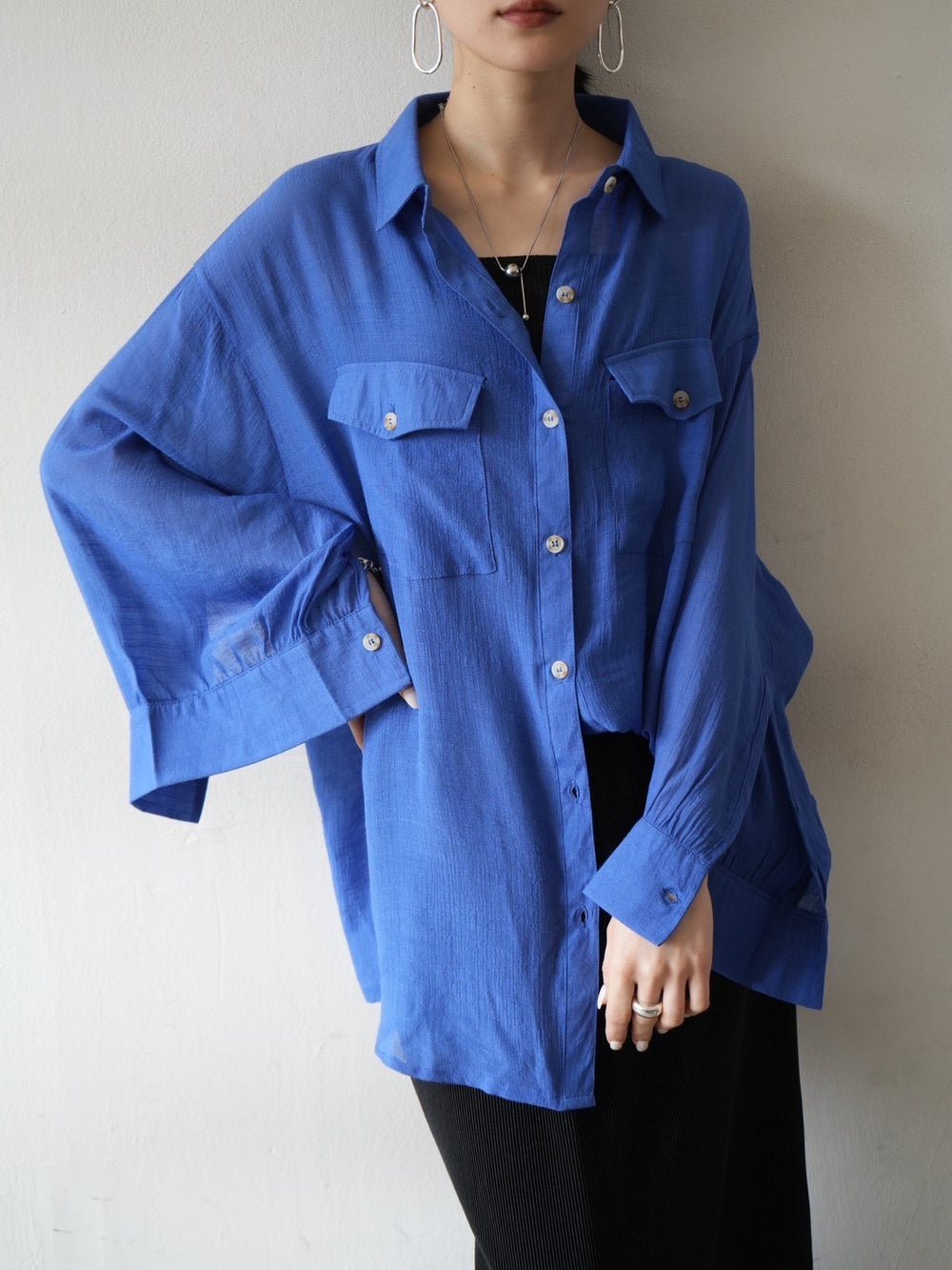 [予約]シャーリングシフォンハーフスリーブブラウス/スカイブルー