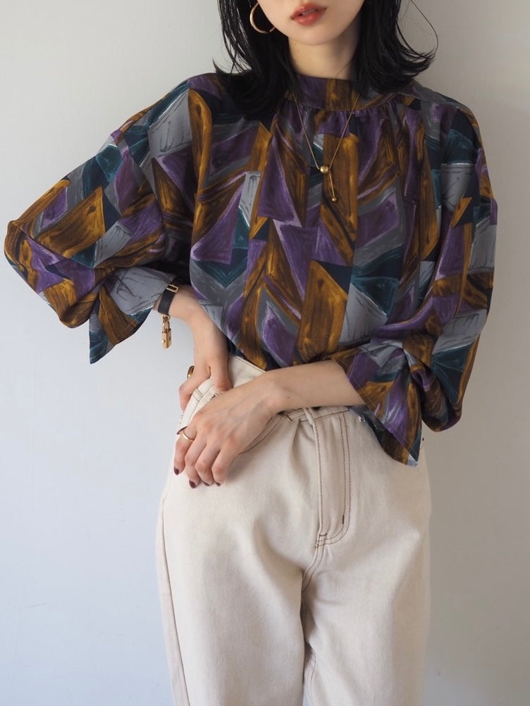 [予約]ペンタッチフラワープリントブラウス/ベージュ