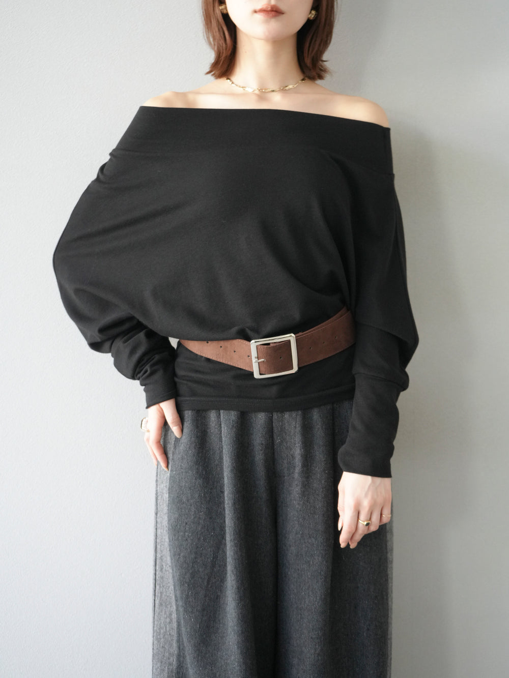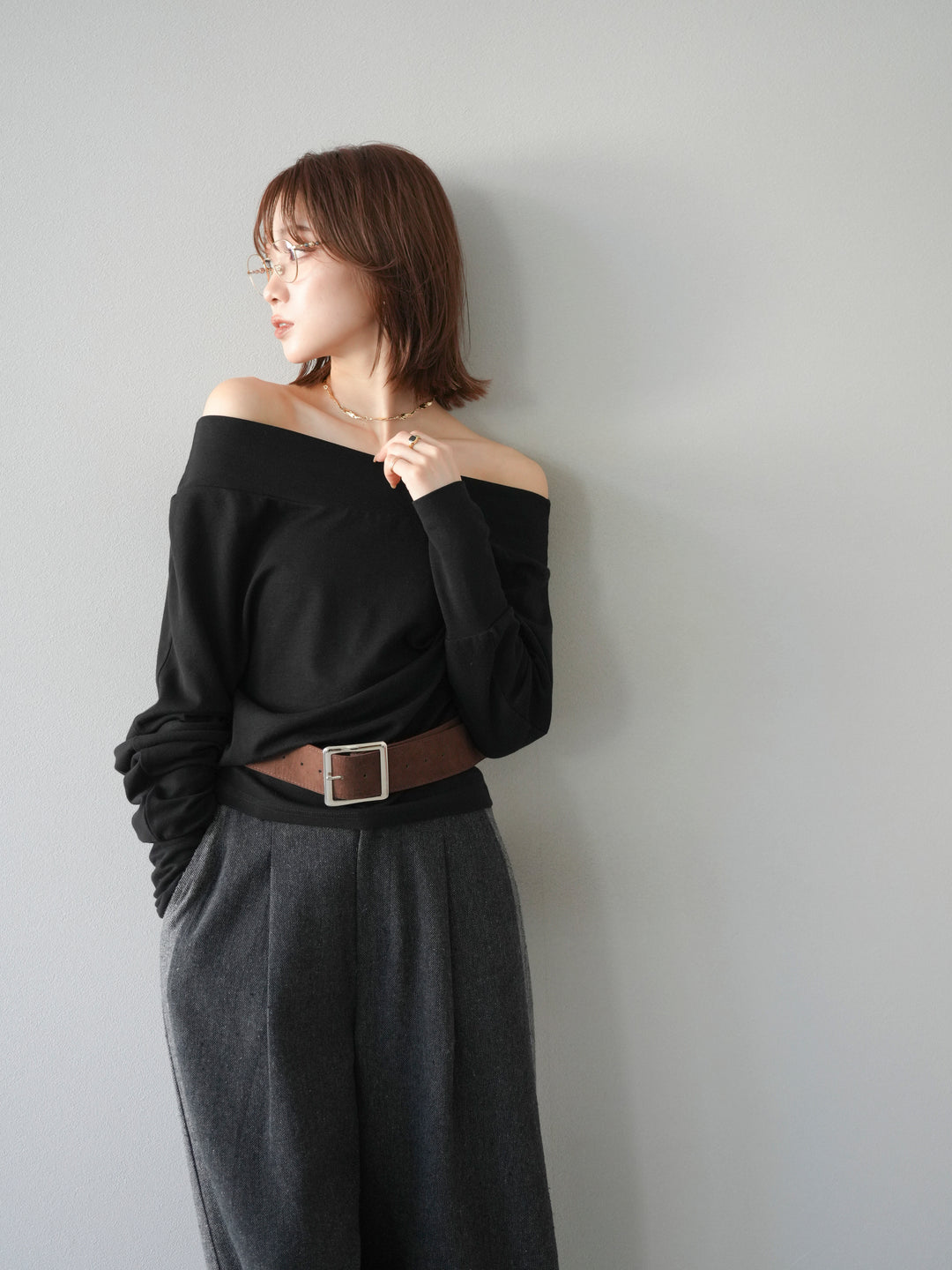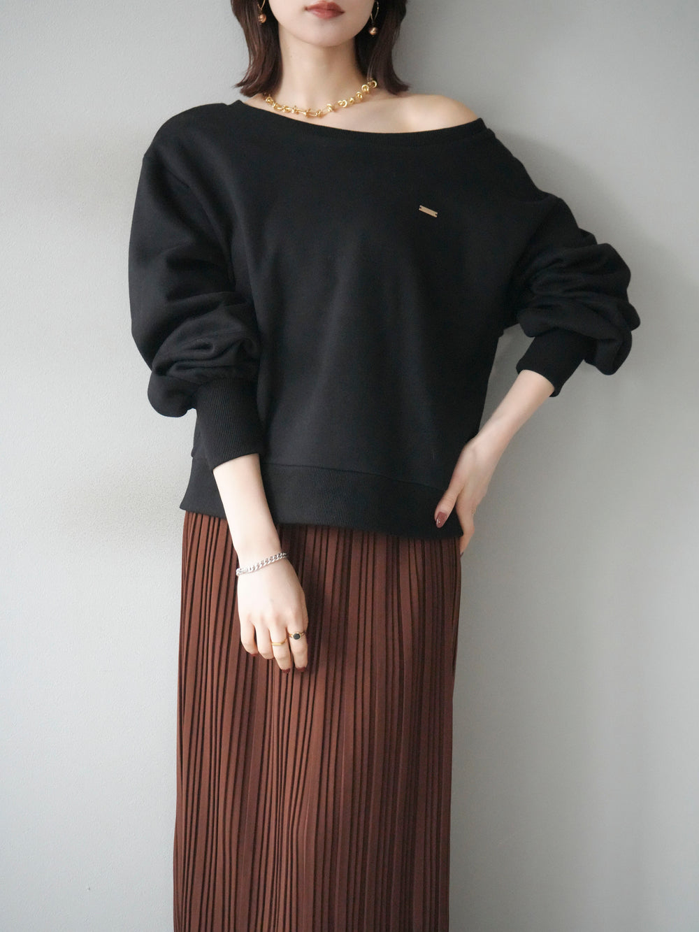 [予約]プレート付裏起毛ワンショルプルオーバー/black