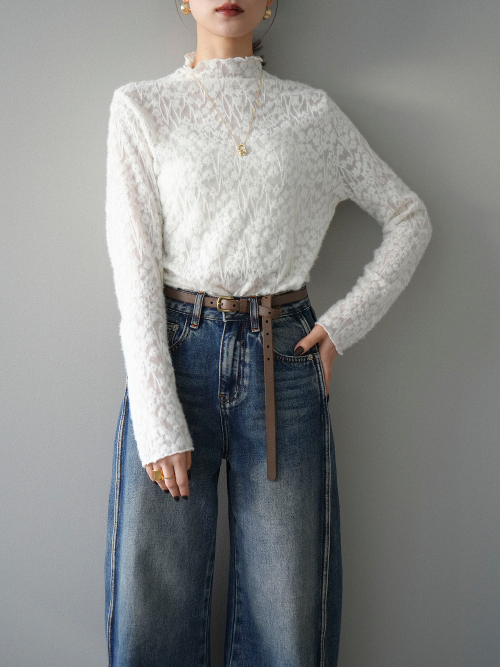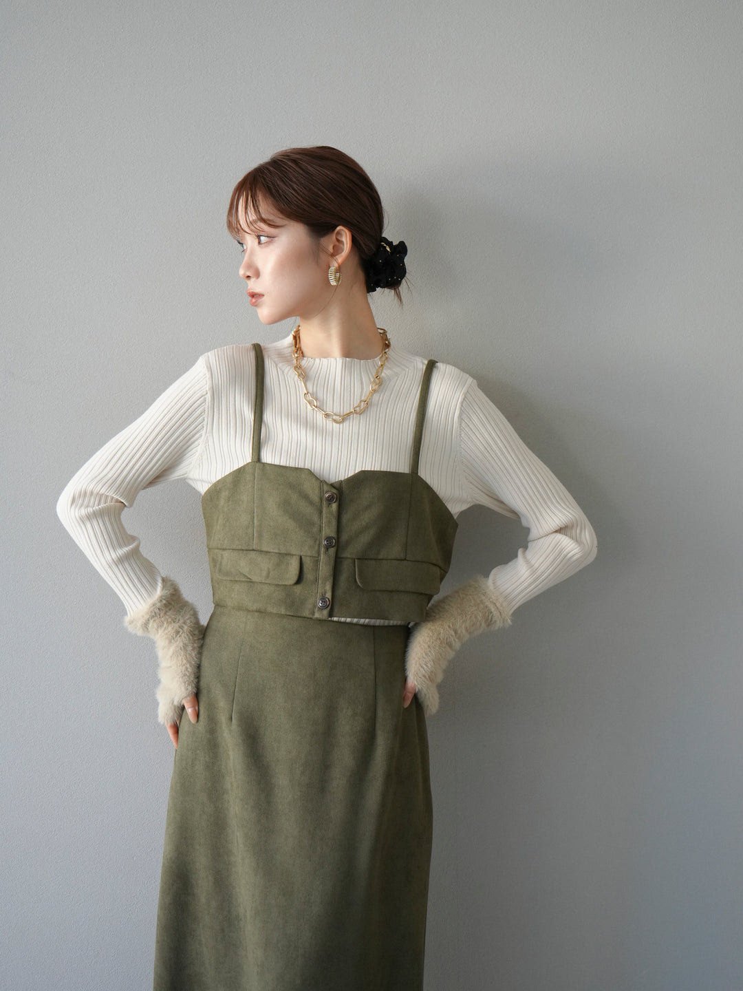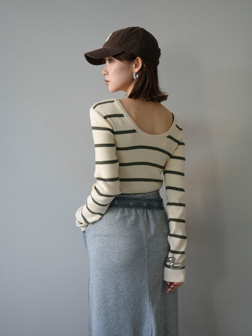 [予約]バックオープンボーダーテレコリブトップス/アイボリー