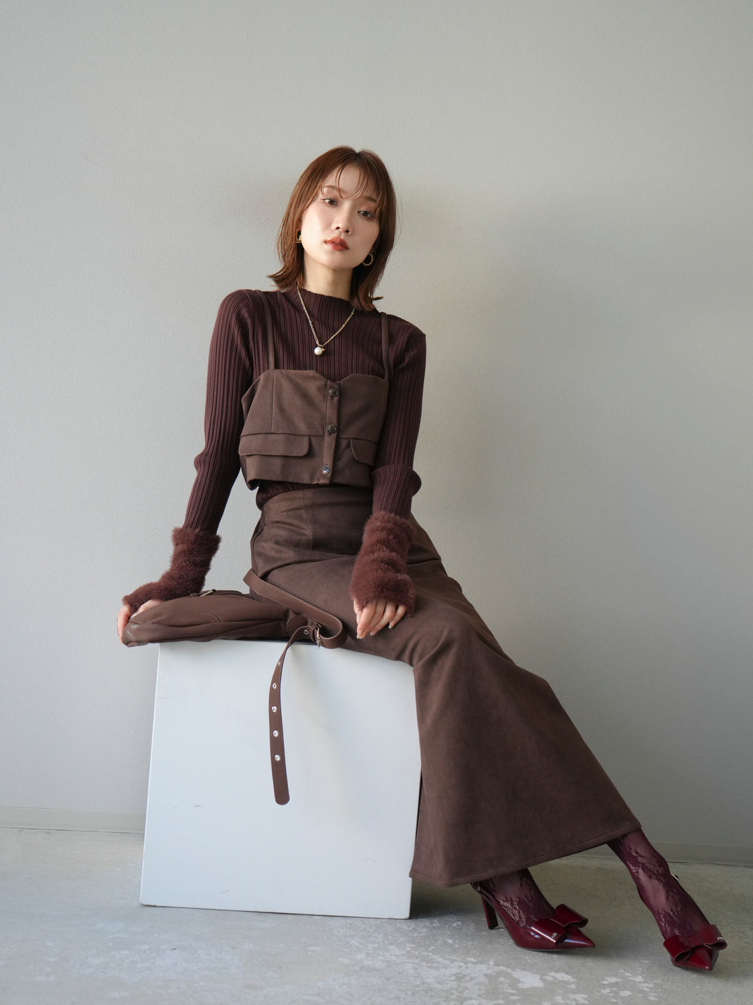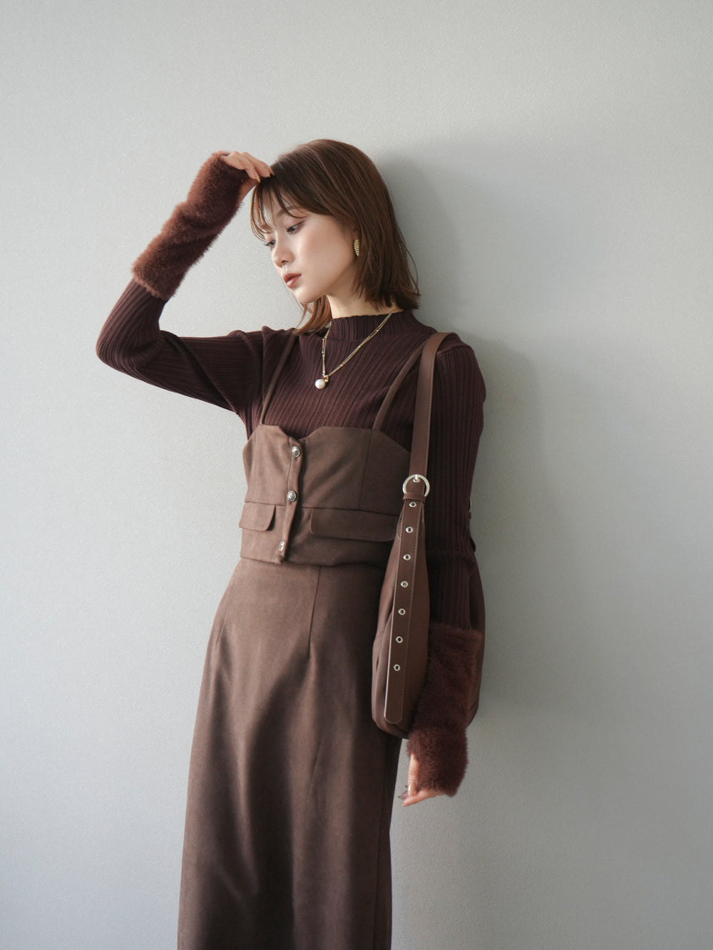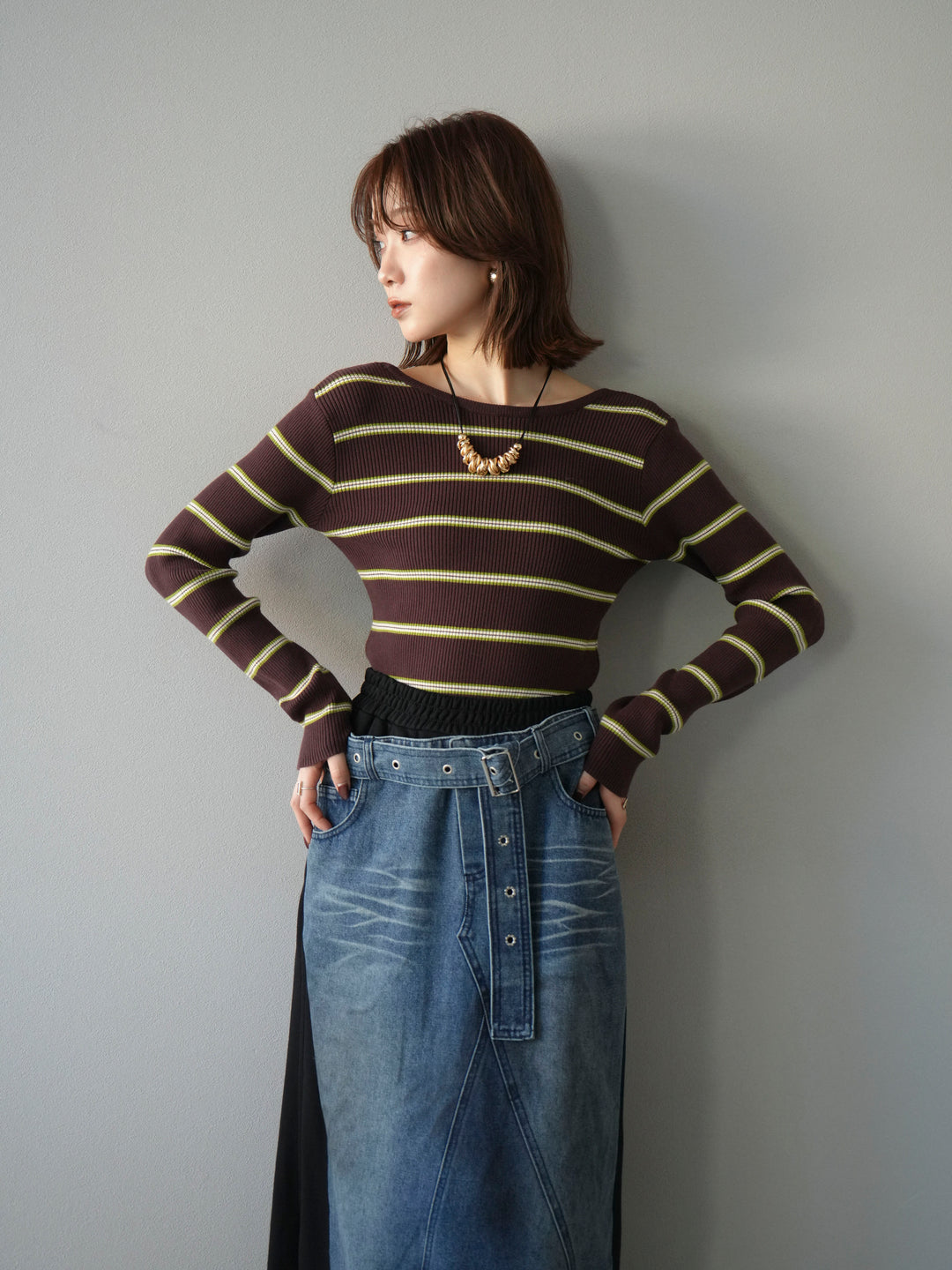 [予約]バックオープンボーダーテレコリブトップス/ブラウン