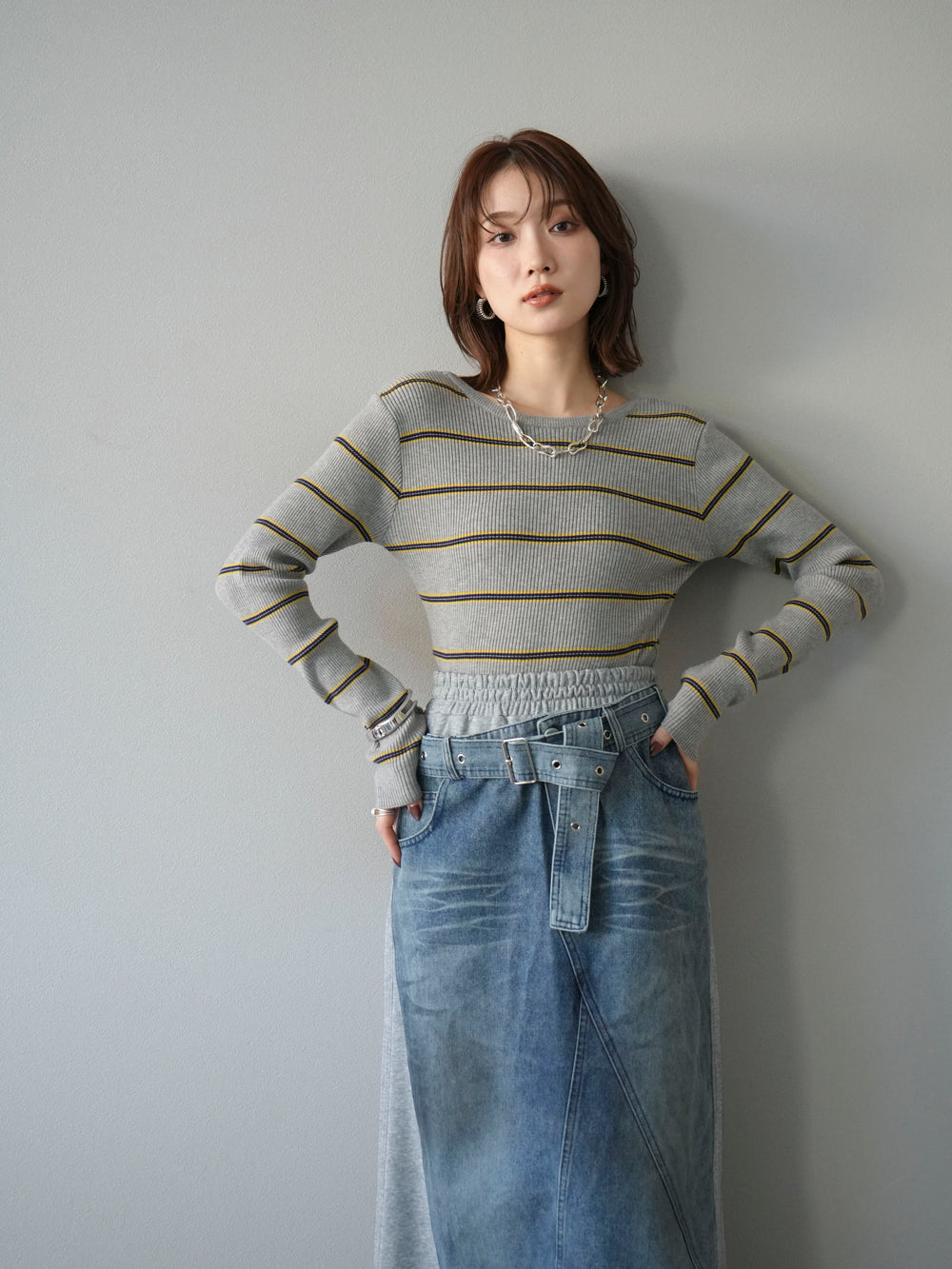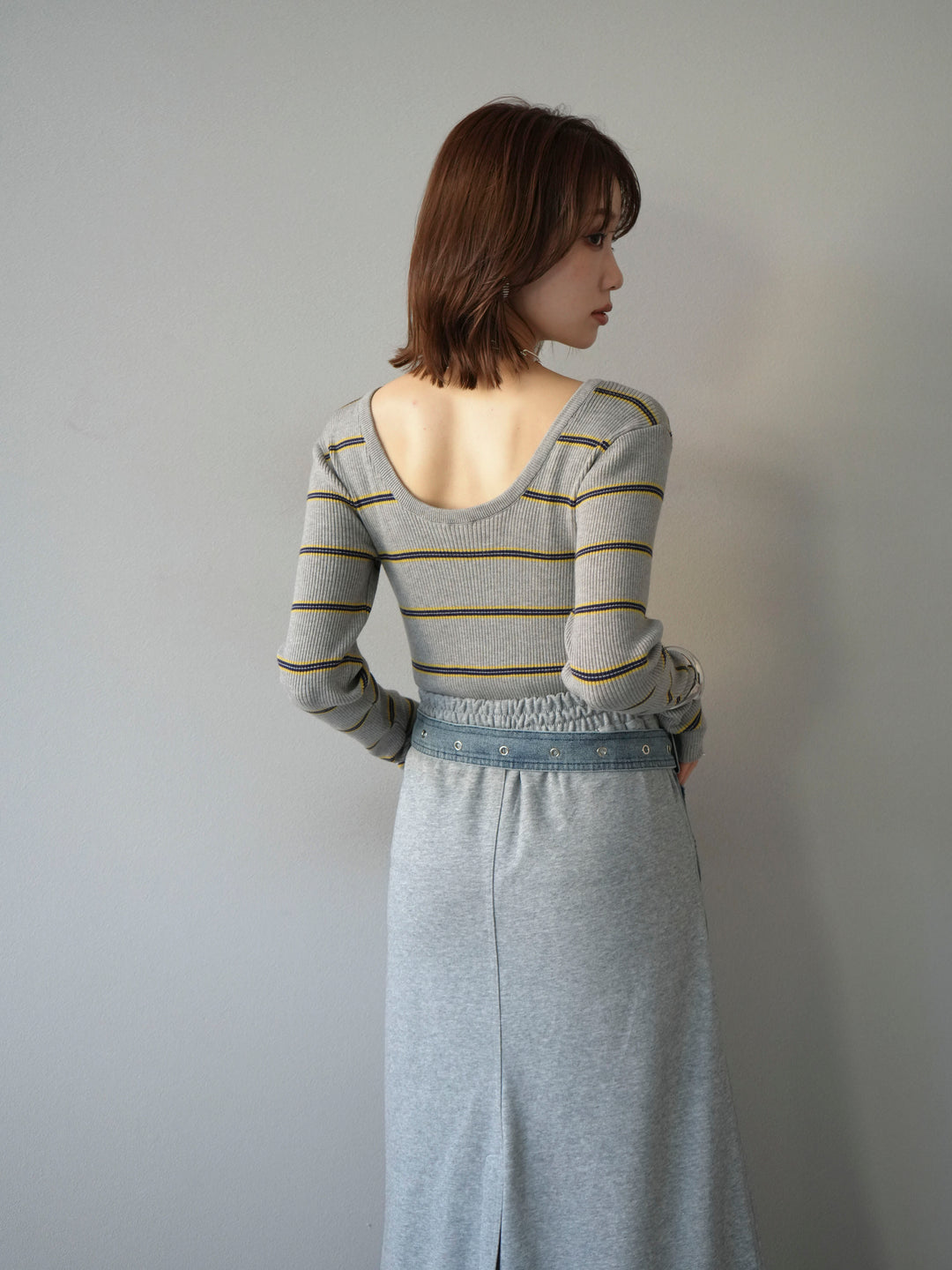 [予約]バックオープンボーダーテレコリブトップス/グレー