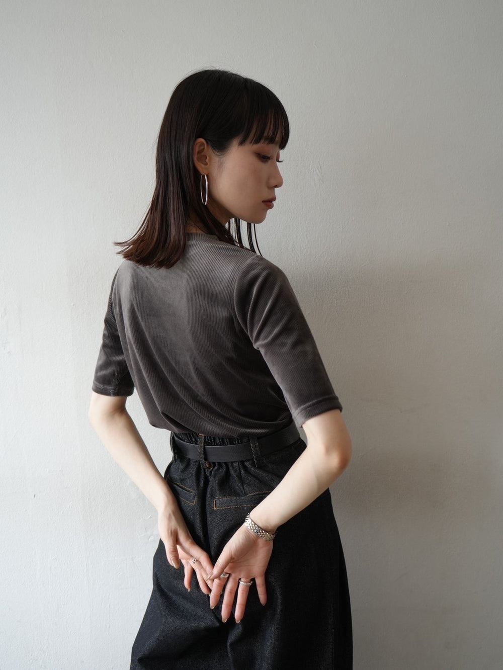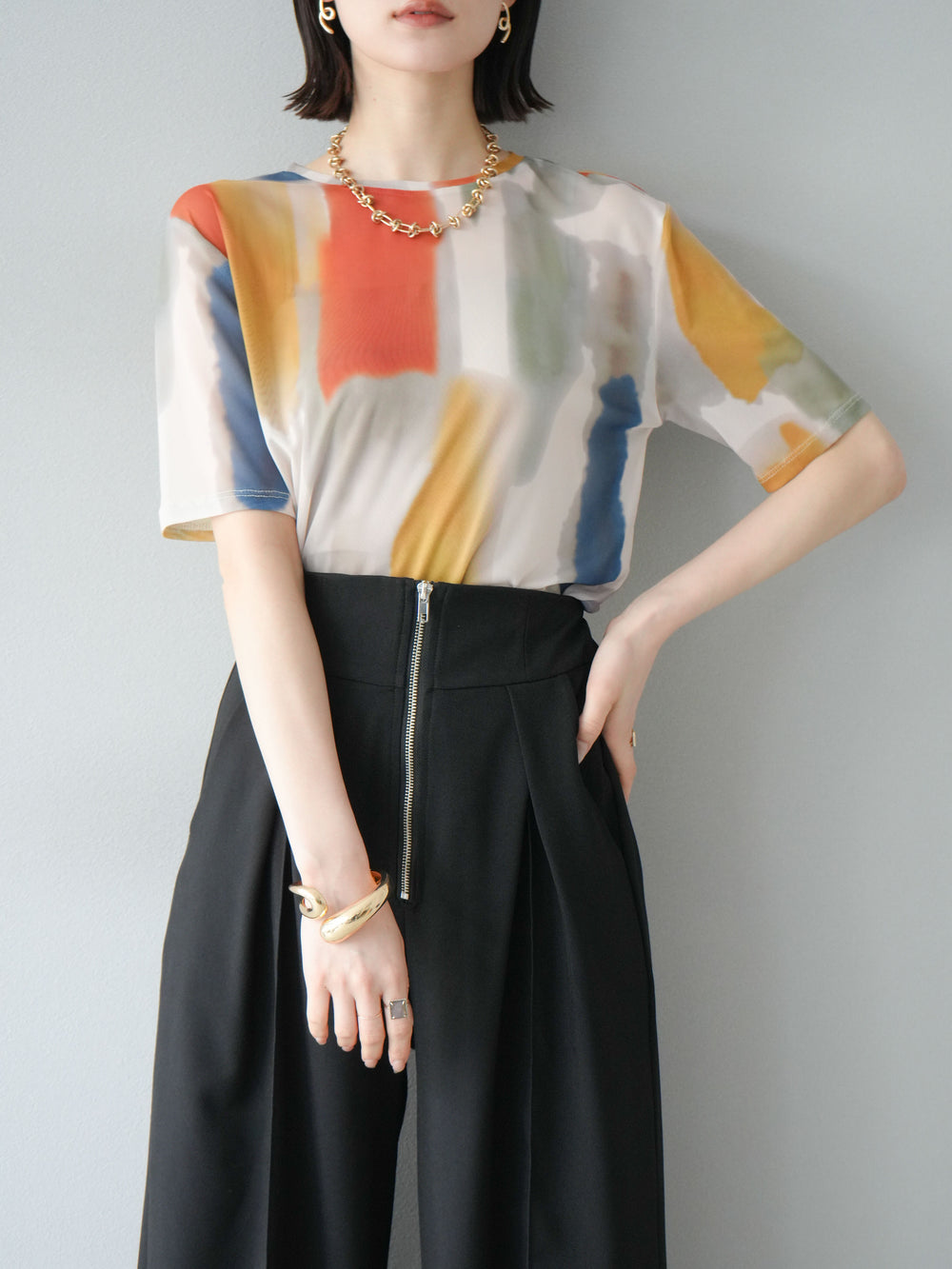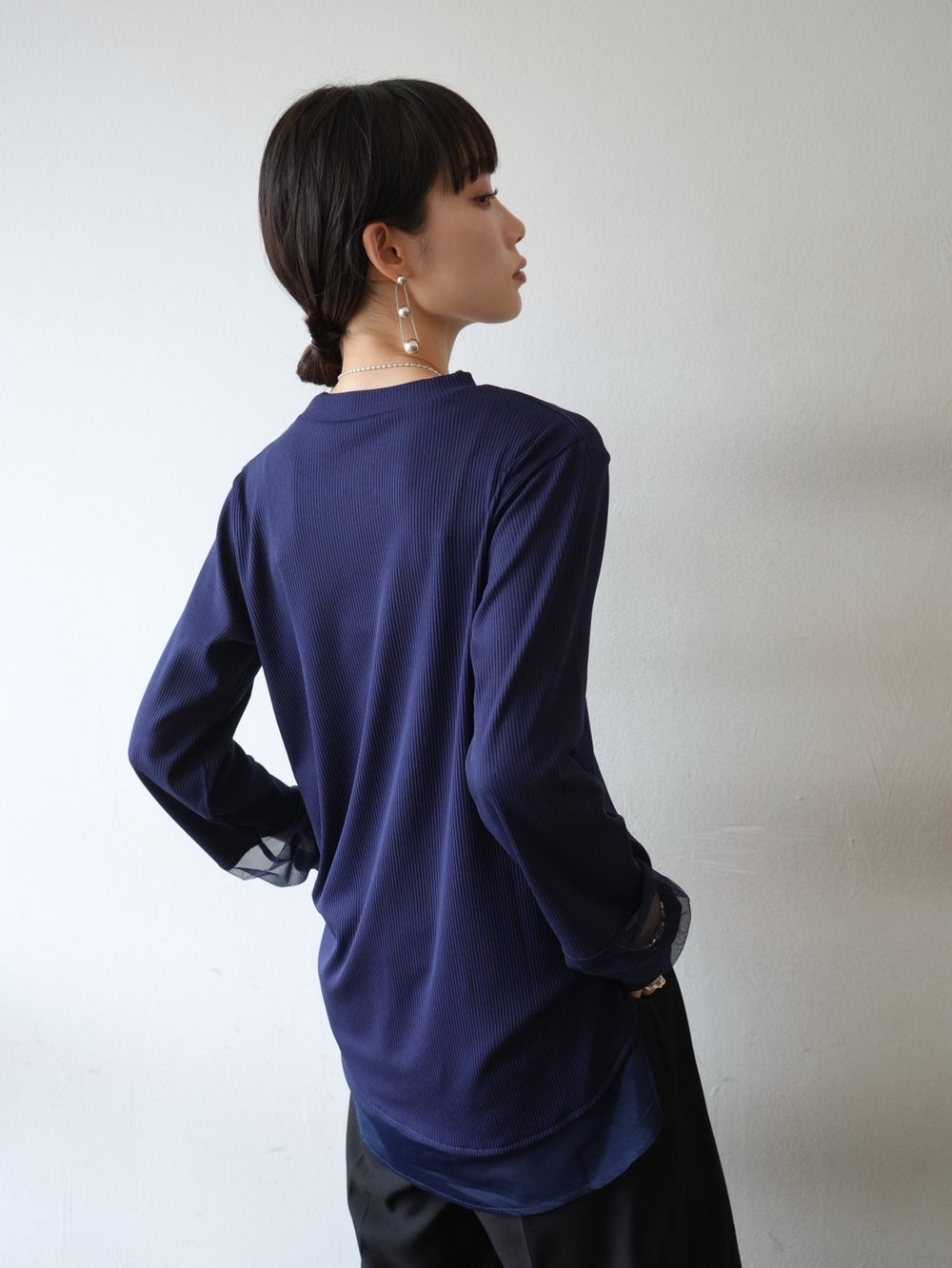 [予約]袖プリーツ配色レイヤードトップス/charcoal