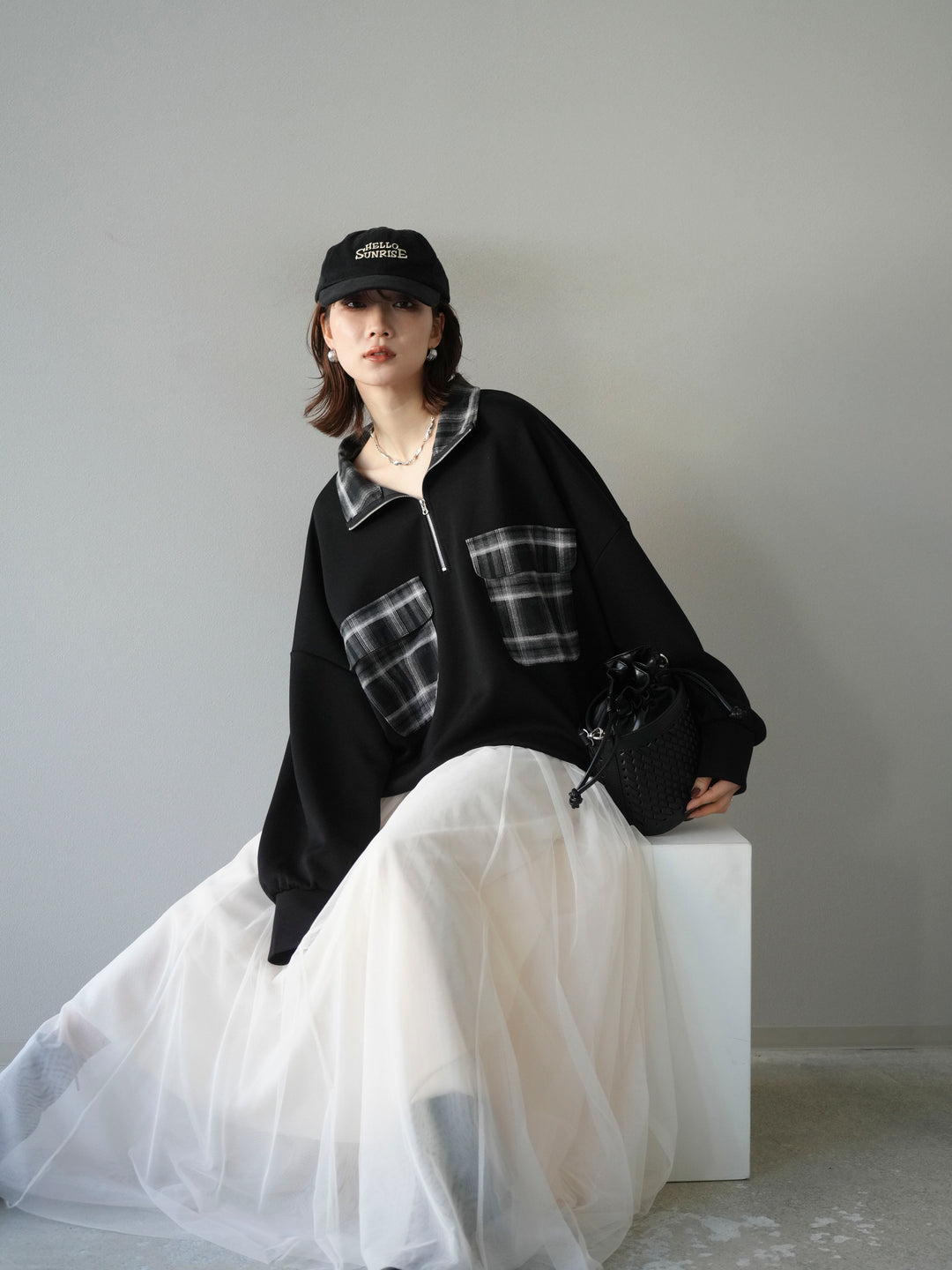 [予約]チェックポイントドロストポンチプルオーバー/ブラック