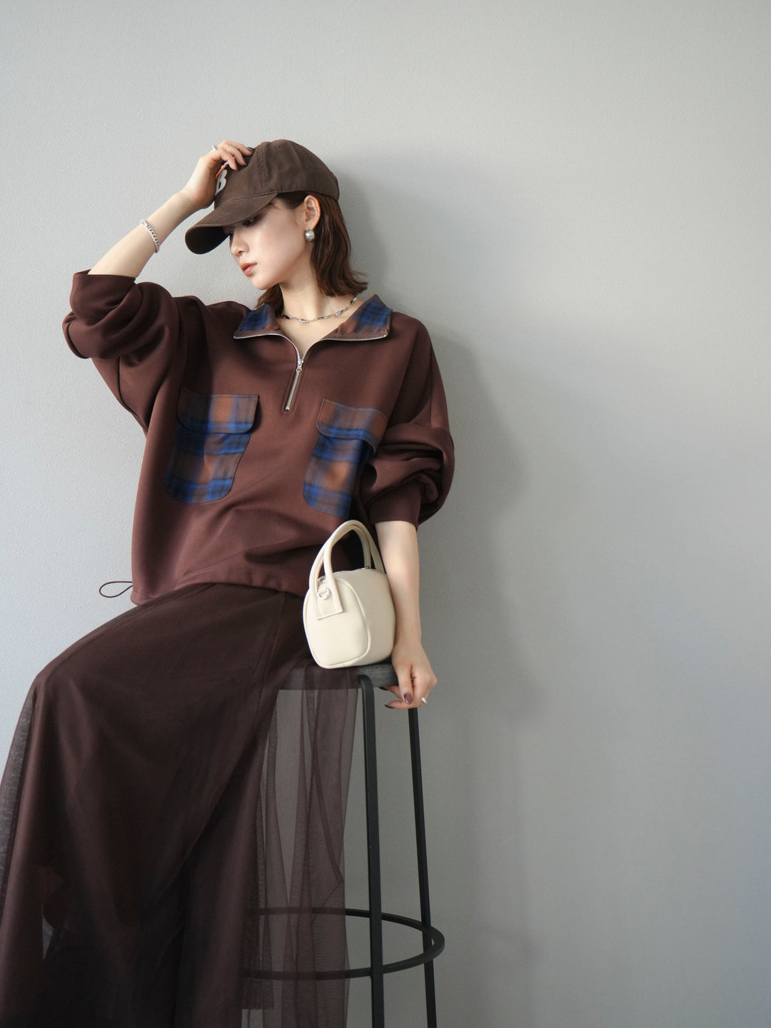 [予約]チェックポイントドロストポンチプルオーバー/ブラウン