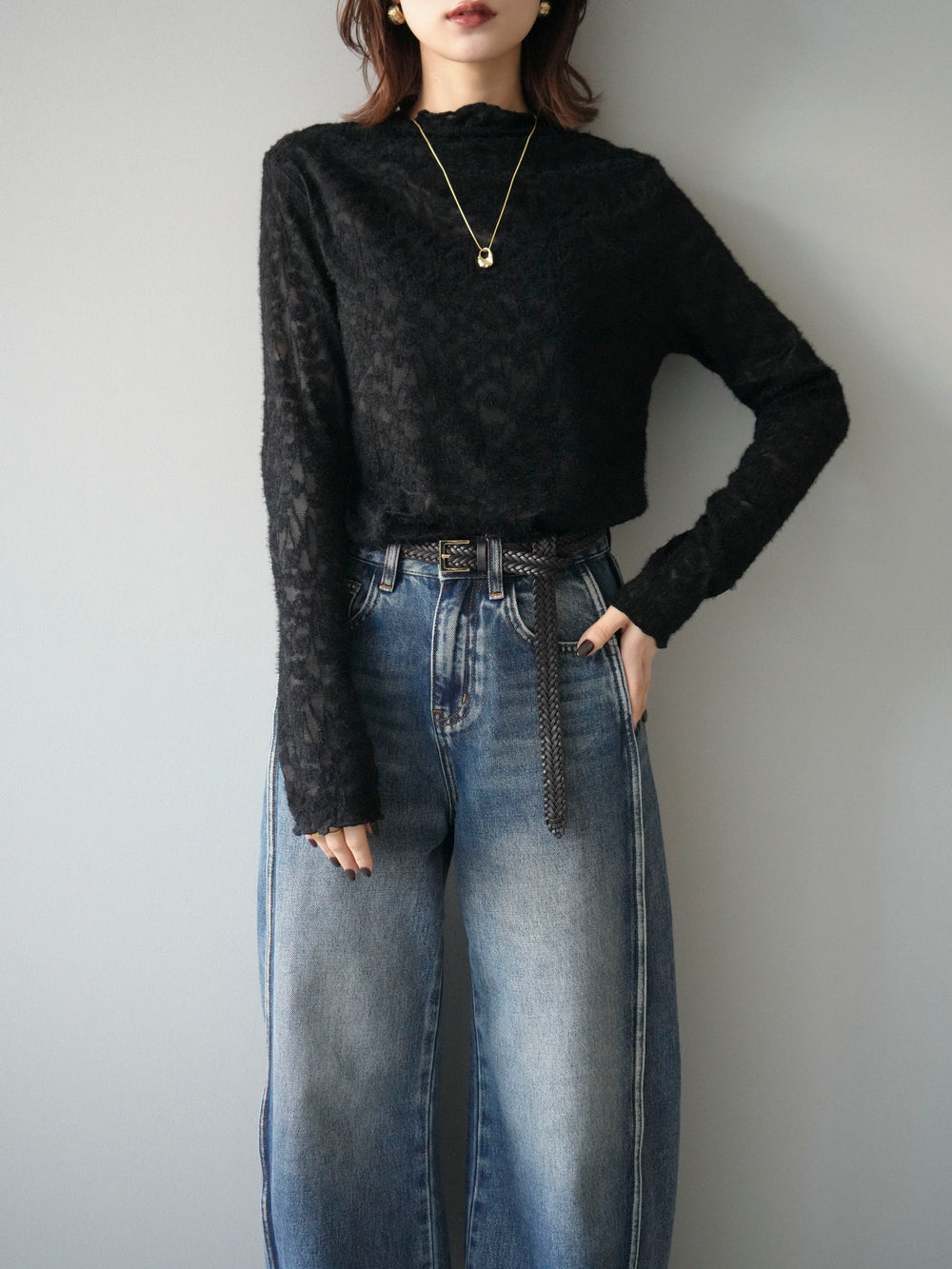 [予約]アシンメトリーアニマル柄シアートップス/ブラウン