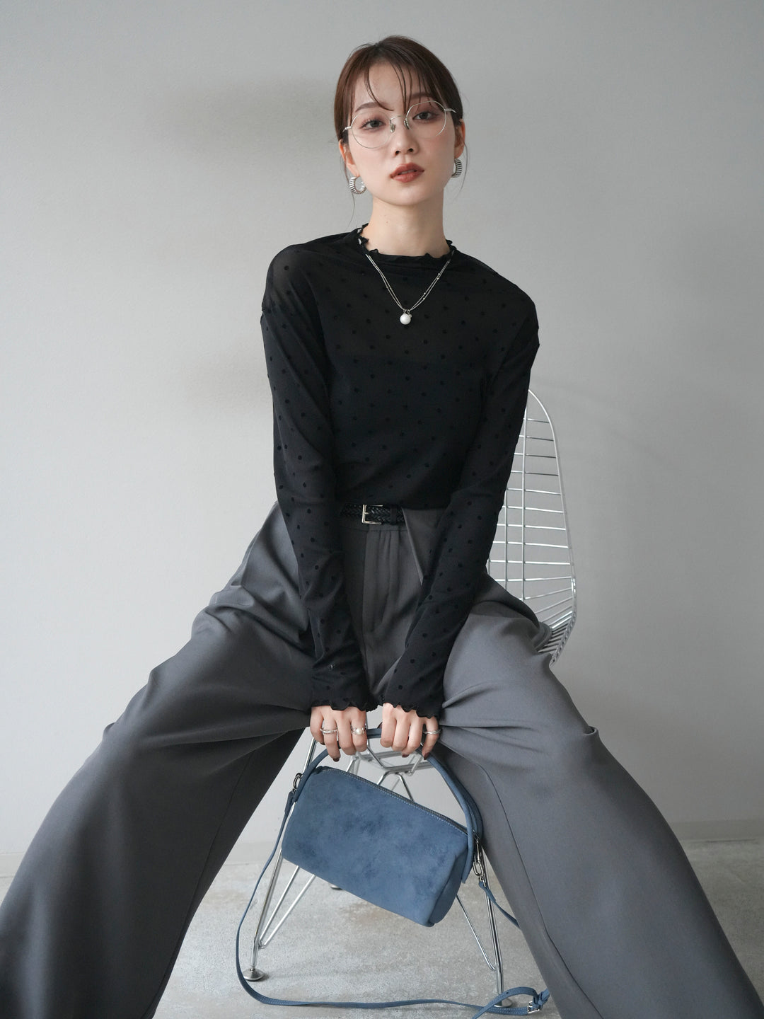 [予約]アシンメトリーアニマル柄シアートップス/グレー
