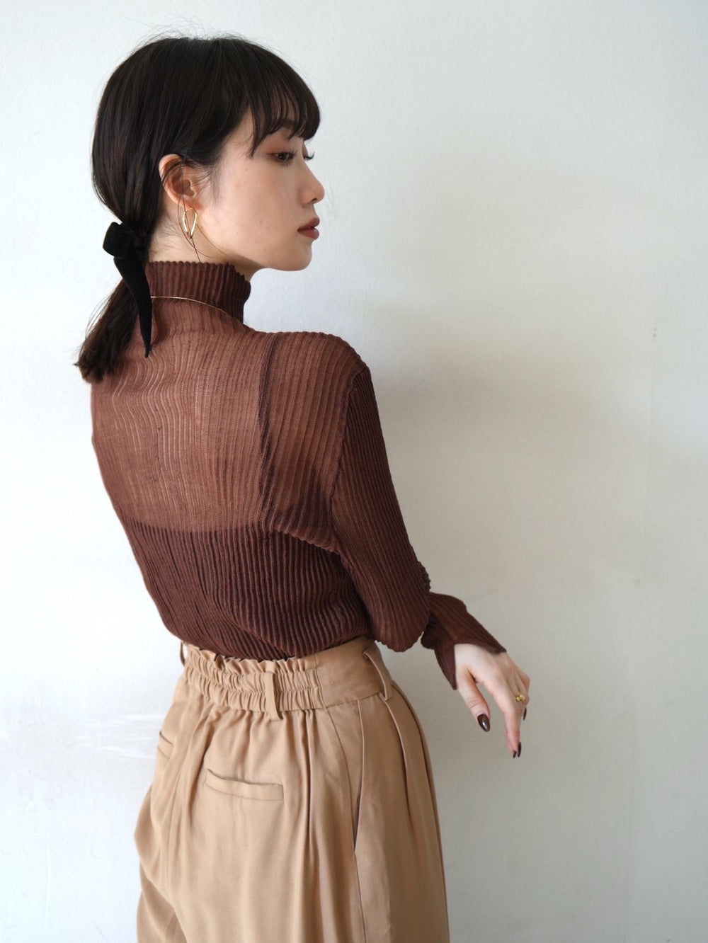 [予約]ラメシャギートップス/brown