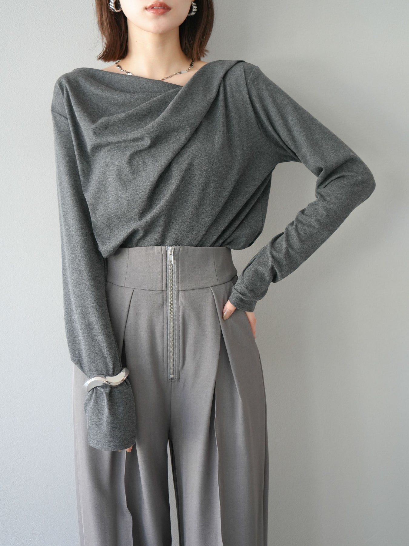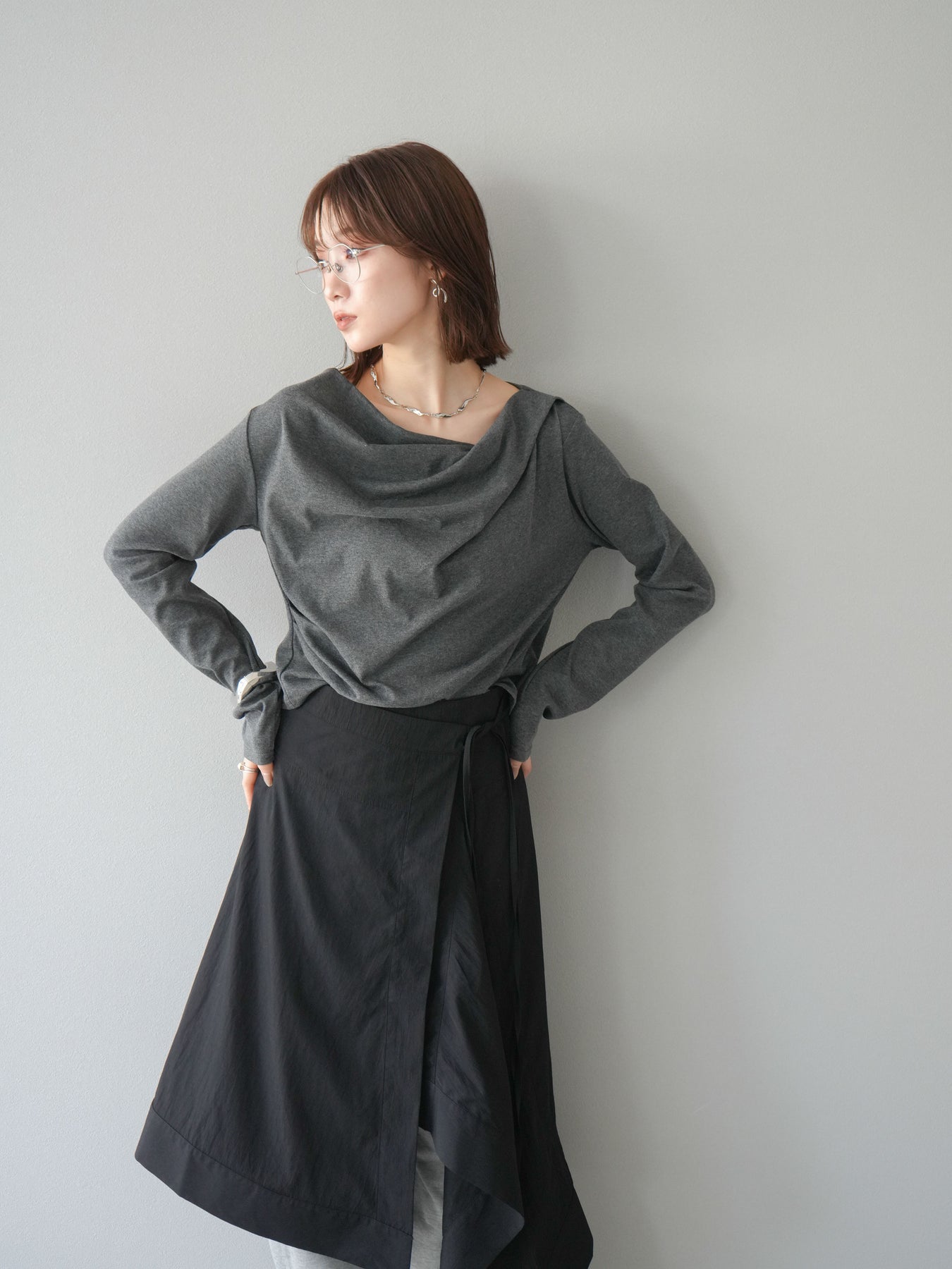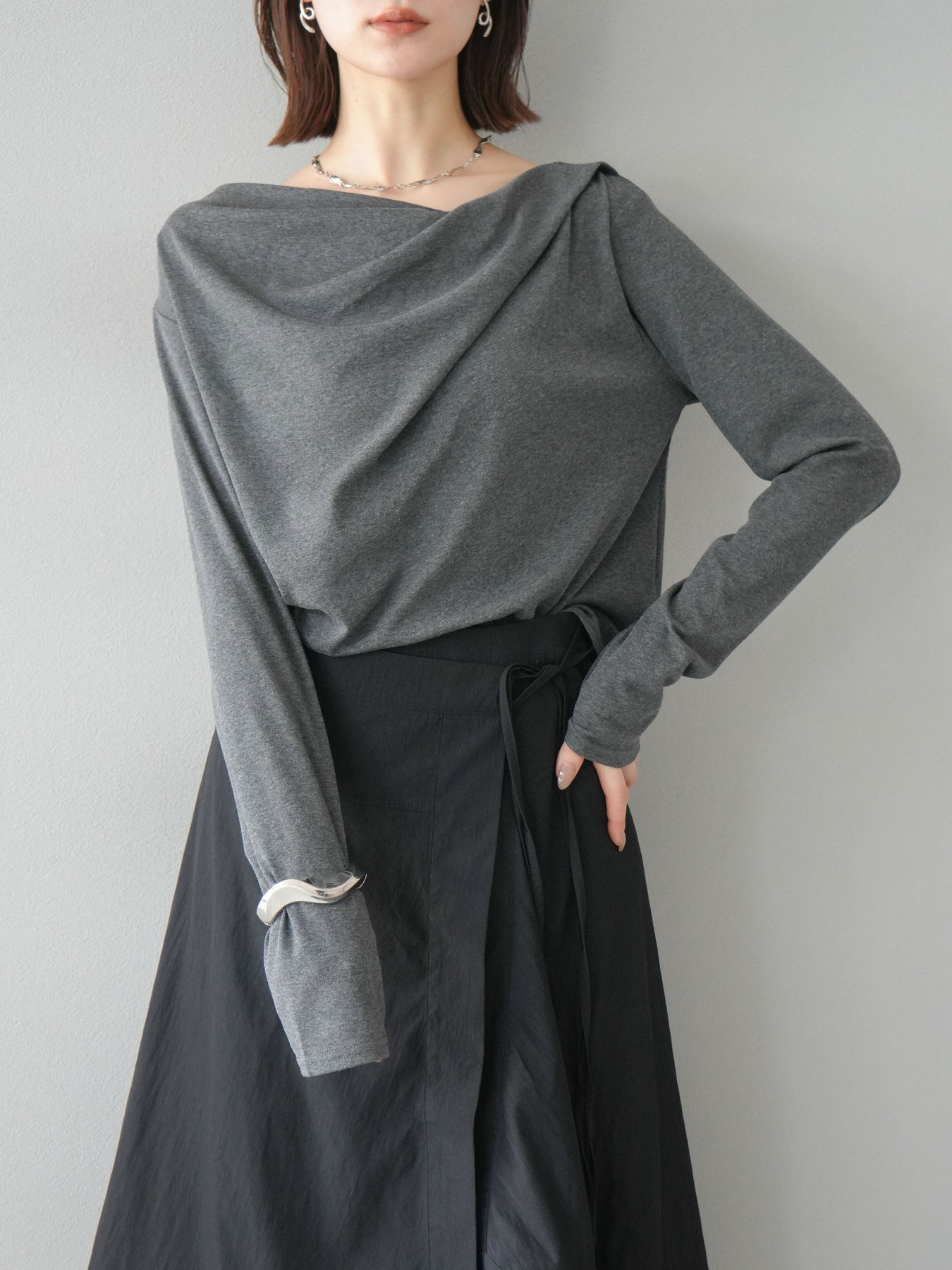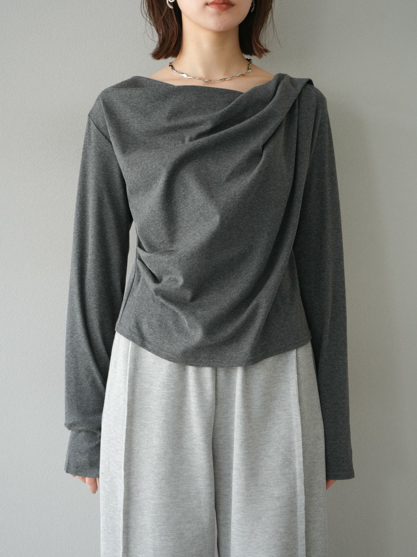 [予約]ドレープデザインカットソー/チャコール