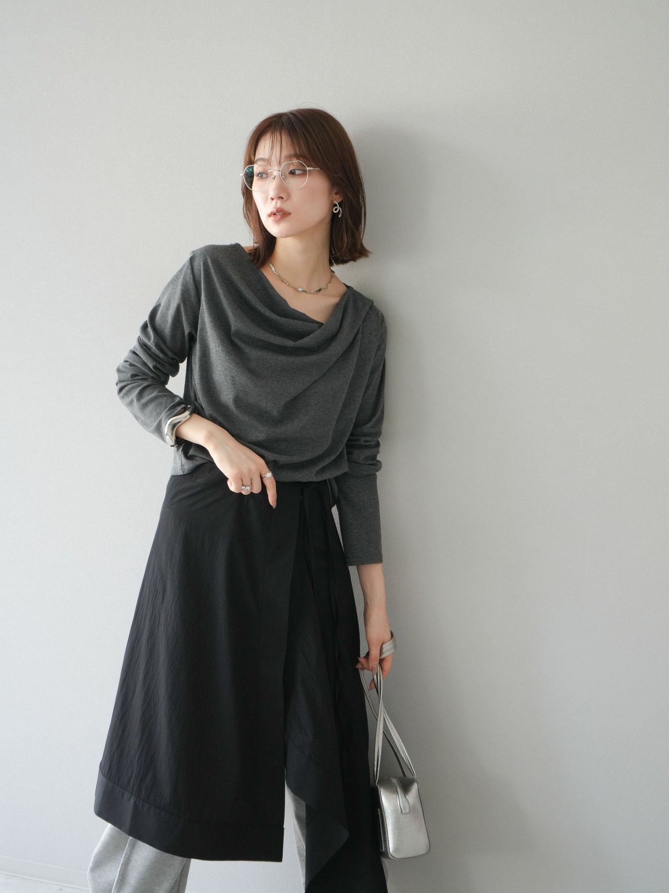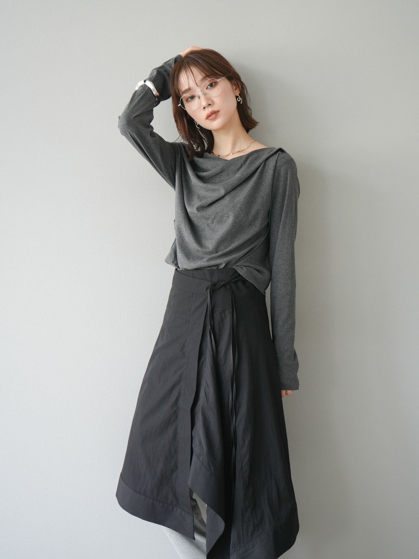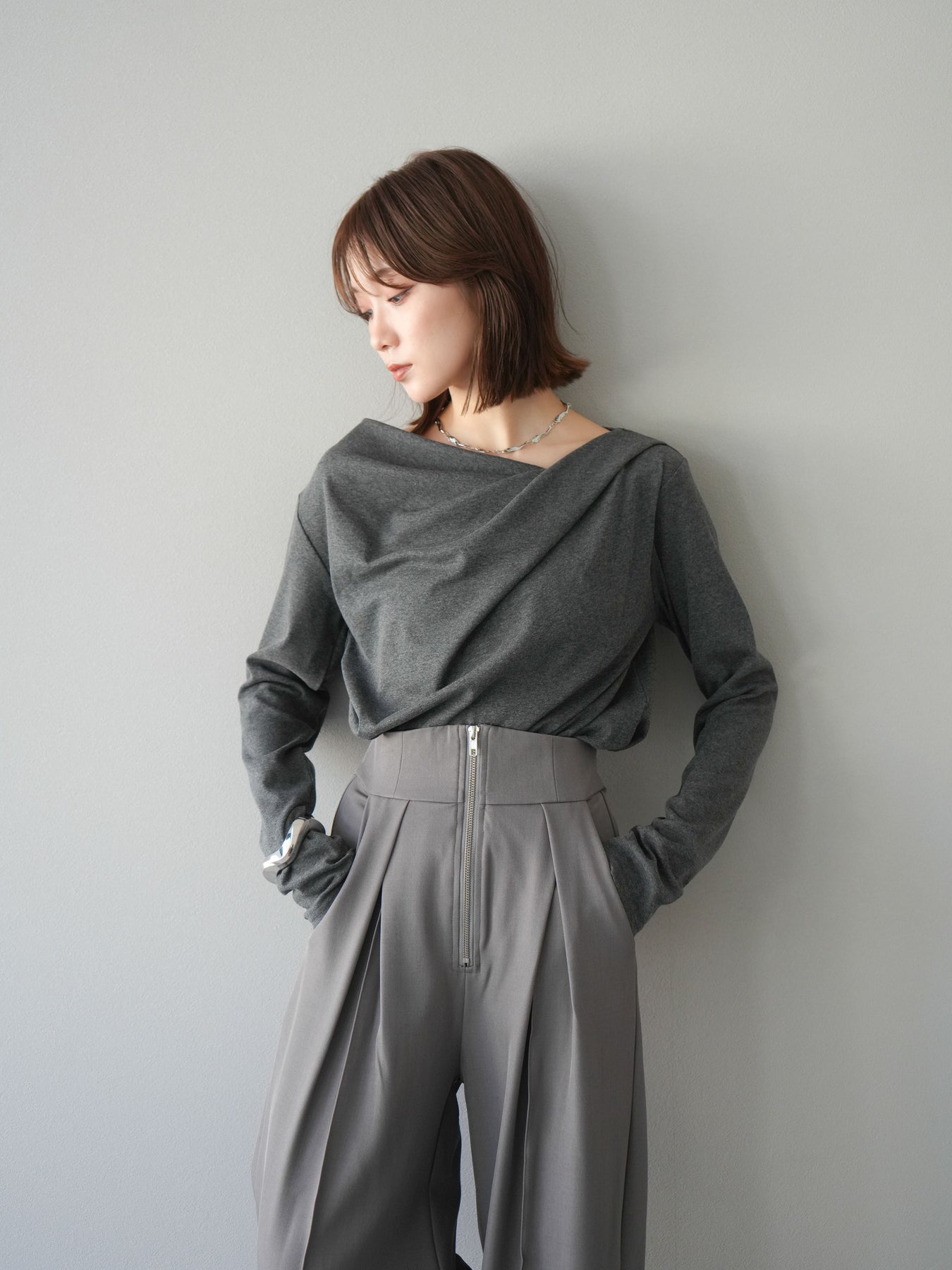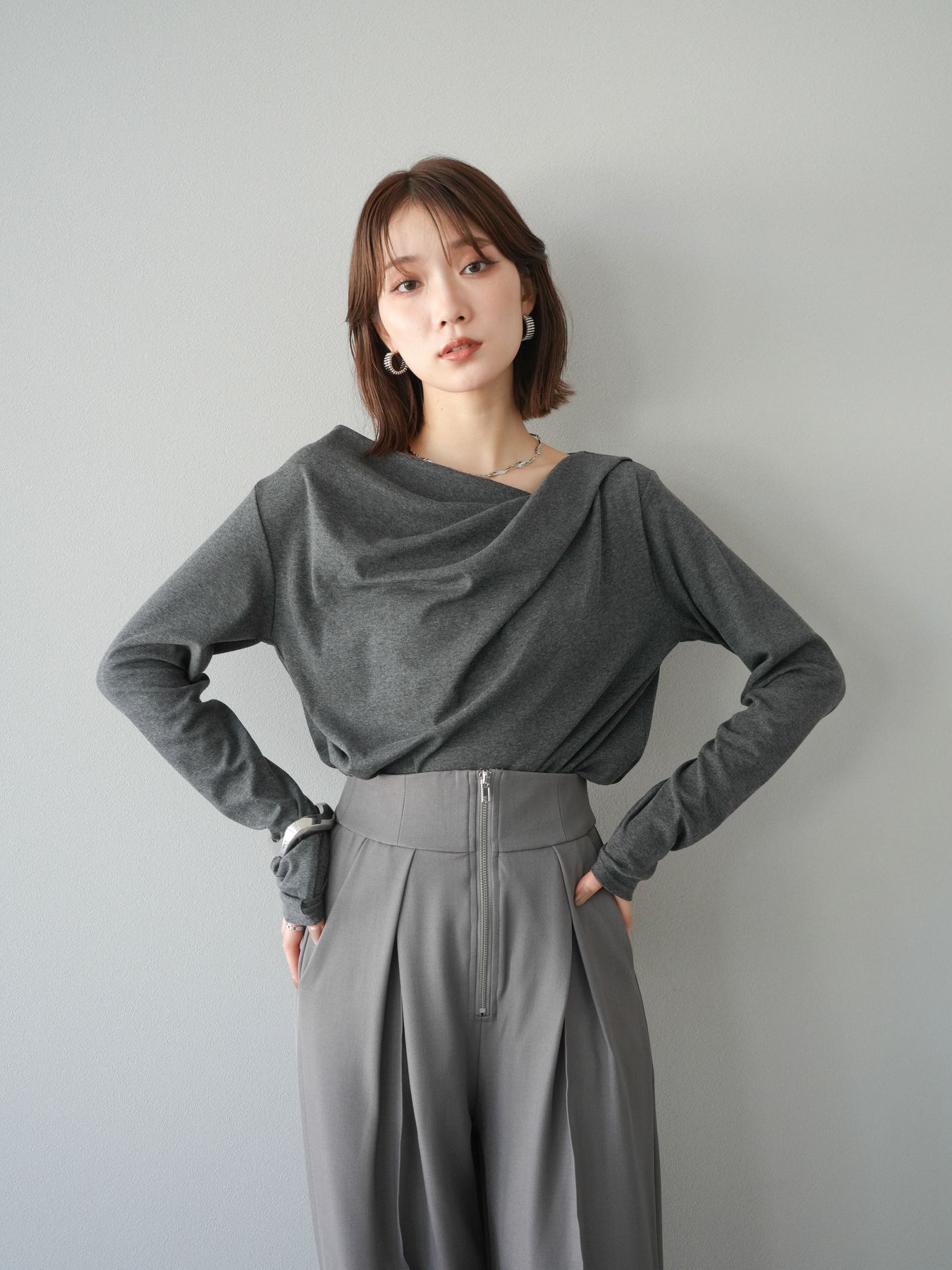 [予約]ドレープデザインカットソー/チャコール