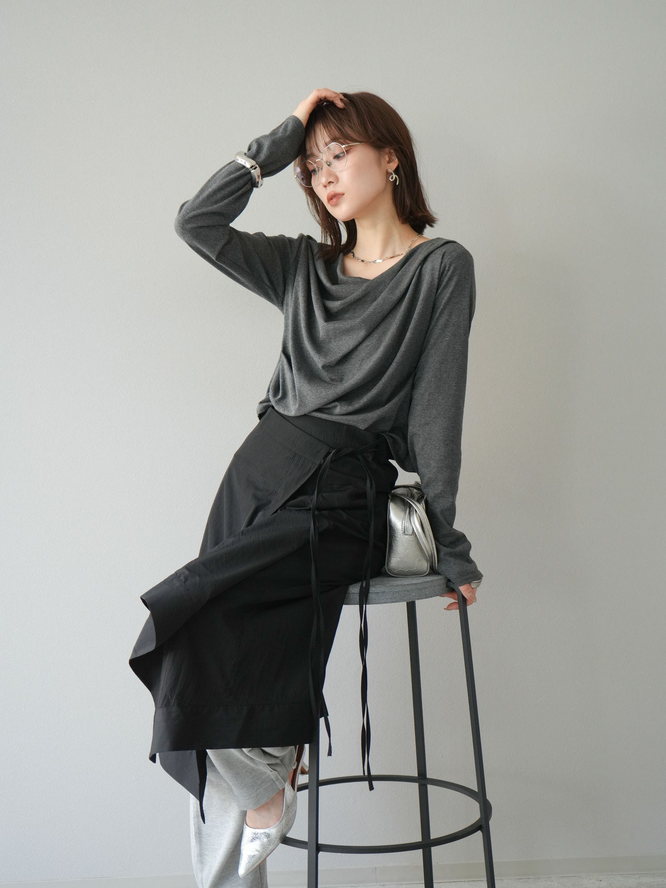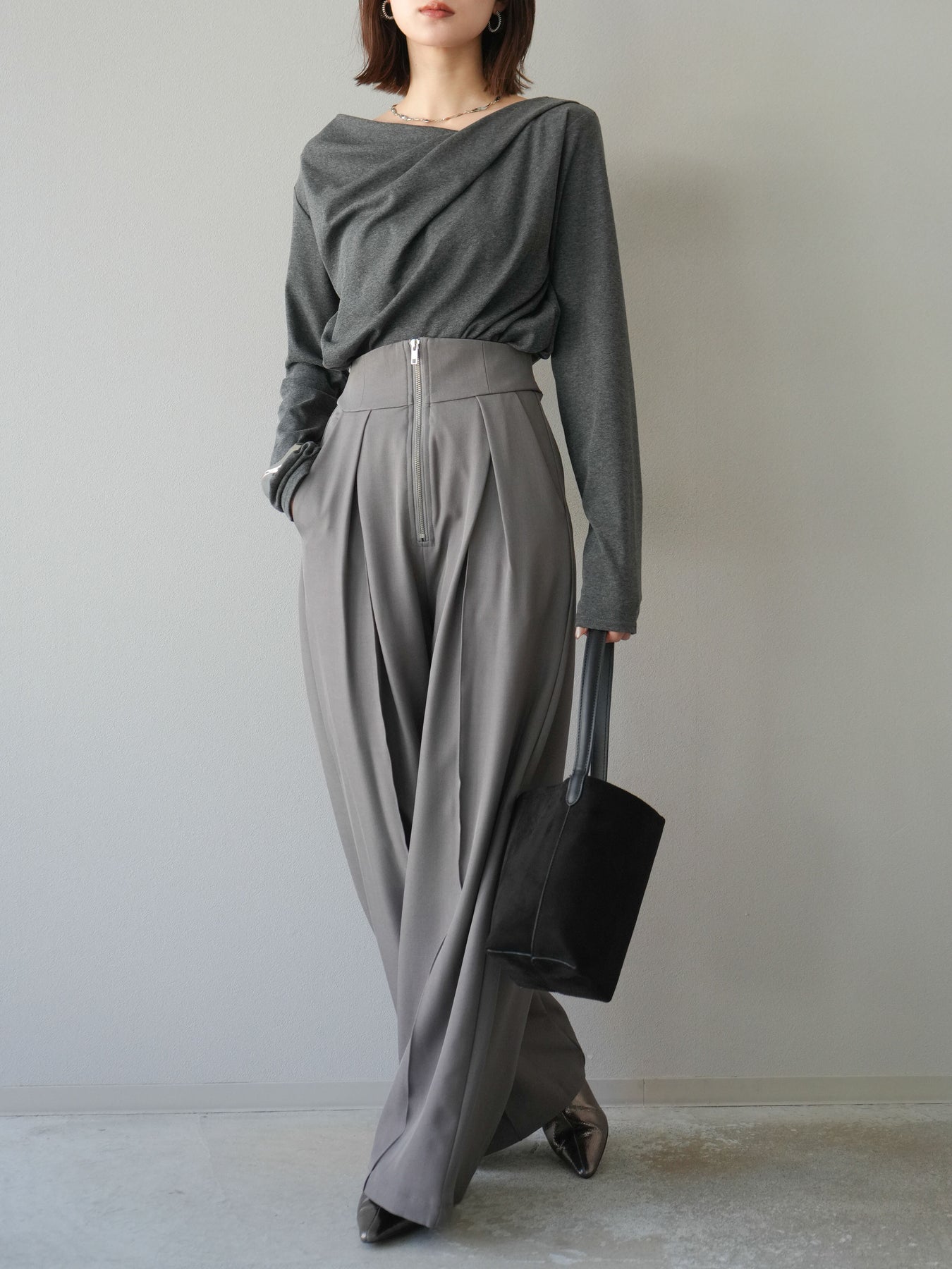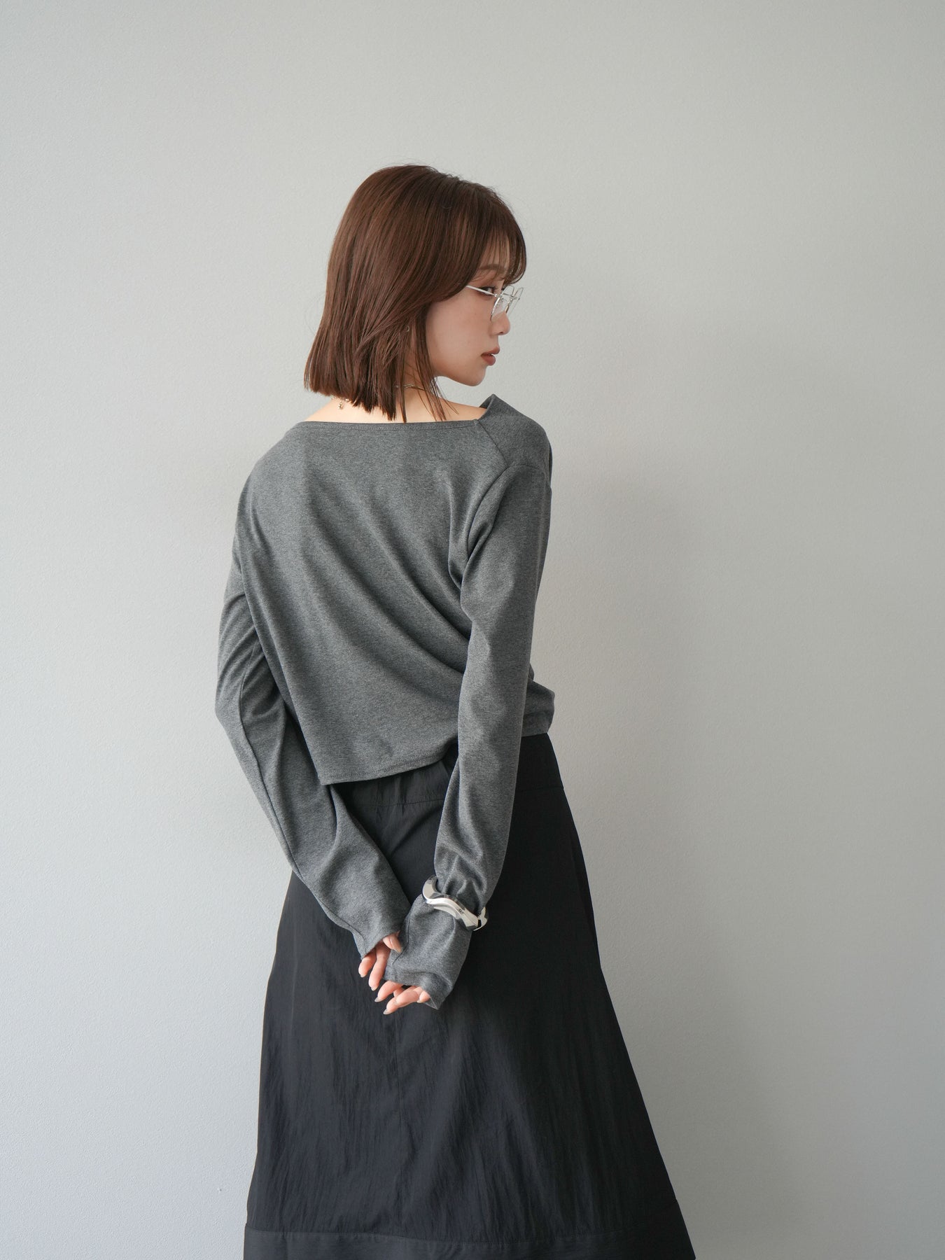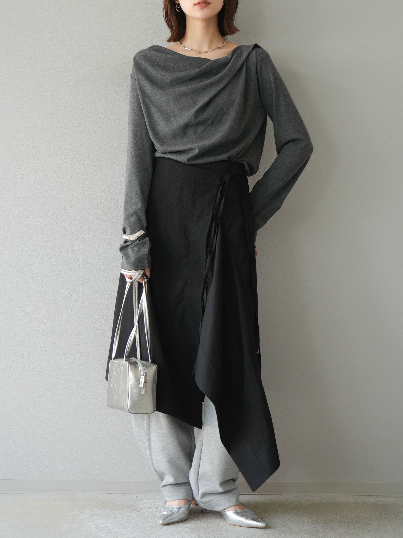 [予約]ドレープデザインカットソー/チャコール