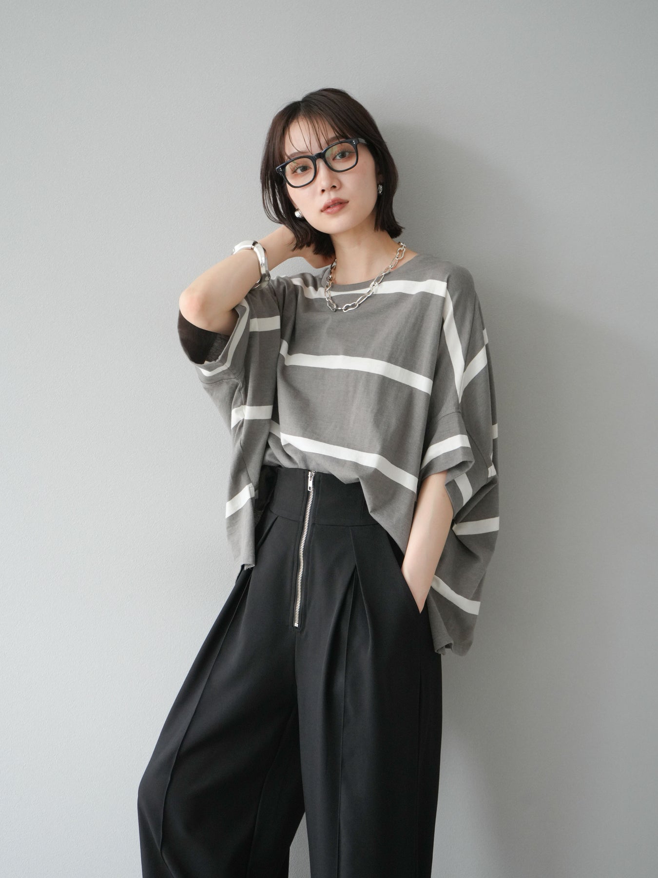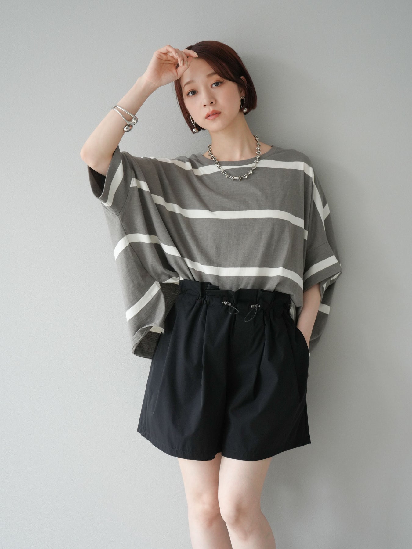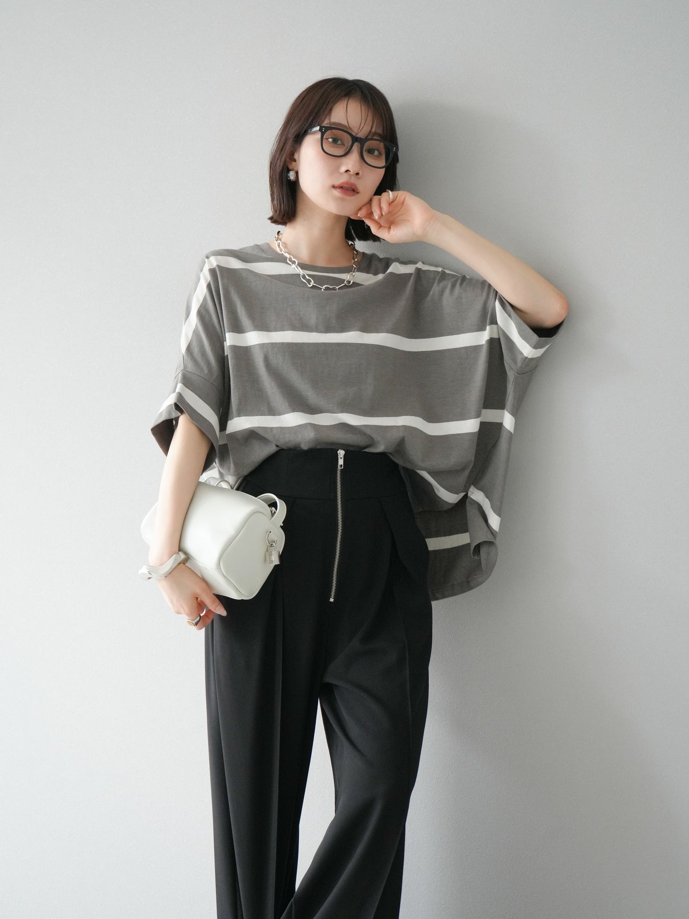 ゆったりとしたシルエットが魅力の、ボーダードルマンBIG Tシャツ。肩のラインを落としたドルマンスリーブが抜け感を演出し、リラクシーながらも大人のこなれ感あるスタイリングに仕上がります。存在感のある太めのボーダー柄は、カジュアルながらも上品な印象を与えてくれるのがポイント。パンツにもスカートにも合わせやすく、タックインでもアウトでもバランスよく決まる万能な一着です。 ※ボトムス、キャミソール(インナー)以外の商品は一律でインナーは付属していません。