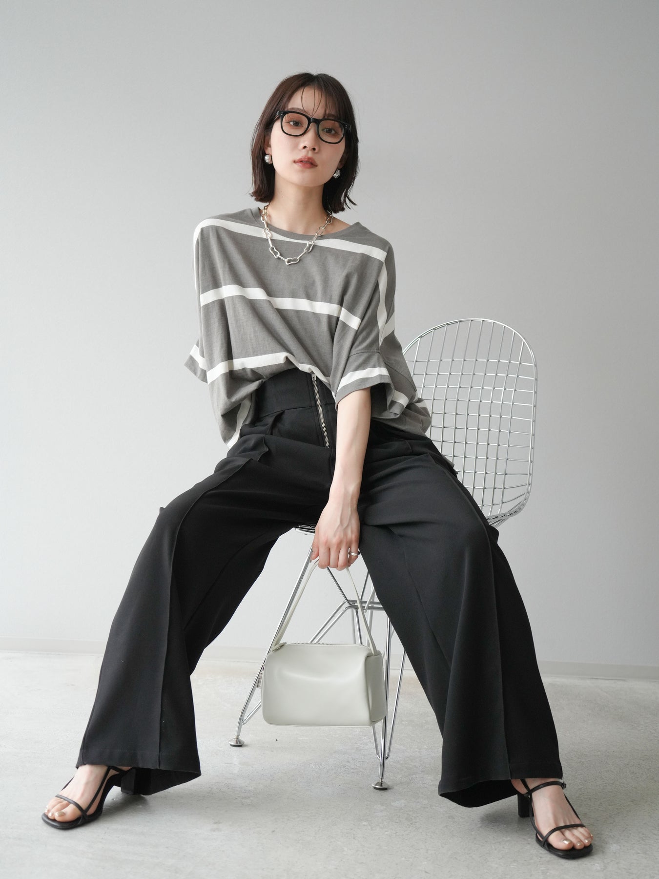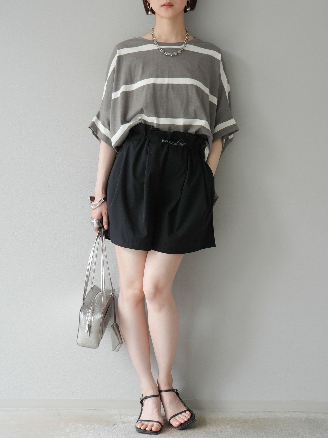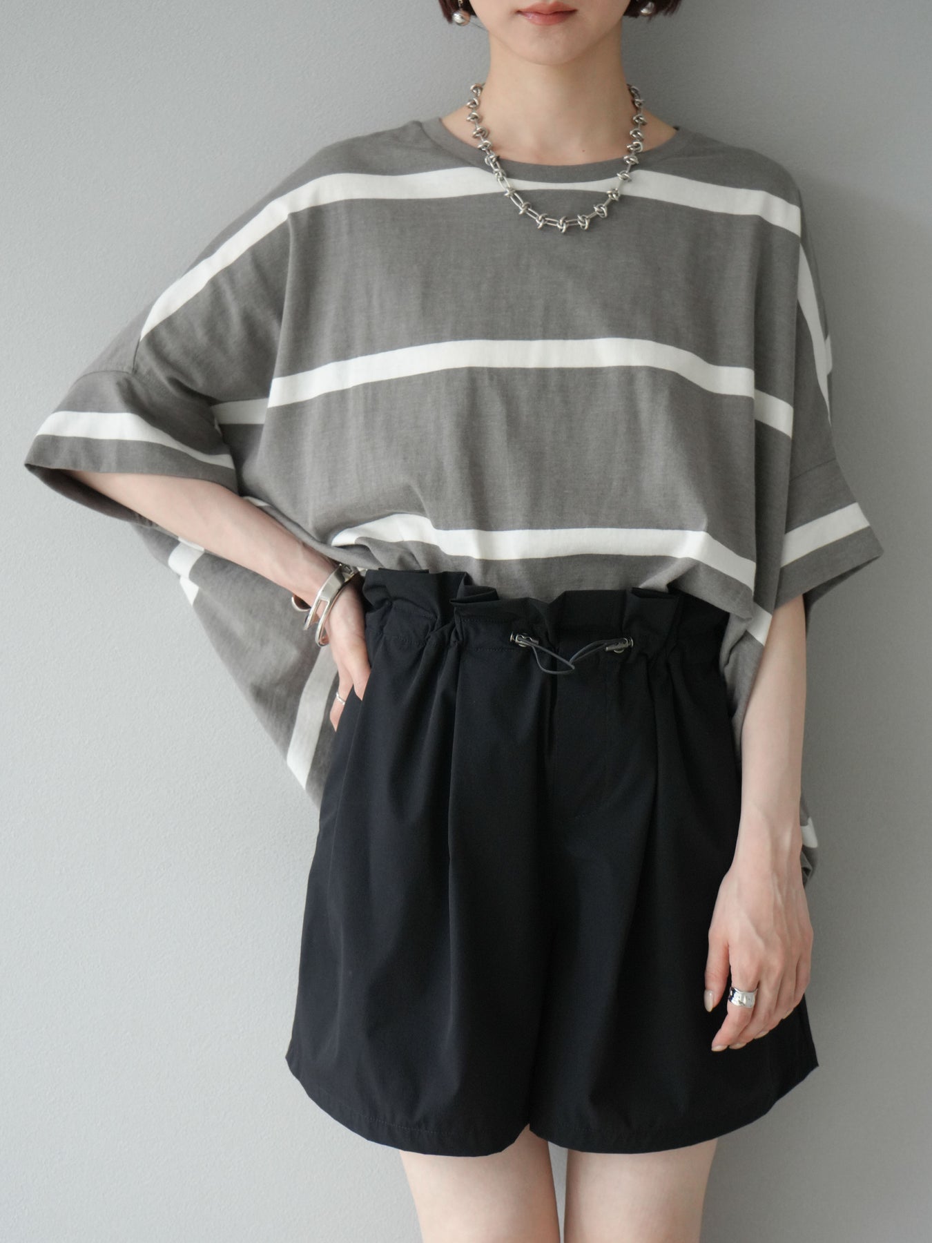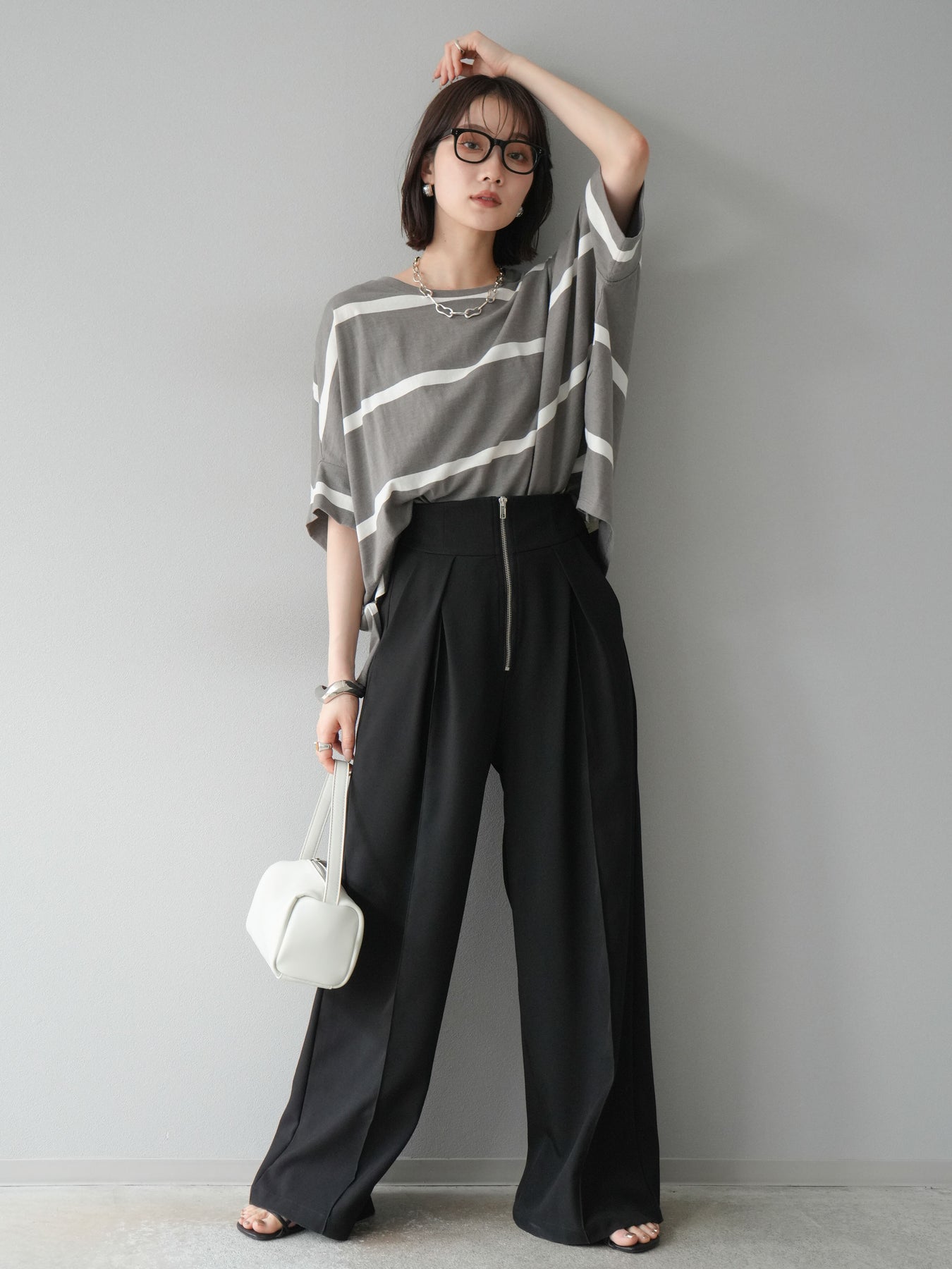 ゆったりとしたシルエットが魅力の、ボーダードルマンBIG Tシャツ。肩のラインを落としたドルマンスリーブが抜け感を演出し、リラクシーながらも大人のこなれ感あるスタイリングに仕上がります。存在感のある太めのボーダー柄は、カジュアルながらも上品な印象を与えてくれるのがポイント。パンツにもスカートにも合わせやすく、タックインでもアウトでもバランスよく決まる万能な一着です。 ※ボトムス、キャミソール(インナー)以外の商品は一律でインナーは付属していません。