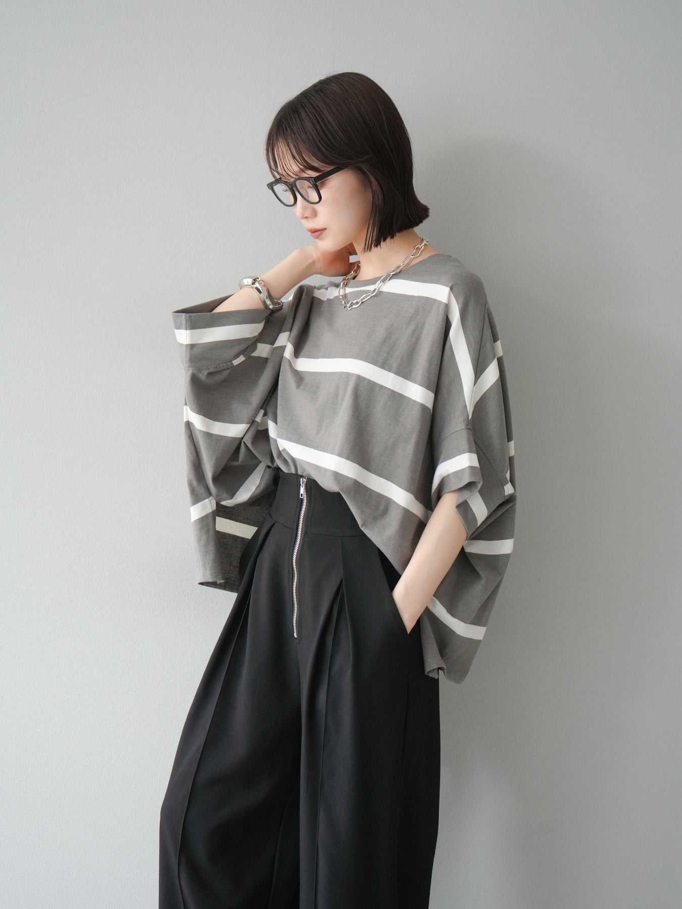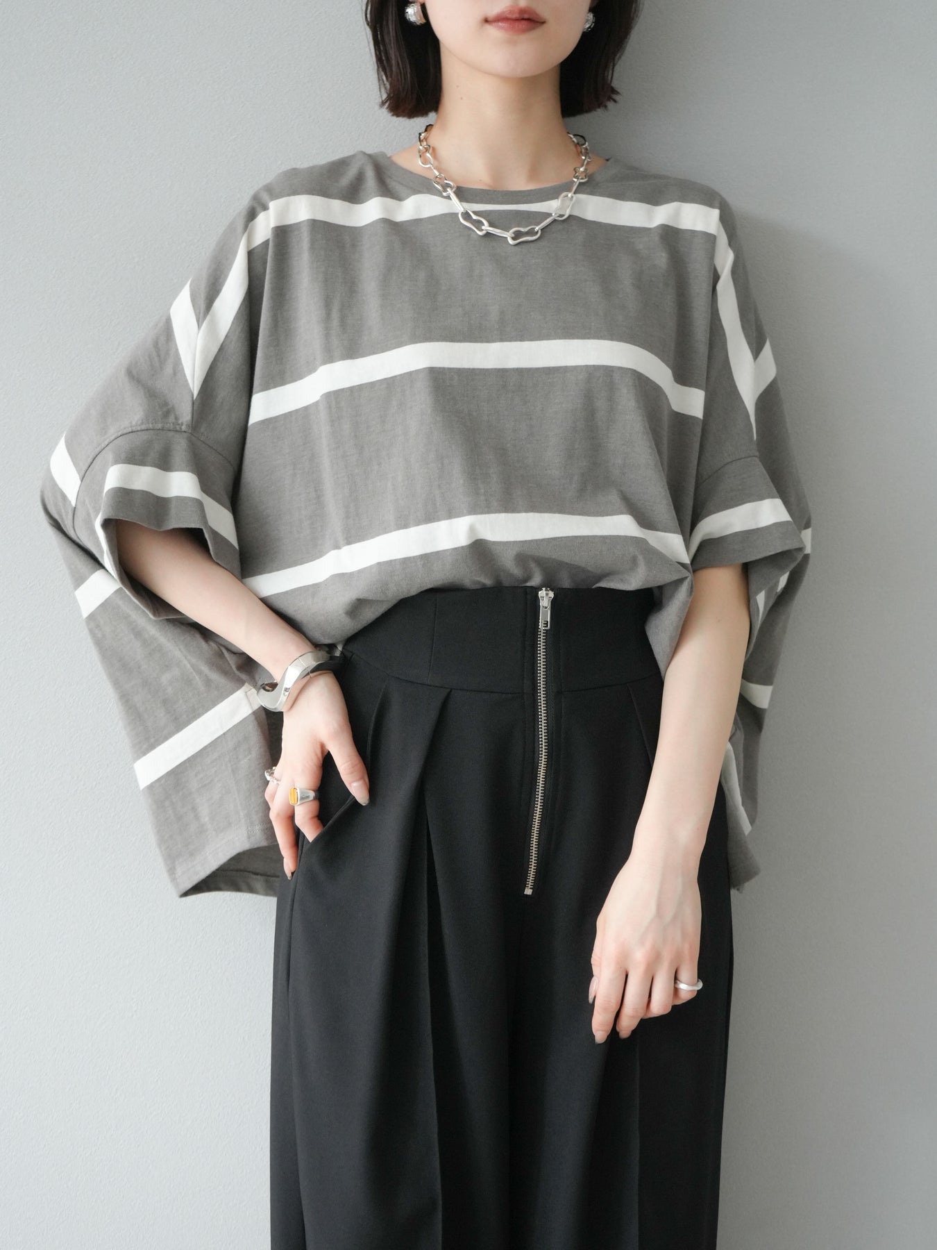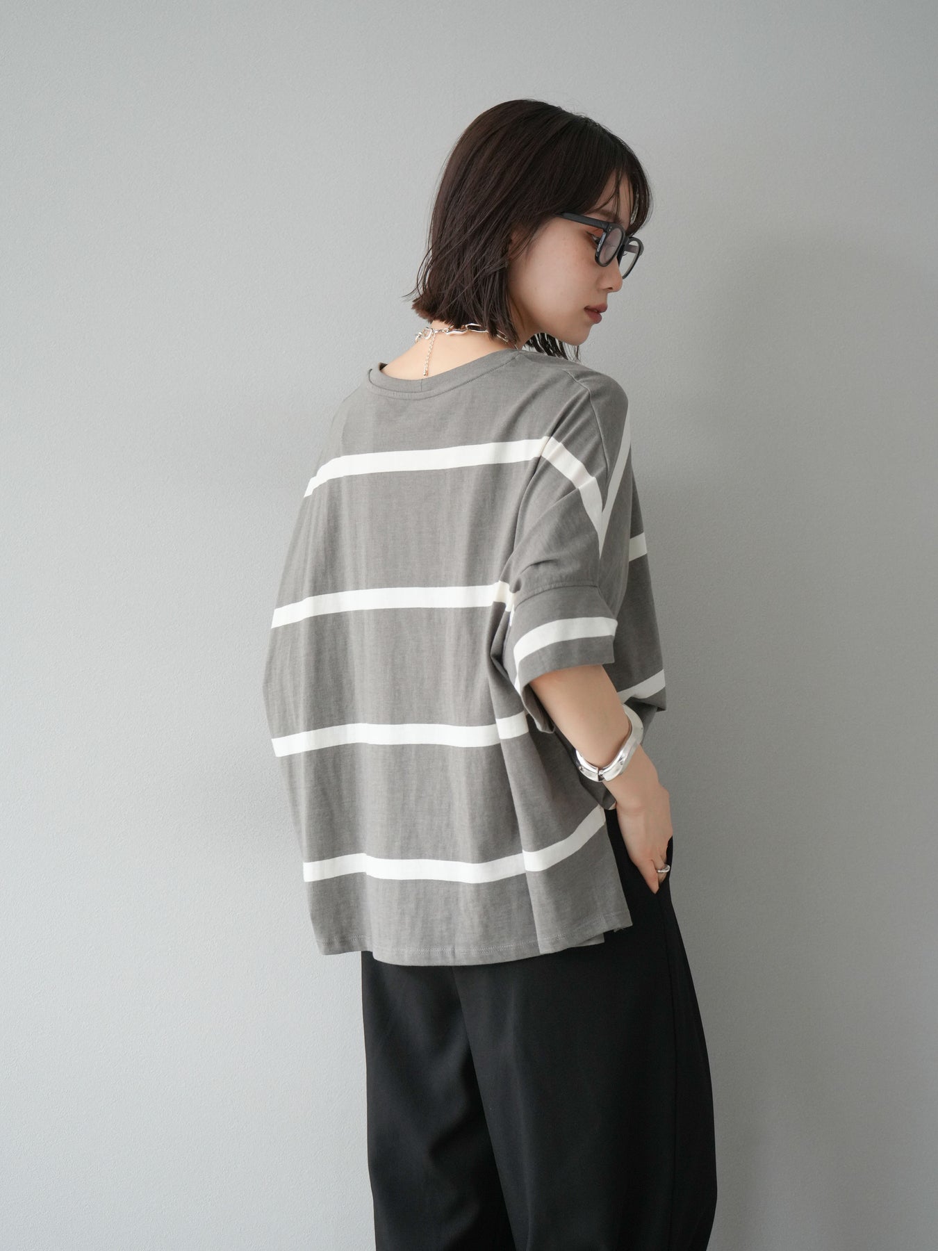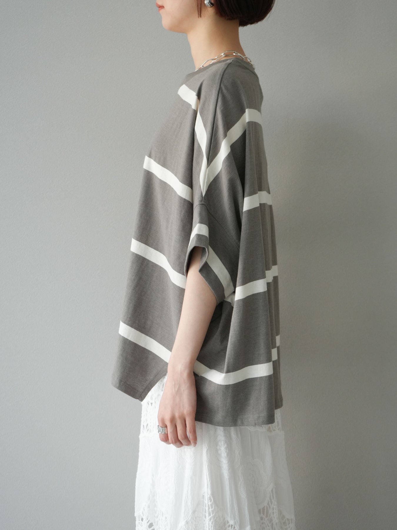 [予約]ボーダードルマンBIG Tシャツ/セピアグレー×オフ