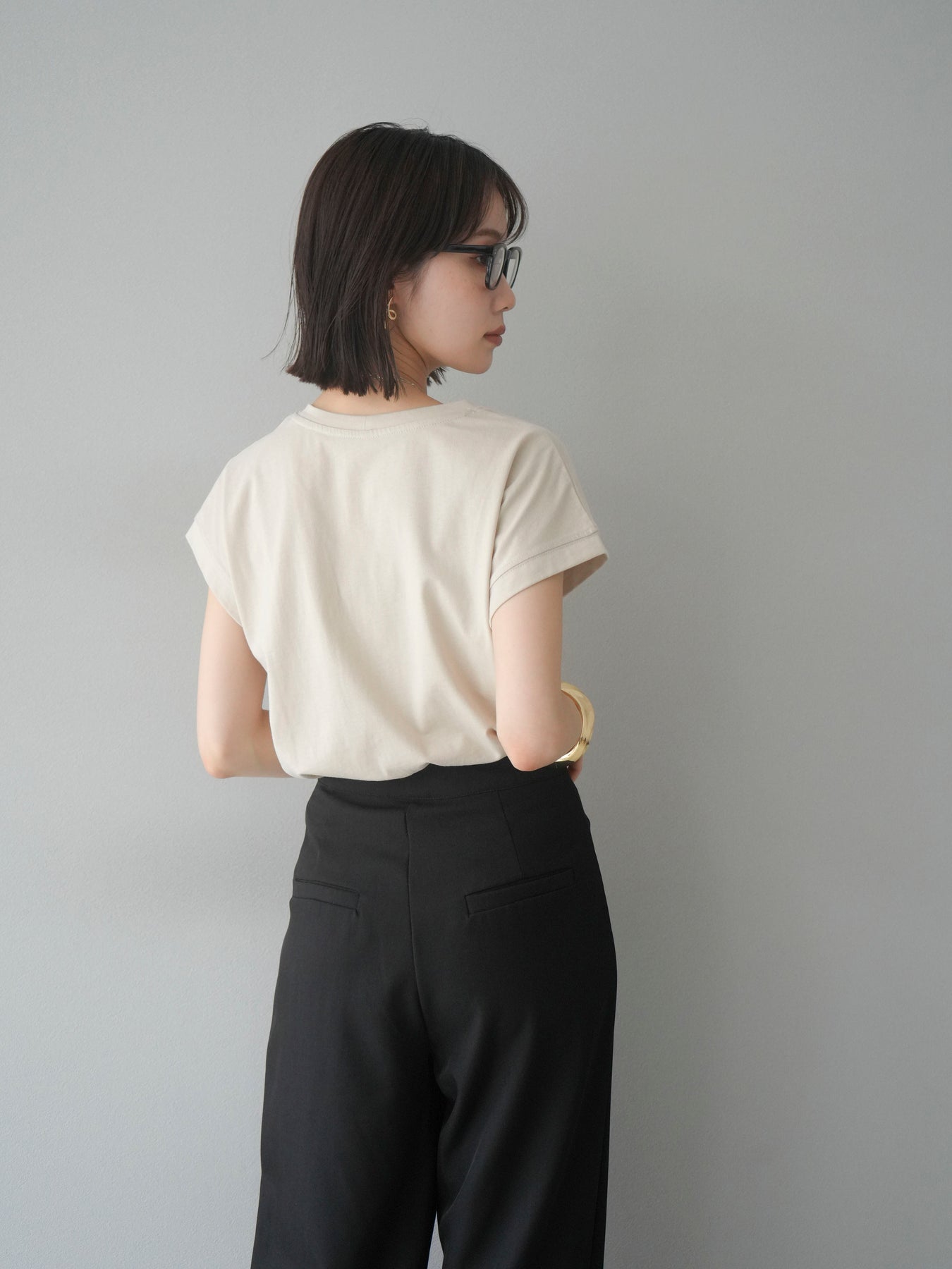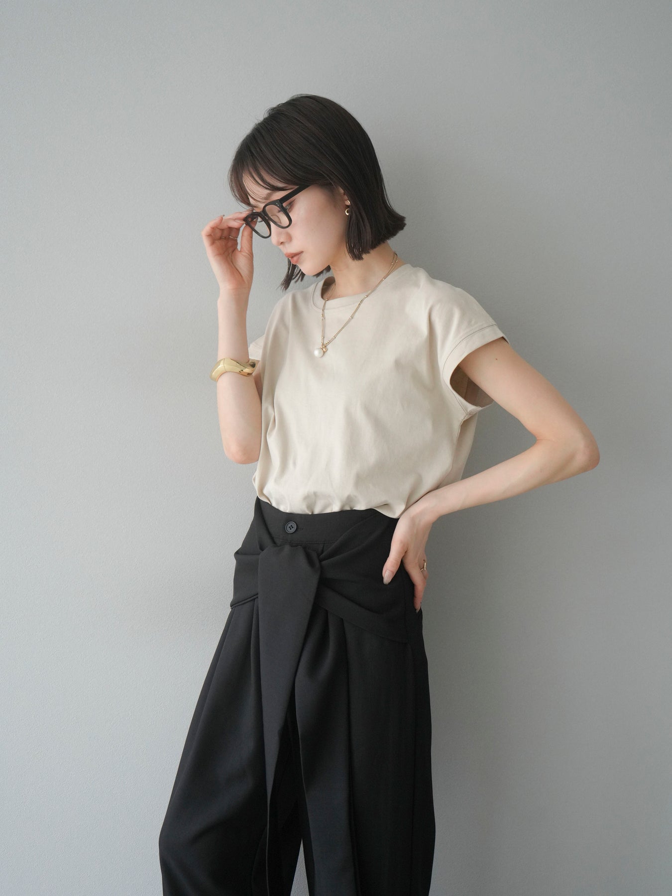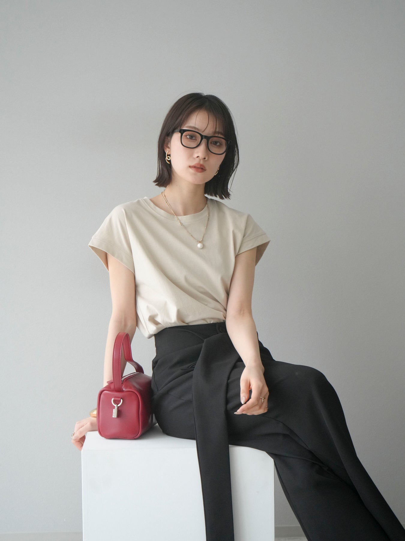 シンプルでありながらも女性らしさを引き立てる、フレンチスリーブTシャツ。袖口がさりげなく肩にかかるフレンチスリーブデザインは、気になる腕周りを自然にカバーしつつ、抜け感のある上品なシルエットに仕上げています。柔らかく滑らかなコットン素材で肌触りも快適。サイドスリットと前後差のある裾が、アウトスタイルでもバランスよく決まります。デイリーに使いやすいベーシックカラーから差し色まで揃えた、何枚でも欲しくなる万能トップスです。 ※ボトムス、キャミソール(インナー)以外の商品は一律でインナーは付属していません。
