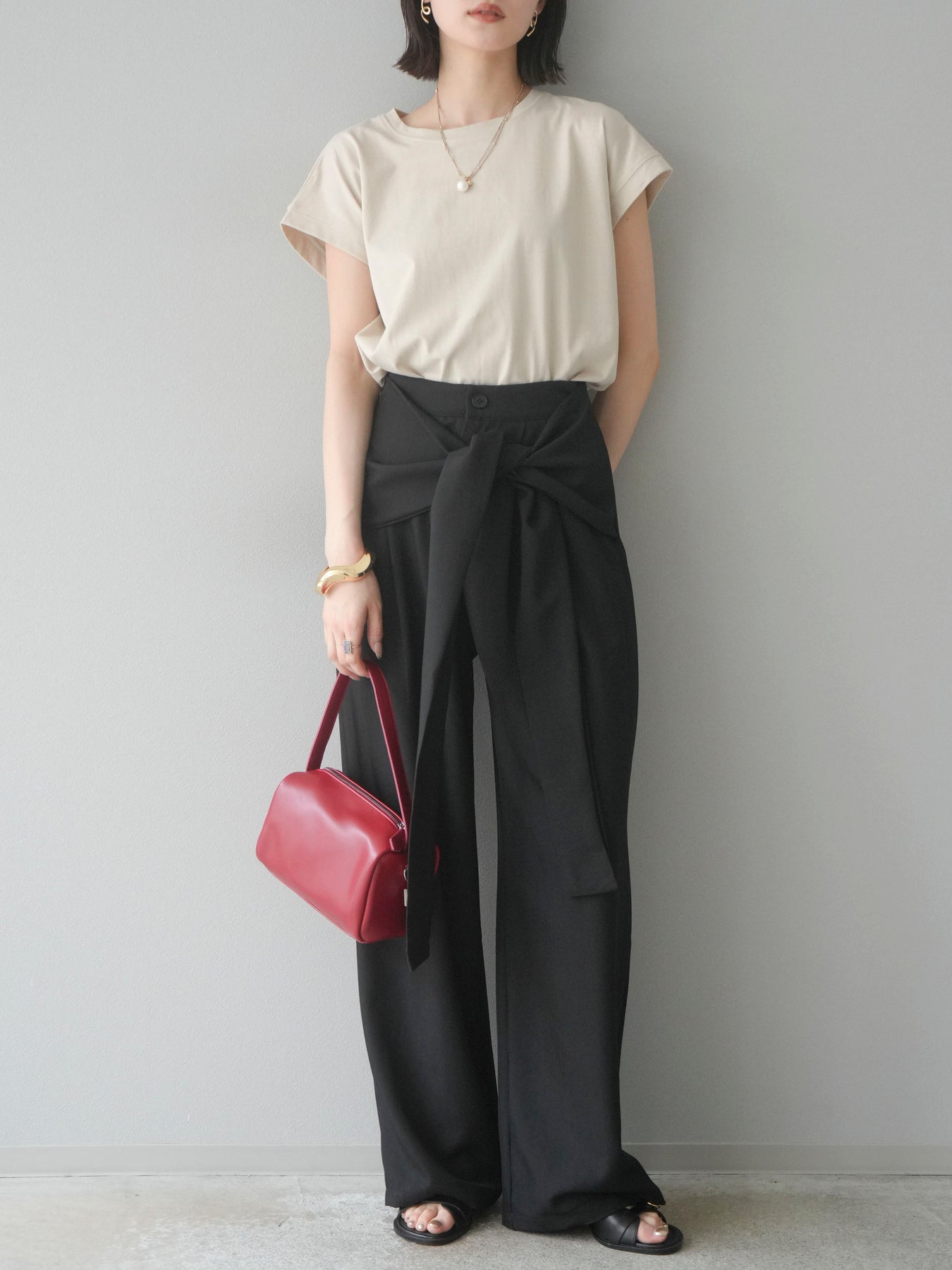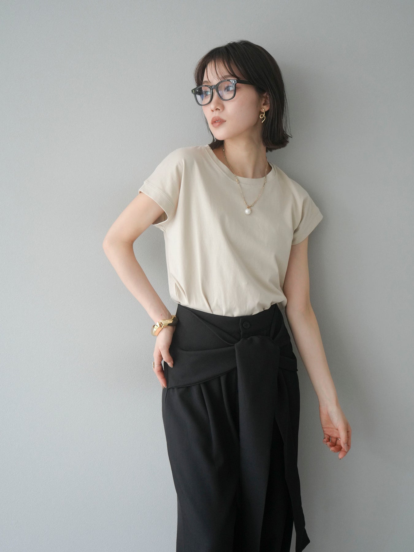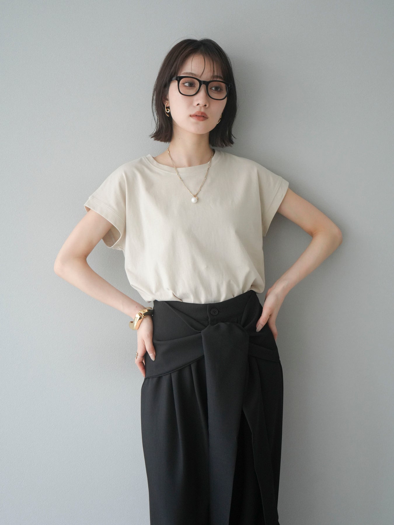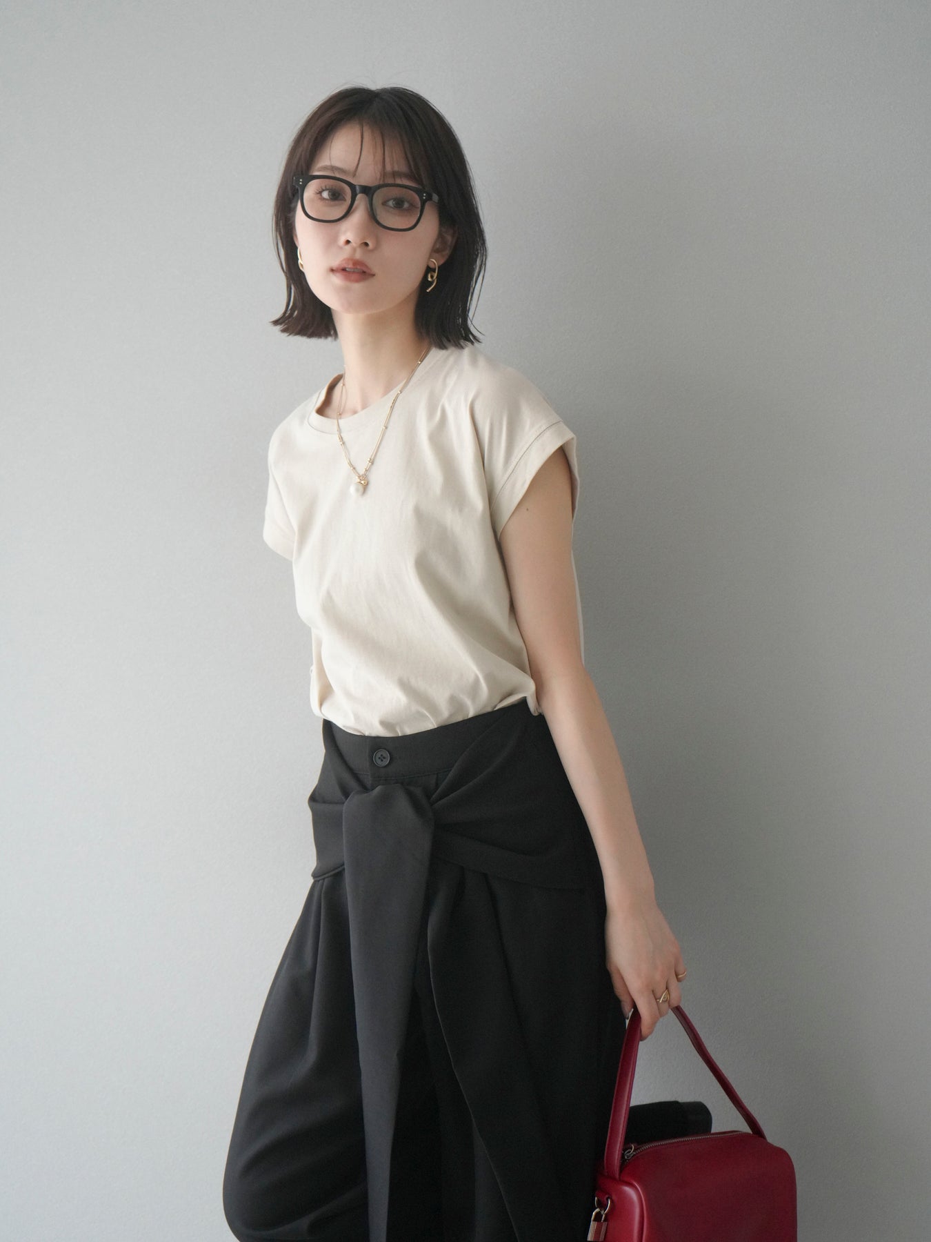 シンプルでありながらも女性らしさを引き立てる、フレンチスリーブTシャツ。袖口がさりげなく肩にかかるフレンチスリーブデザインは、気になる腕周りを自然にカバーしつつ、抜け感のある上品なシルエットに仕上げています。柔らかく滑らかなコットン素材で肌触りも快適。サイドスリットと前後差のある裾が、アウトスタイルでもバランスよく決まります。デイリーに使いやすいベーシックカラーから差し色まで揃えた、何枚でも欲しくなる万能トップスです。 ※ボトムス、キャミソール(インナー)以外の商品は一律でインナーは付属していません。