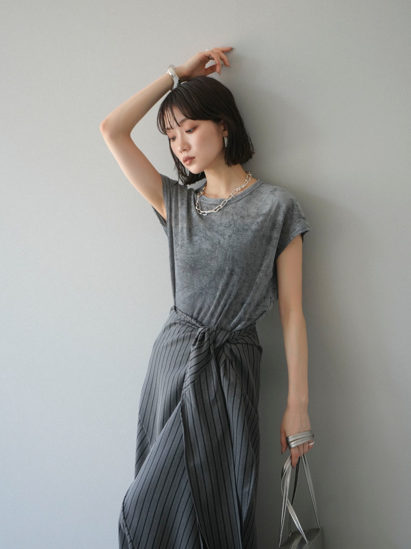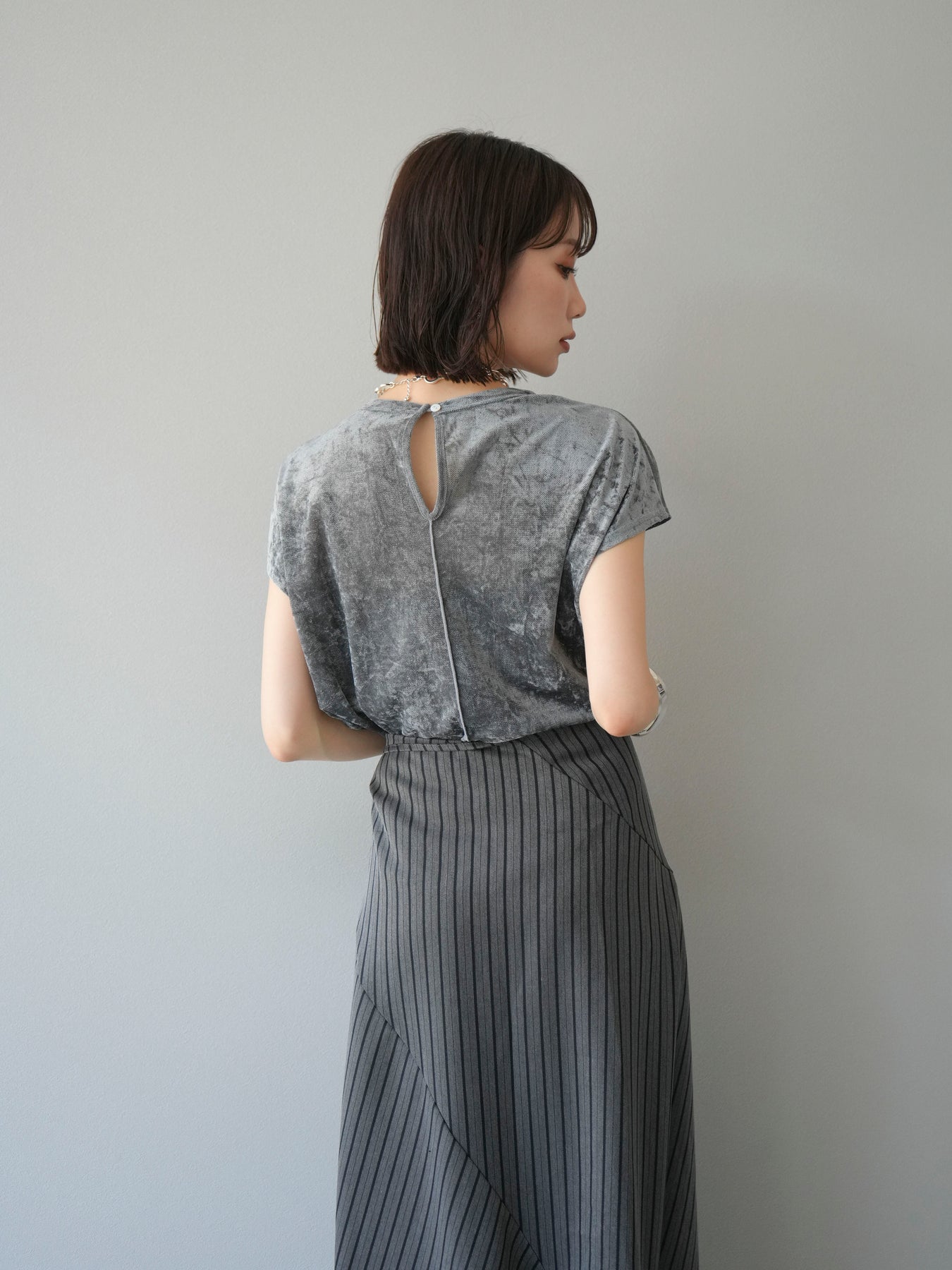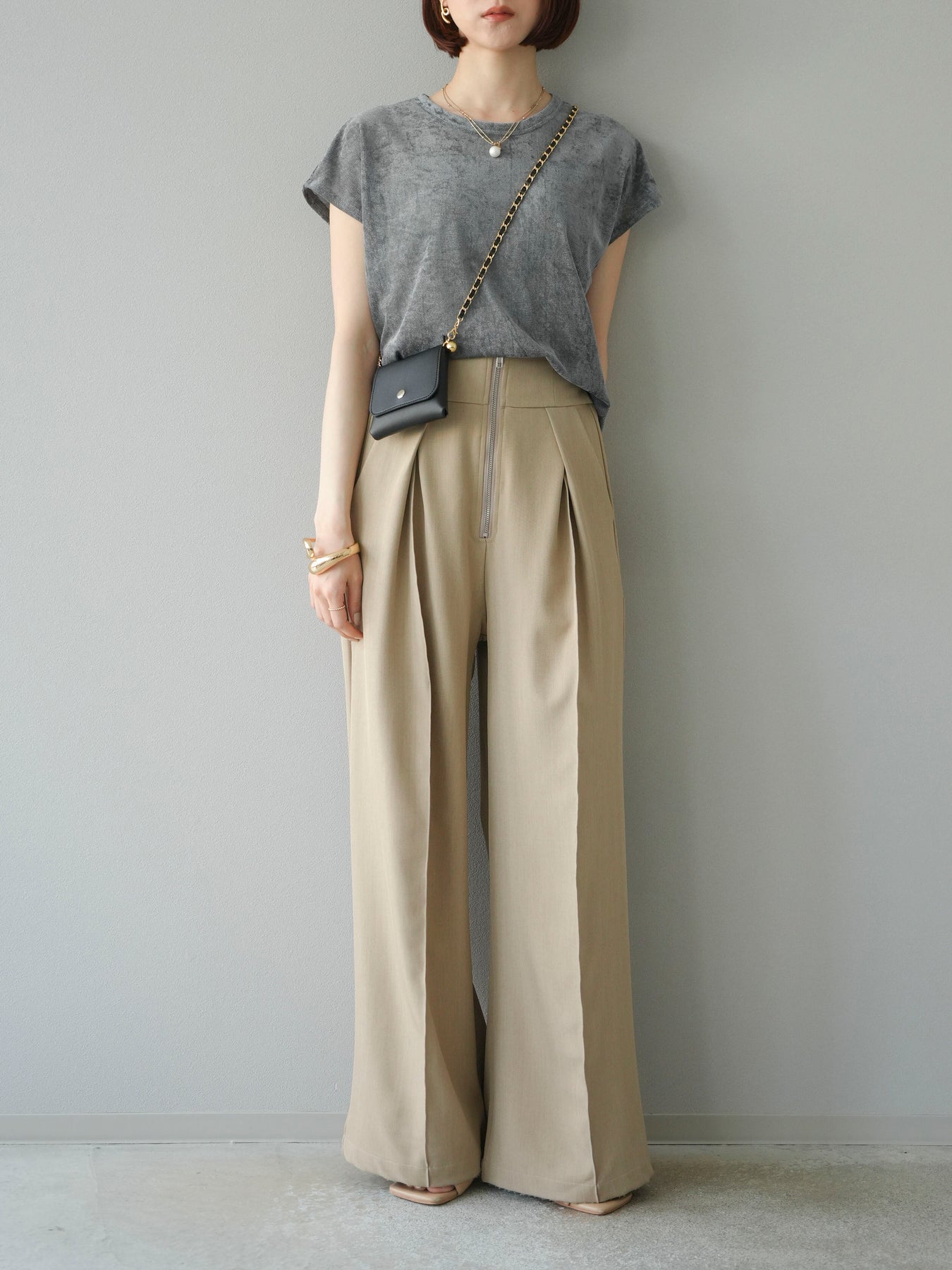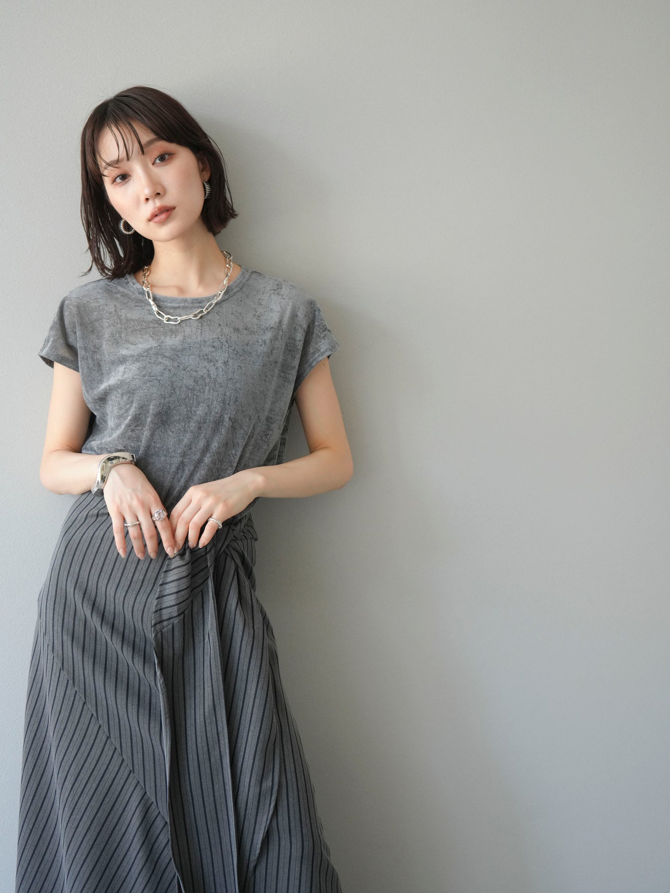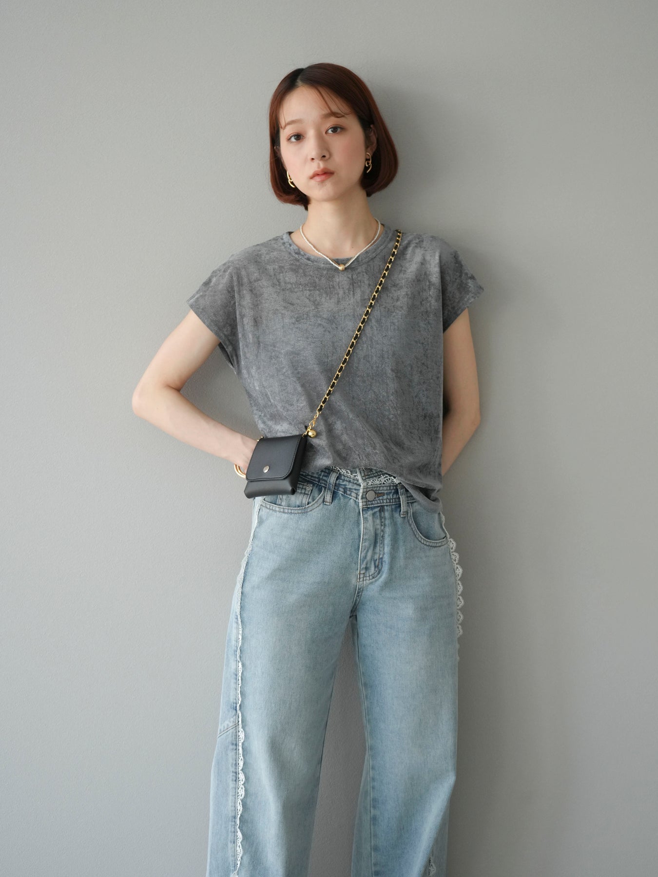 ほんのりとした光沢感と透け感が魅力の、シアーベロア素材を使用したプルオーバー。上品さとカジュアルさを兼ね備えた素材感で、シンプルなシルエットながらもこなれ感を演出してくれる一枚です。落ち感のある柔らかな風合いで着心地も抜群。インナーとのレイヤードで表情を変えられるのもポイントです。デニムやスカートに合わせるだけで、旬なスタイリングが完成する万能トップス。 ※ボトムス、キャミソール(インナー)以外の商品は一律でインナーは付属していません。