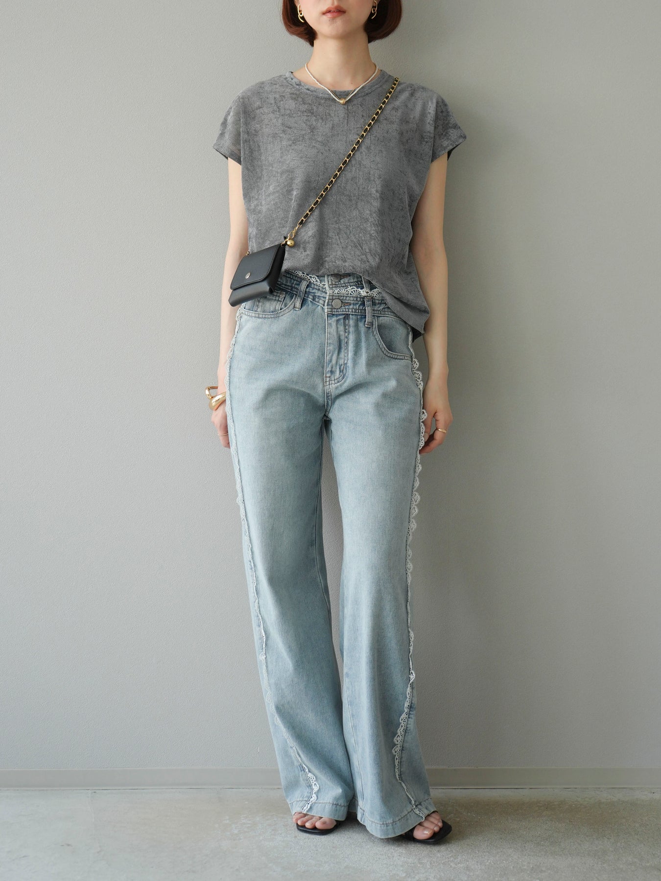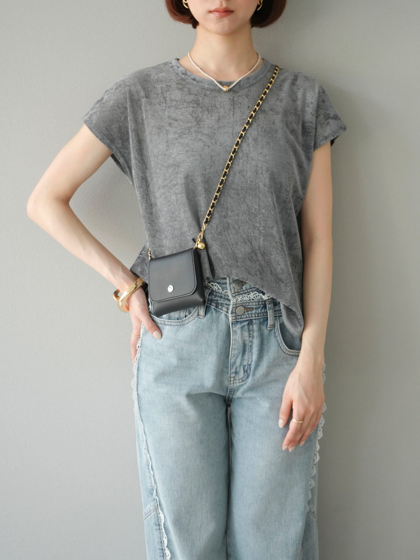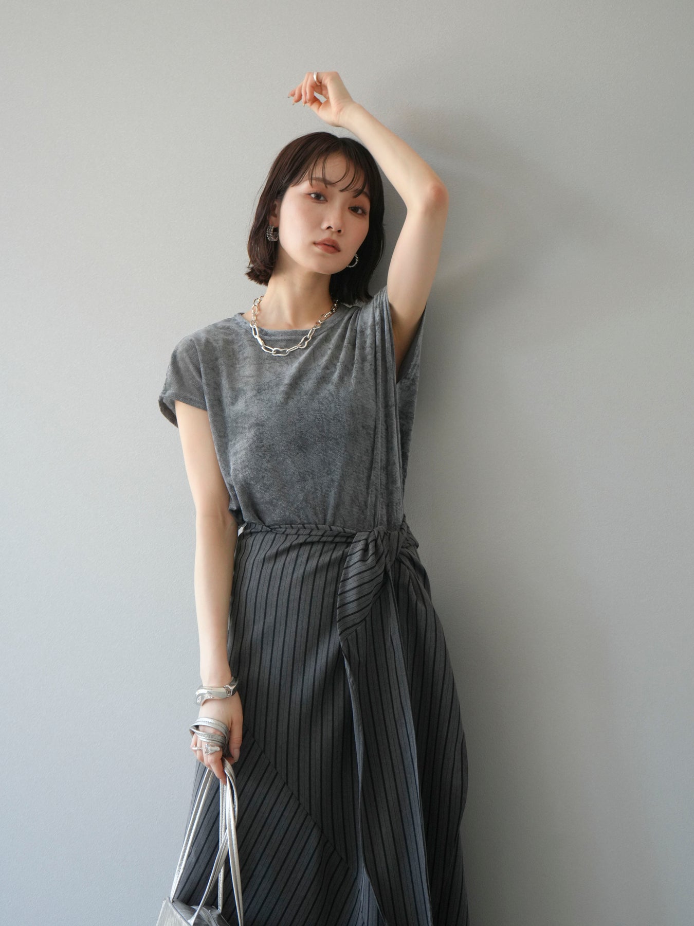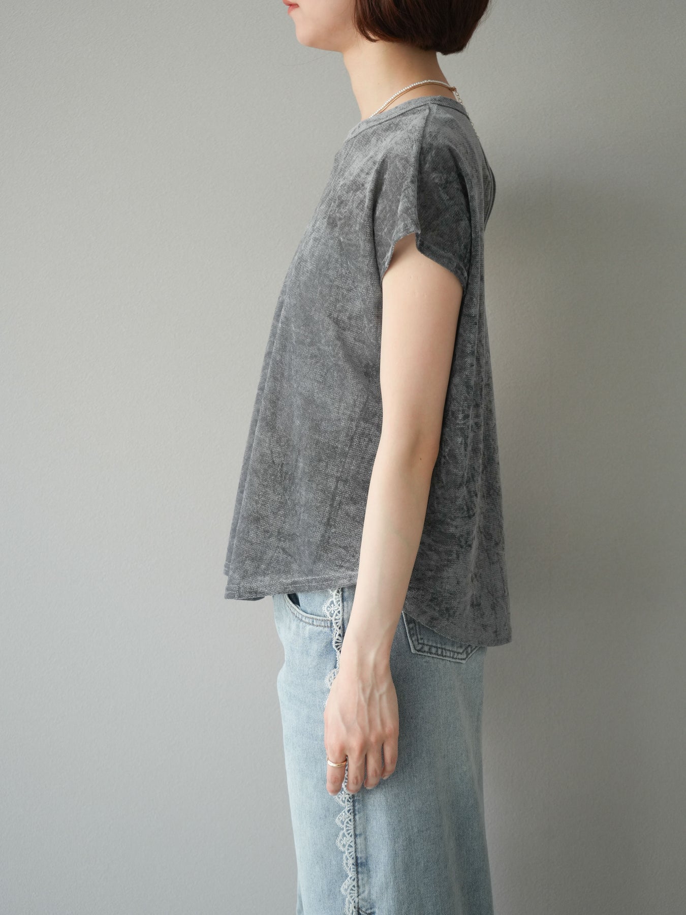 ほんのりとした光沢感と透け感が魅力の、シアーベロア素材を使用したプルオーバー。上品さとカジュアルさを兼ね備えた素材感で、シンプルなシルエットながらもこなれ感を演出してくれる一枚です。落ち感のある柔らかな風合いで着心地も抜群。インナーとのレイヤードで表情を変えられるのもポイントです。デニムやスカートに合わせるだけで、旬なスタイリングが完成する万能トップス。 ※ボトムス、キャミソール(インナー)以外の商品は一律でインナーは付属していません。