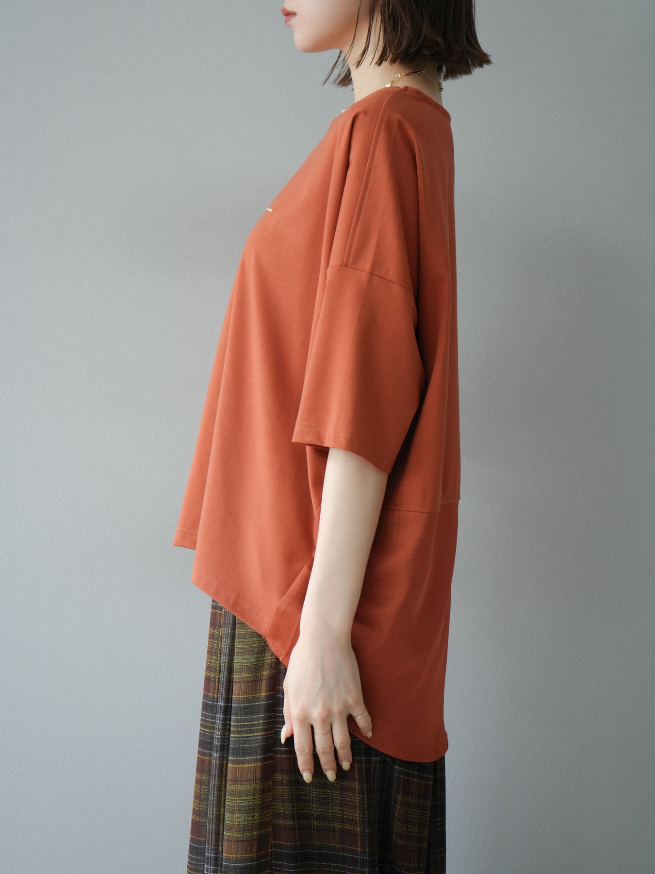 [予約]異素材メタリックロゴ刺繍×プリントTシャツ/オレンジ