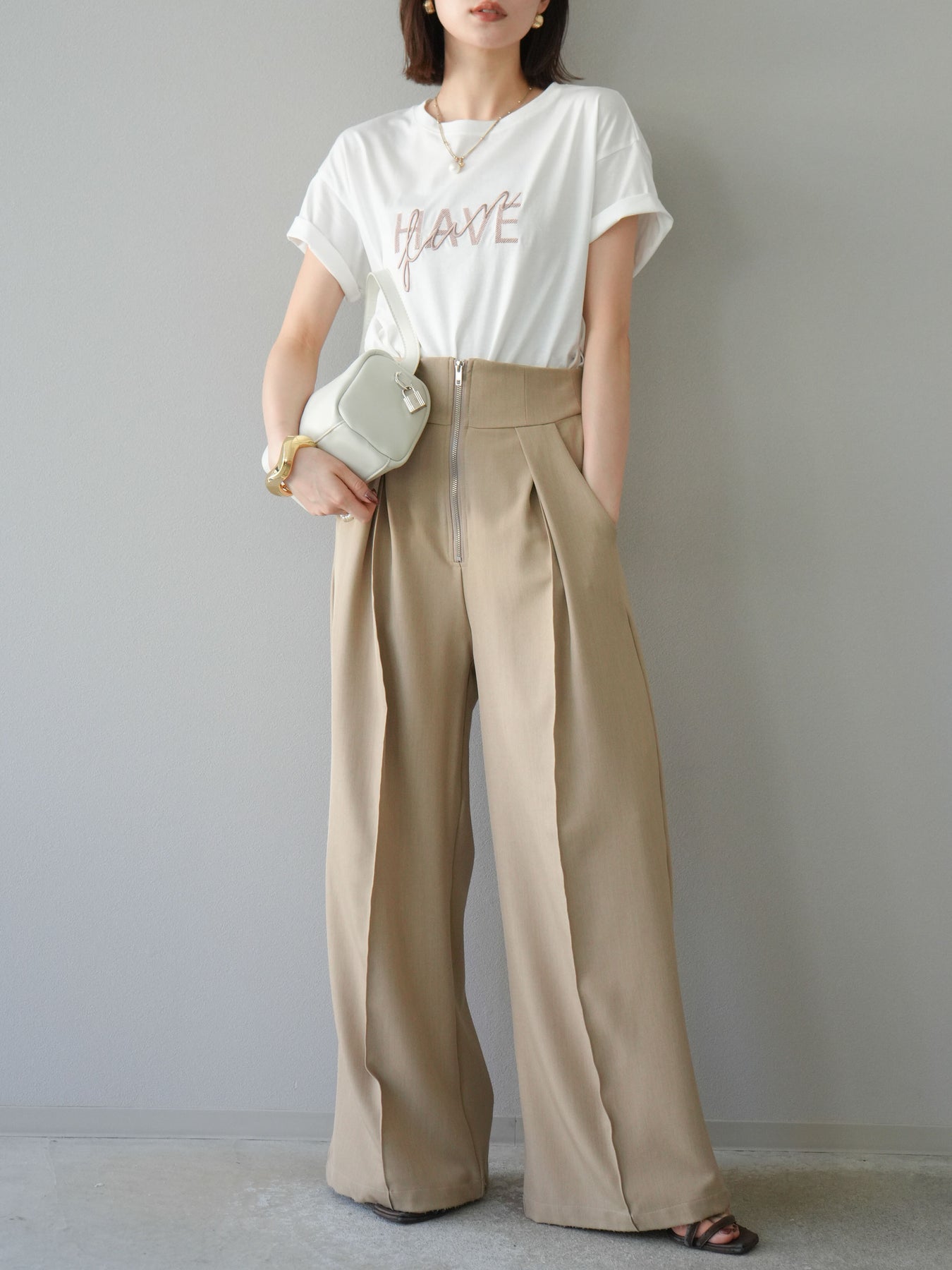 [予約]デザインロゴ刺繍Tシャツ/オフホワイト