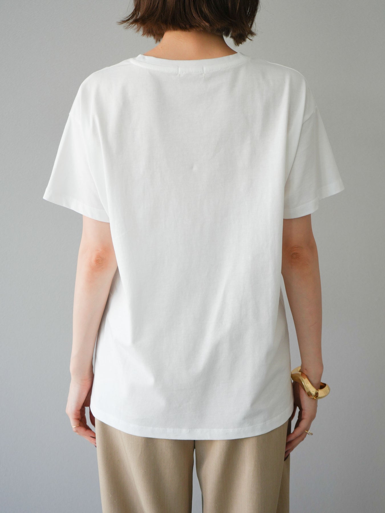 異なるフォントで構成された立体感のあるロゴ刺繍が印象的なデザインTシャツ。 刺繍ならではの奥行きと洗練された雰囲気が、シンプルながらも目を惹くアクセントに。 程よくゆとりのあるシルエットで、デイリーコーデはもちろん、レイヤードスタイルのインナーにも活躍します。 さらりとした肌触りのコットン素材で、着心地の良さも魅力です。