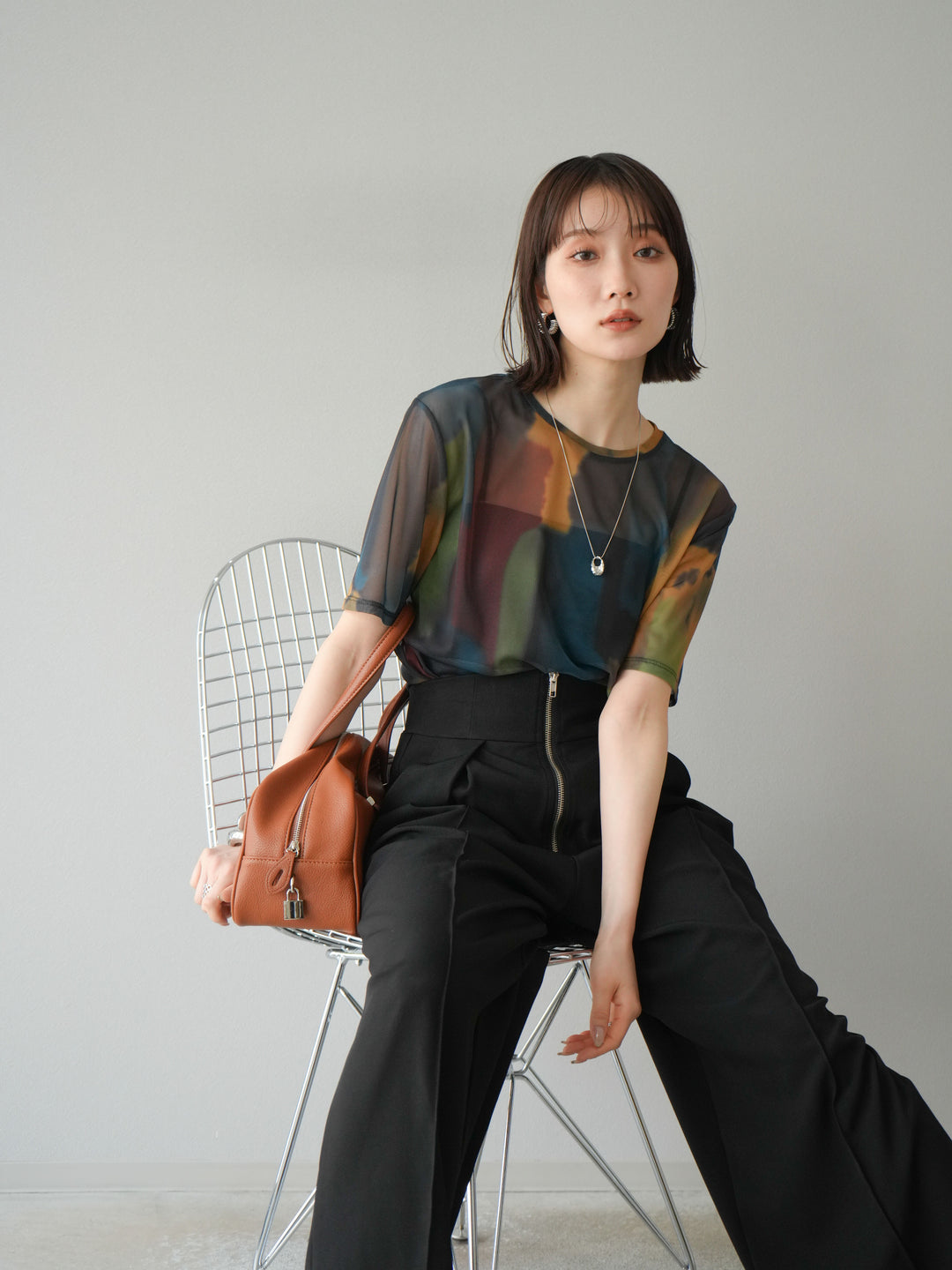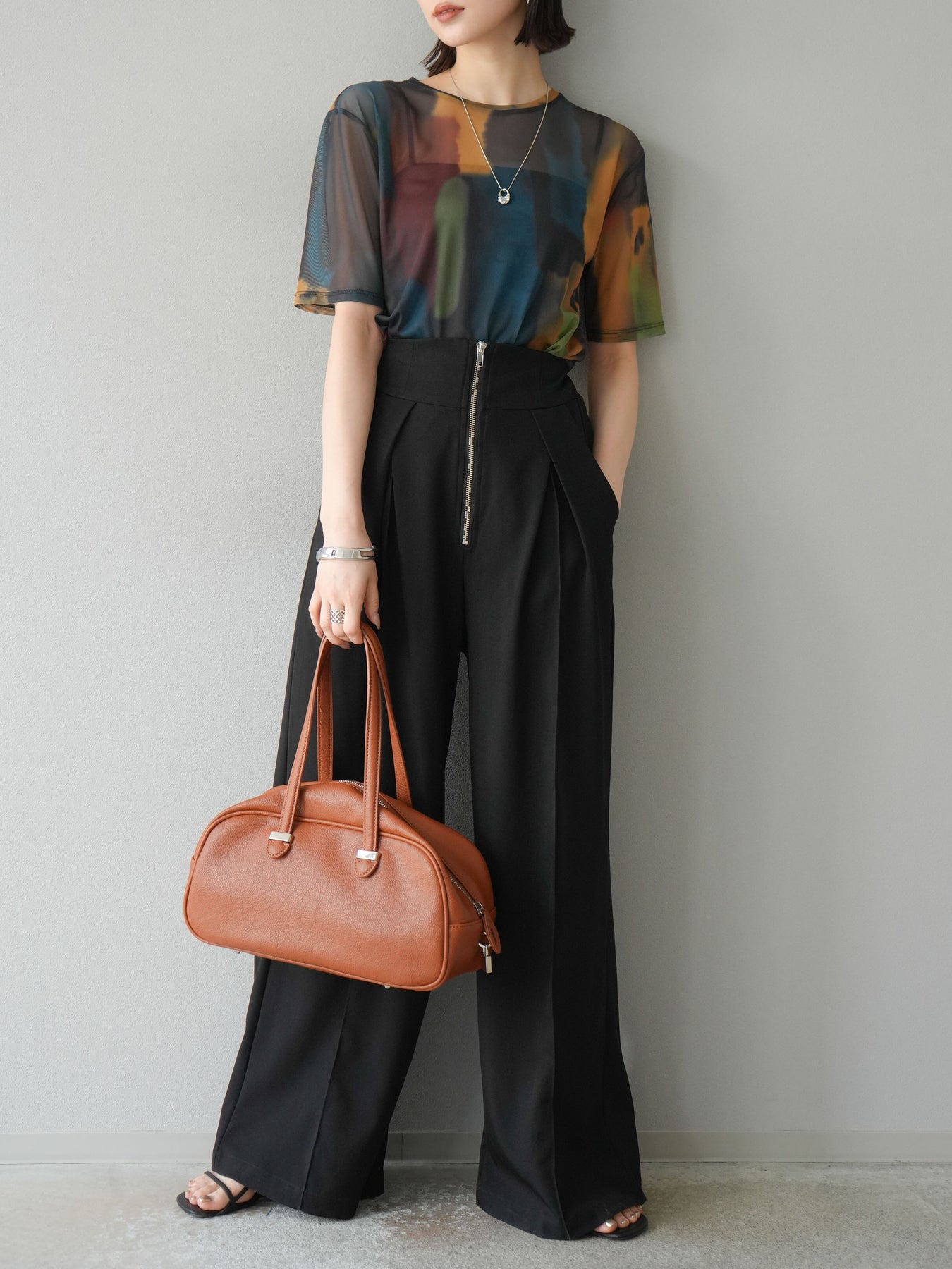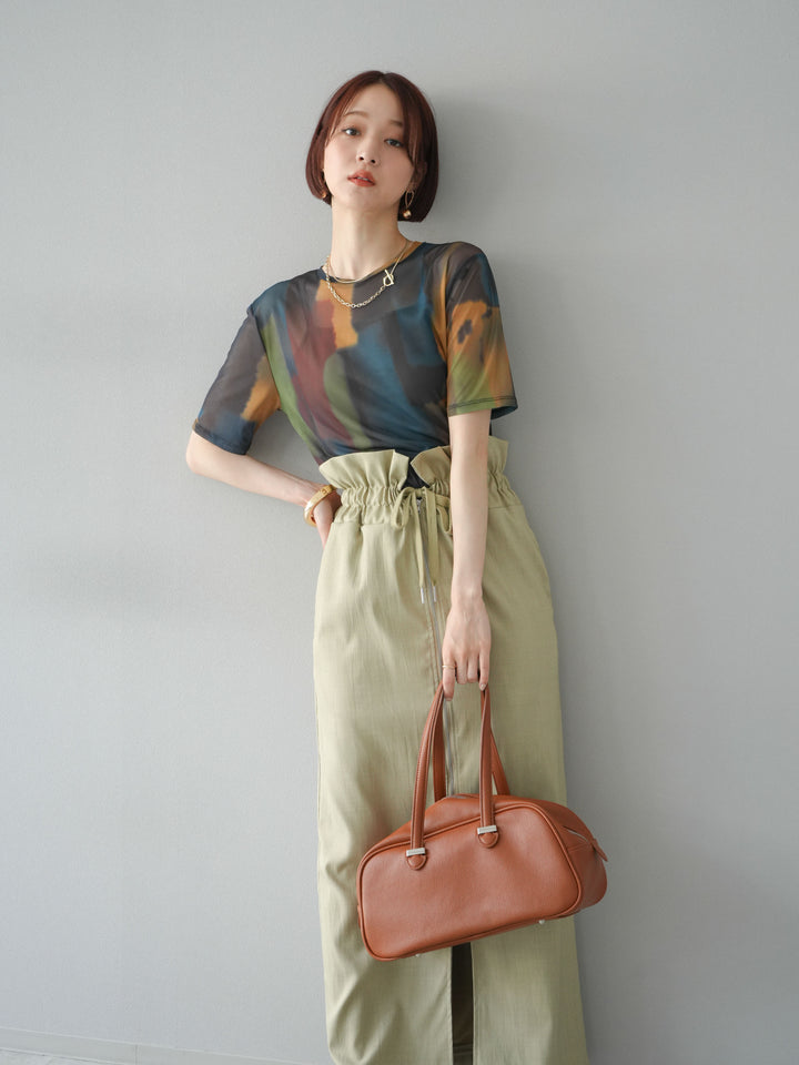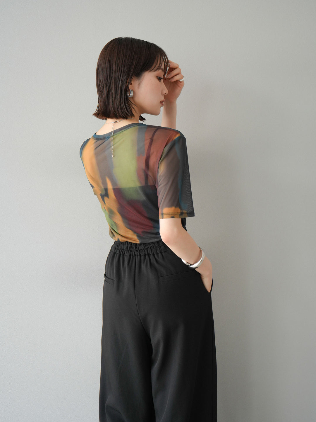 水彩画のような柔らかなタッチで描かれたアートプリントが目を惹く、水彩アートシアーTシャツ。軽やかな透け感のあるシアー素材が、トレンド感と抜け感を演出し、1枚でスタイリングに華やかさをプラスしてくれます。程よくフィットするシルエットで、インナーとのレイヤードも楽しめるアイテム。カジュアルなボトムと合わせても、どこか洗練された印象に仕上がる大人のためのデザインTシャツです。 ※ボトムス、キャミソール(インナー)以外の商品は一律でインナーは付属していません。