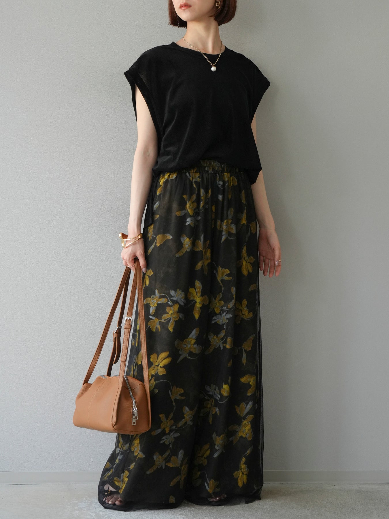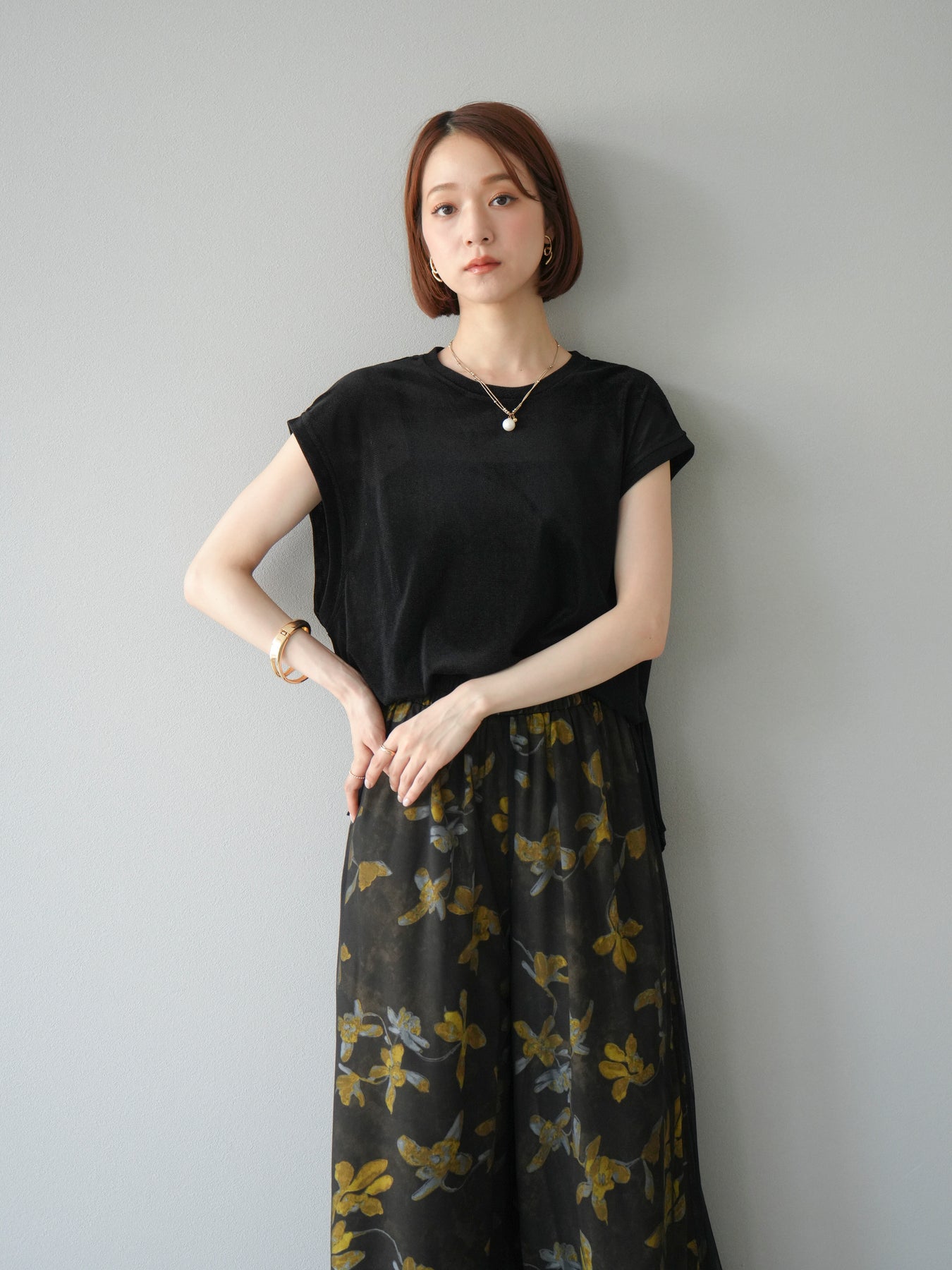 [予約]シアーフロッキーベロアルーズノースリーブTシャツ/ブラック