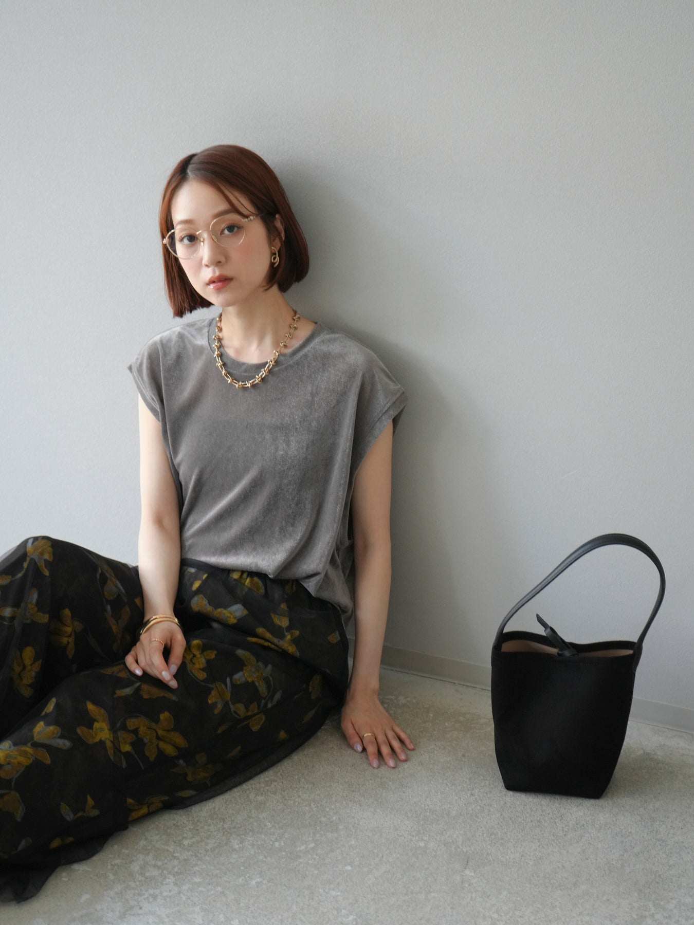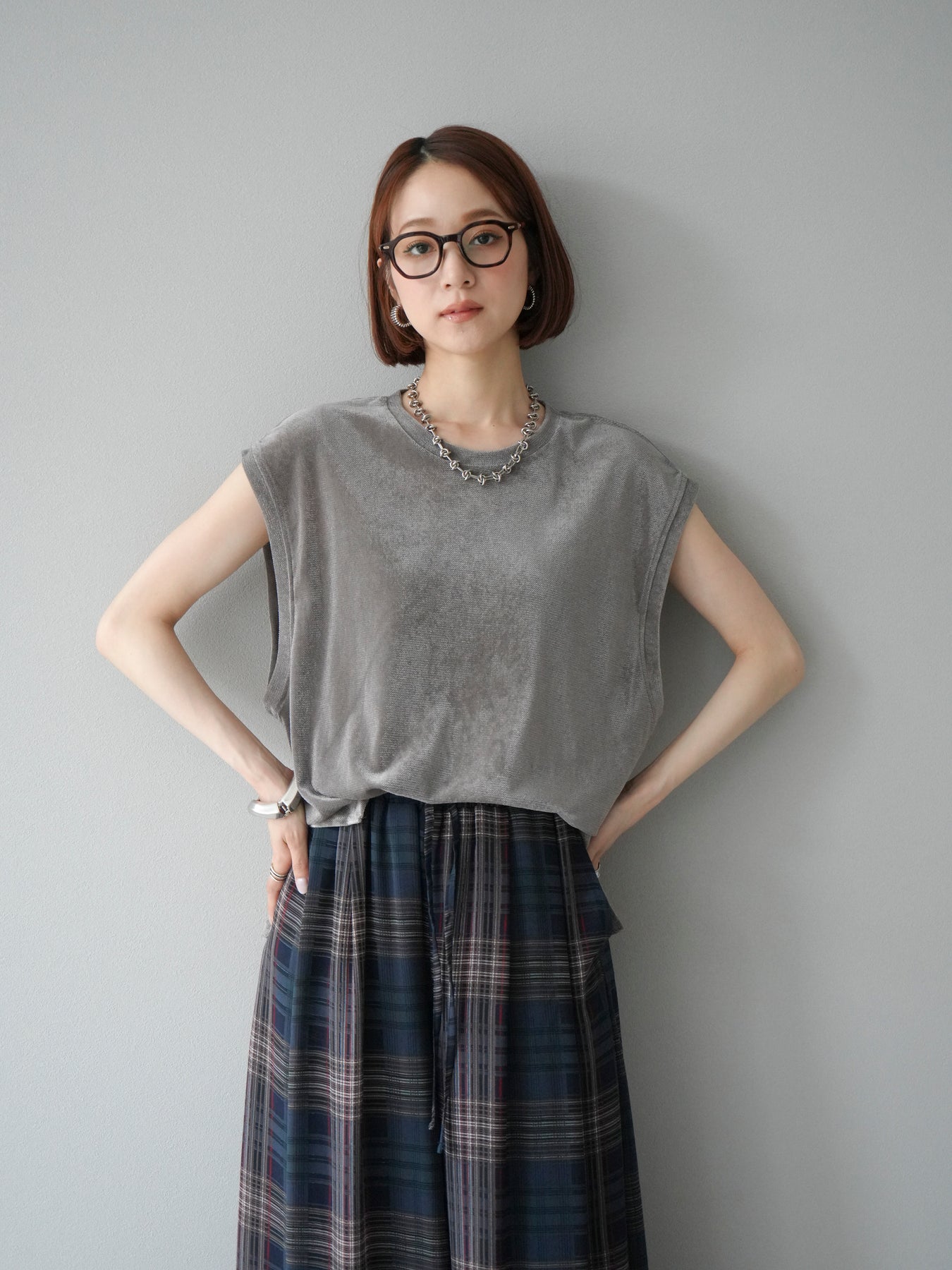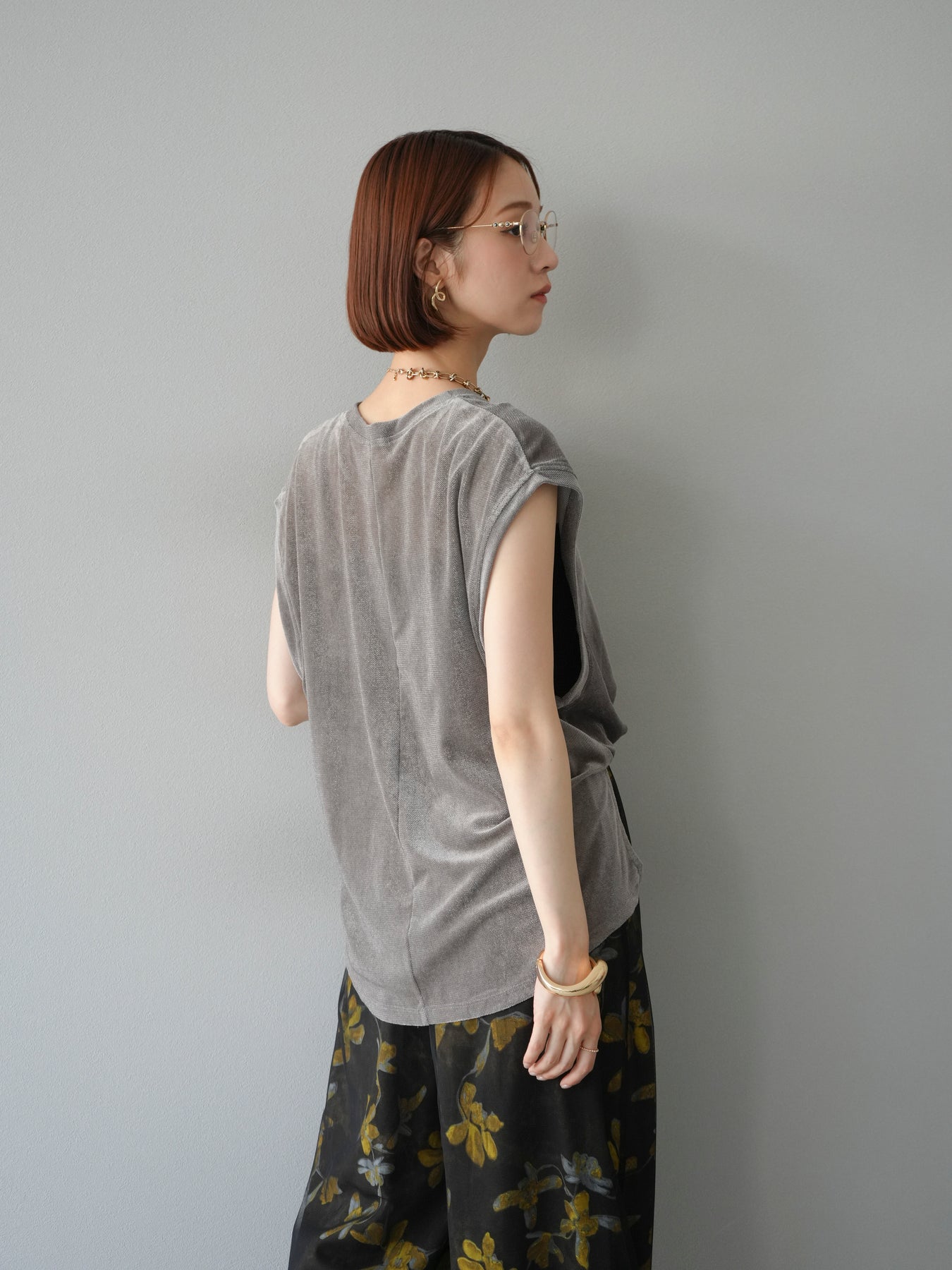 [予約]シアーフロッキーベロアルーズノースリーブTシャツ/チャコール