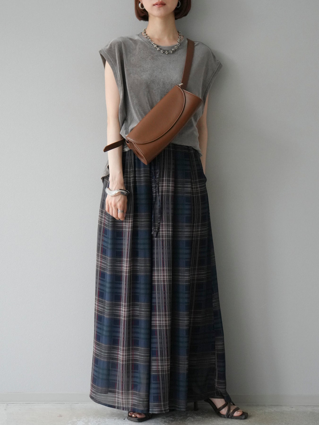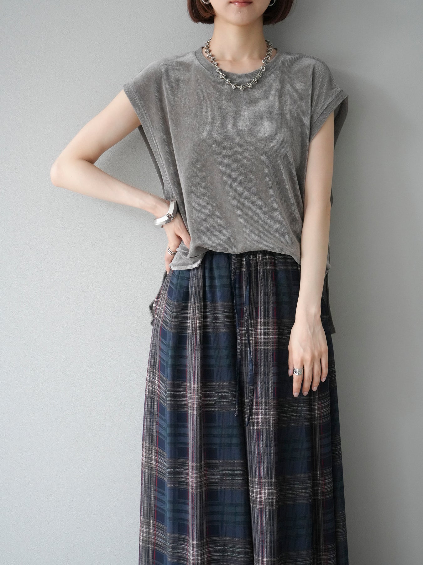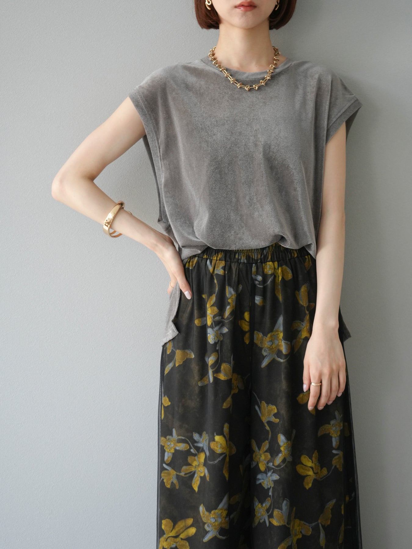 [予約]シアーフロッキーベロアルーズノースリーブTシャツ/チャコール