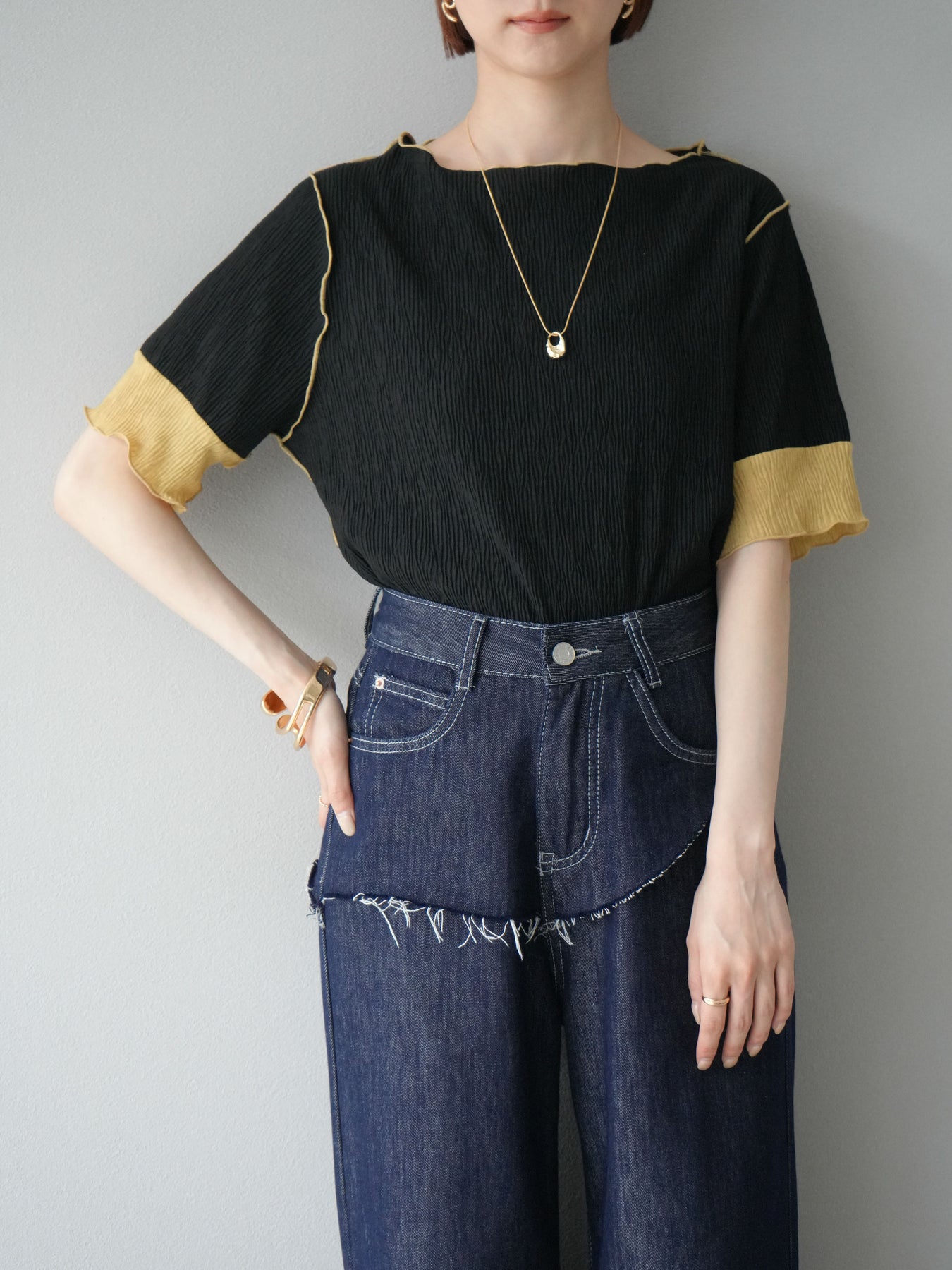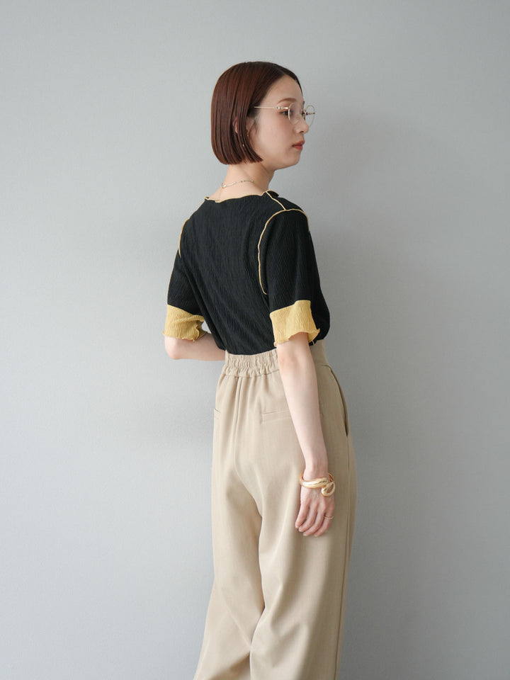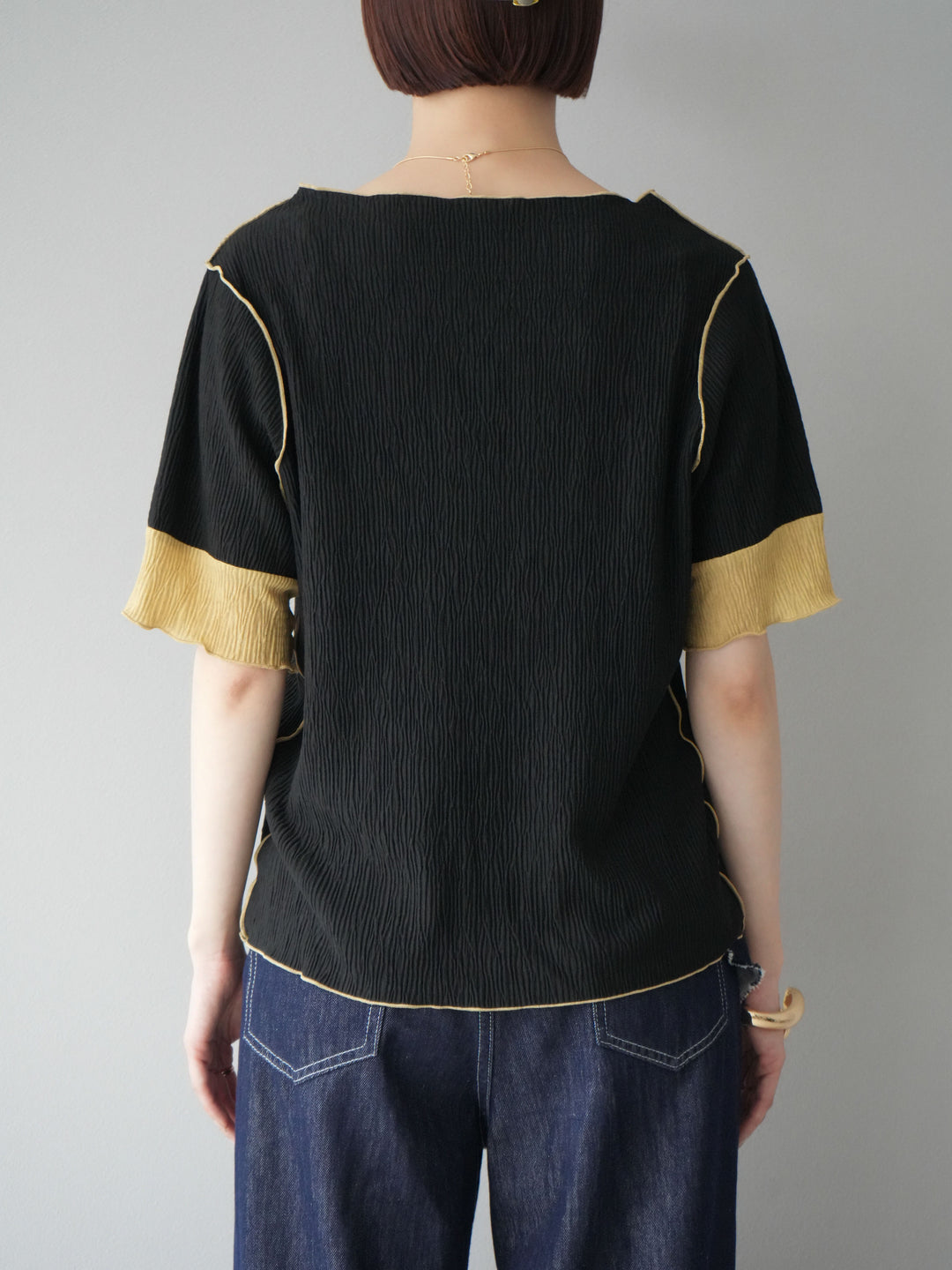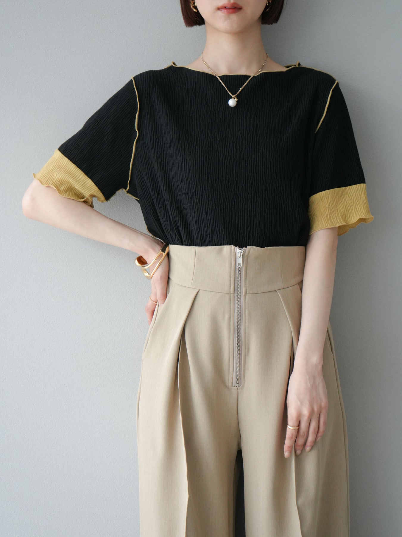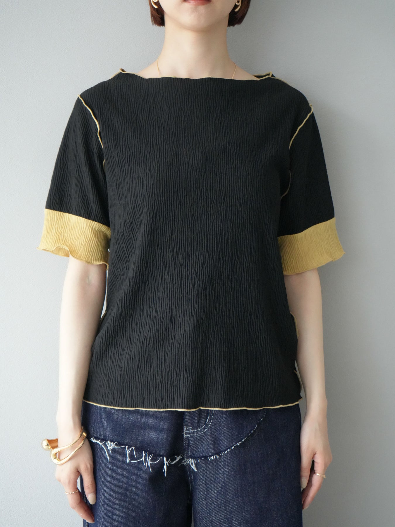 [予約]プリーツ配色ボートネックプルオーバー/ブラック