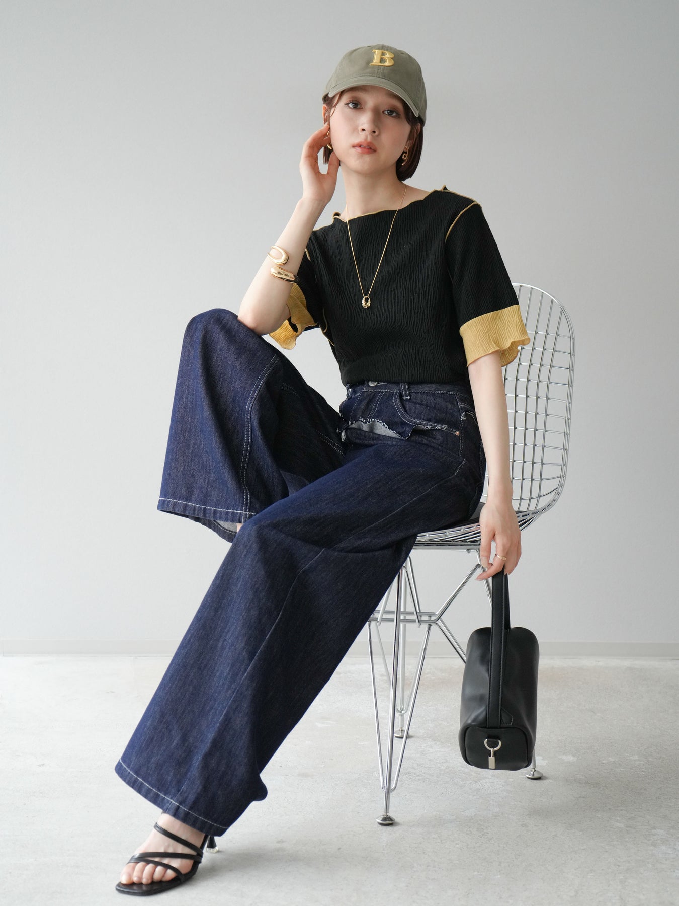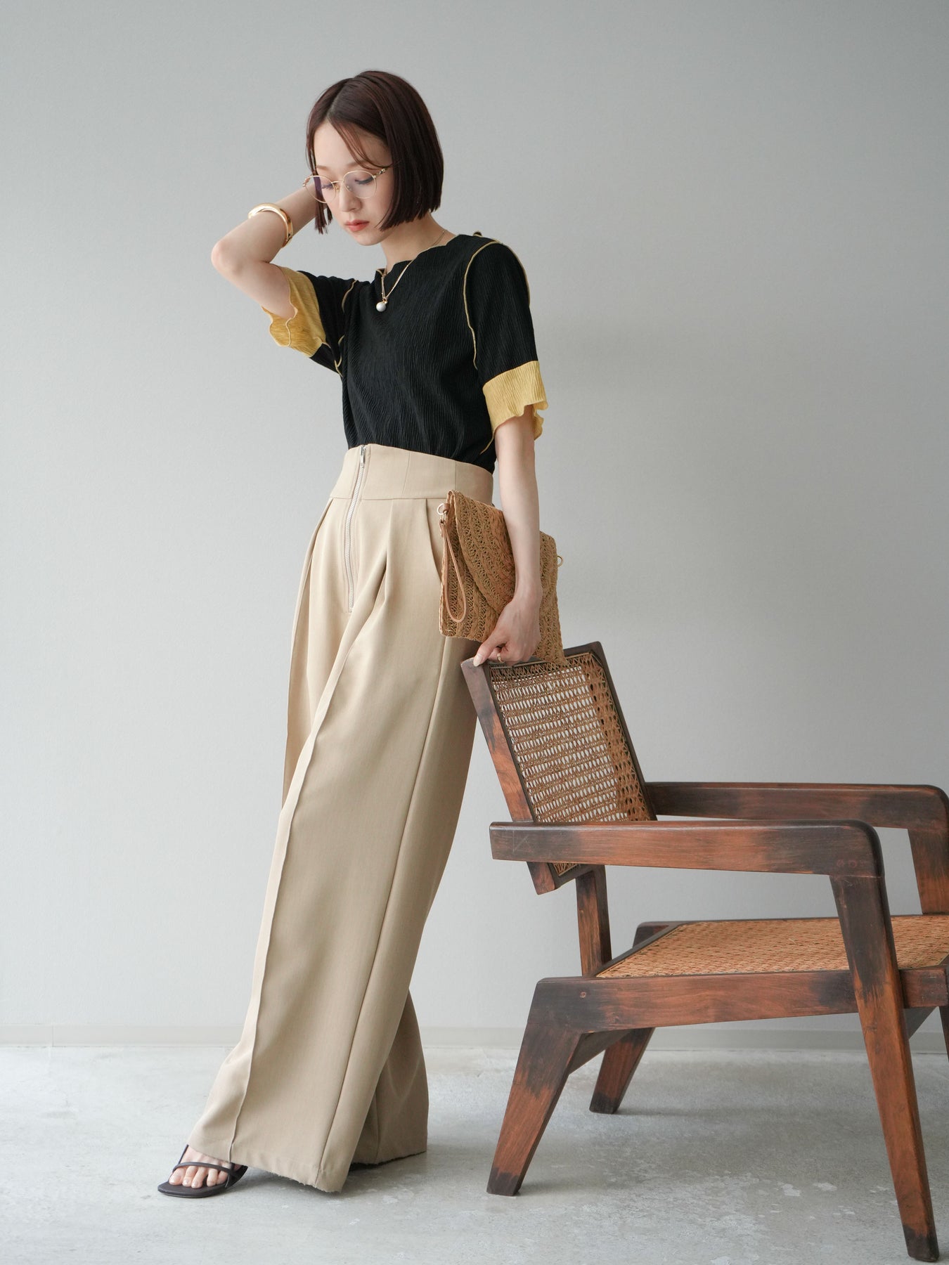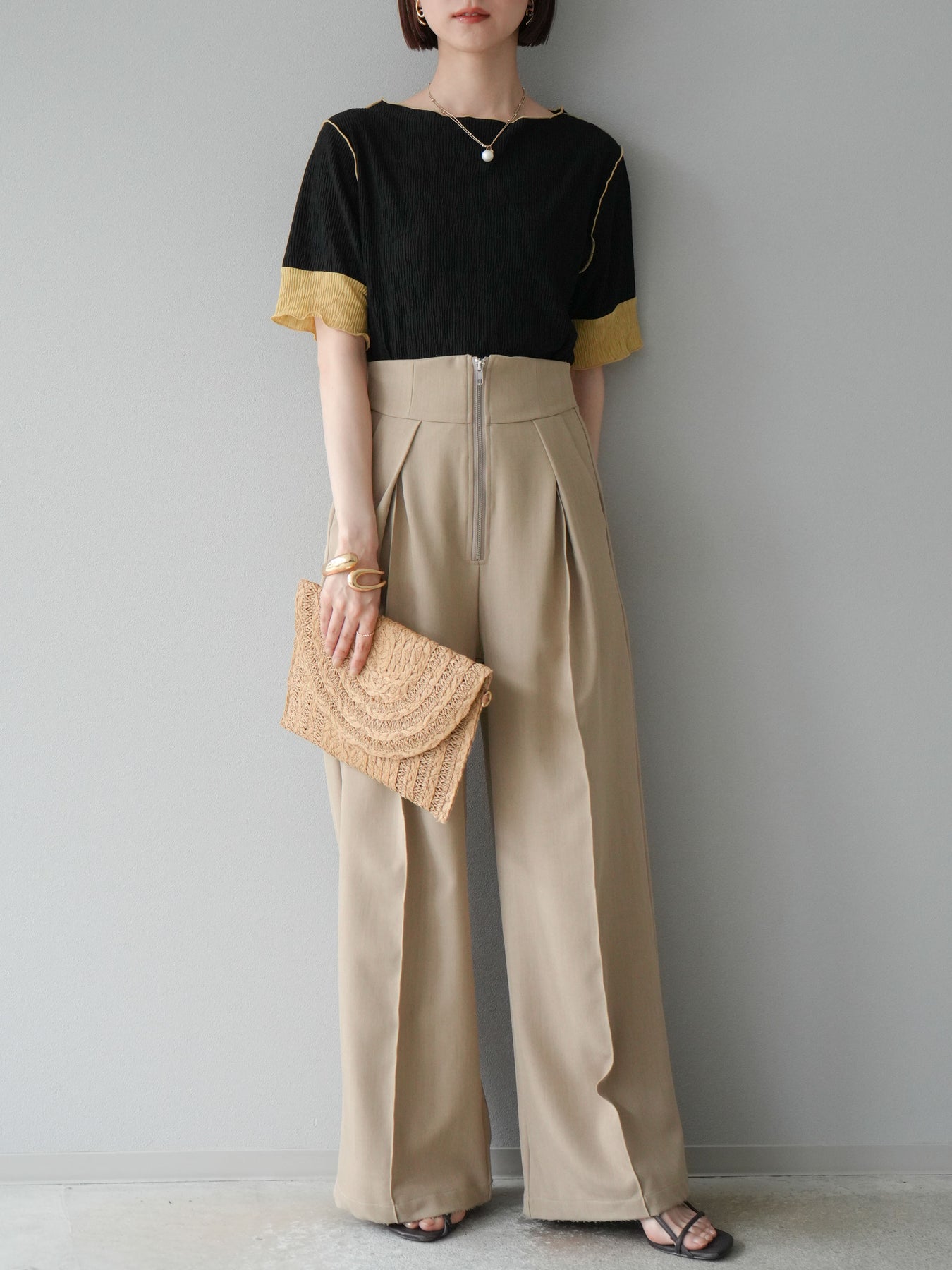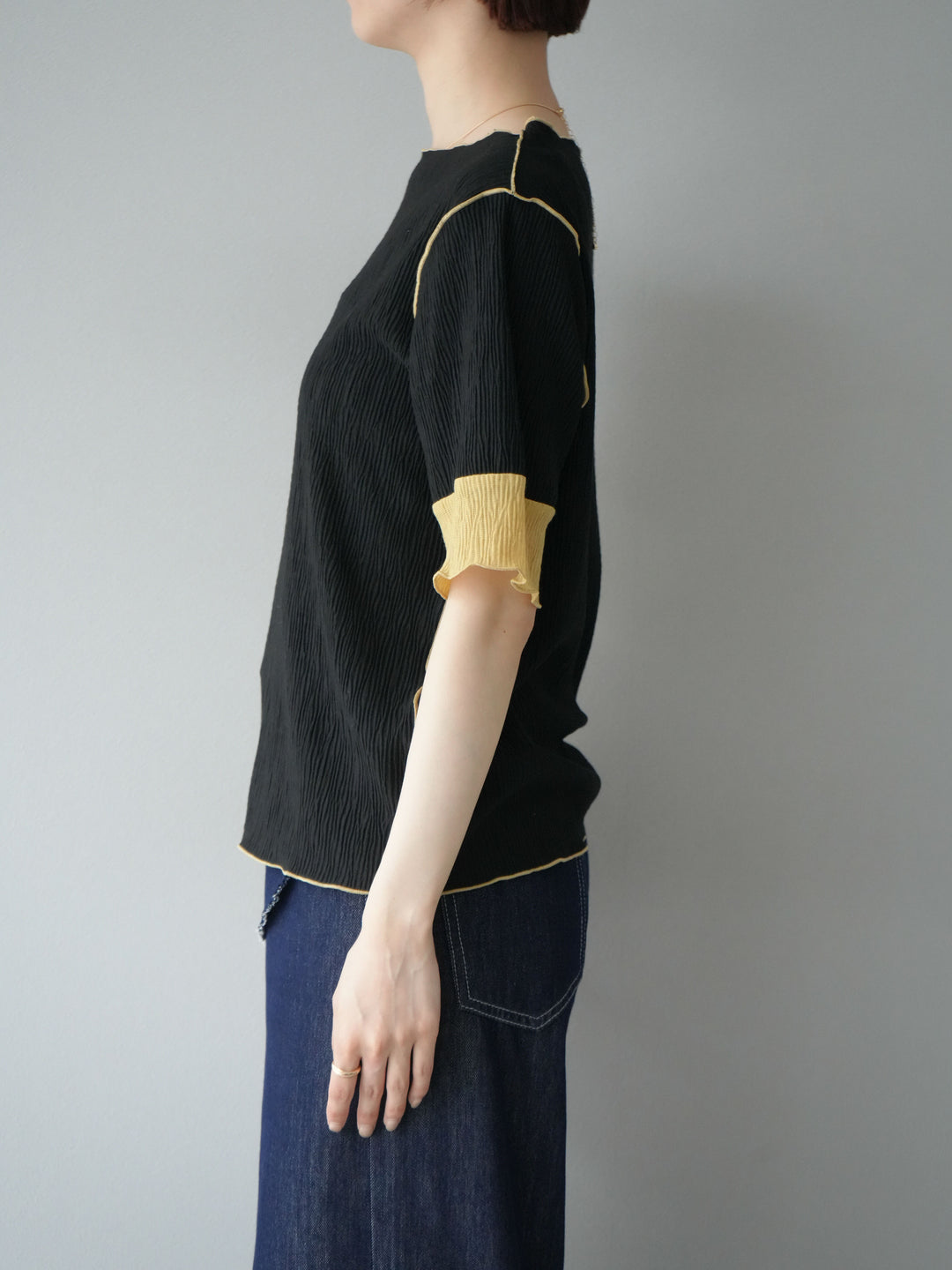 [予約]プリーツ配色ボートネックプルオーバー/ブラック