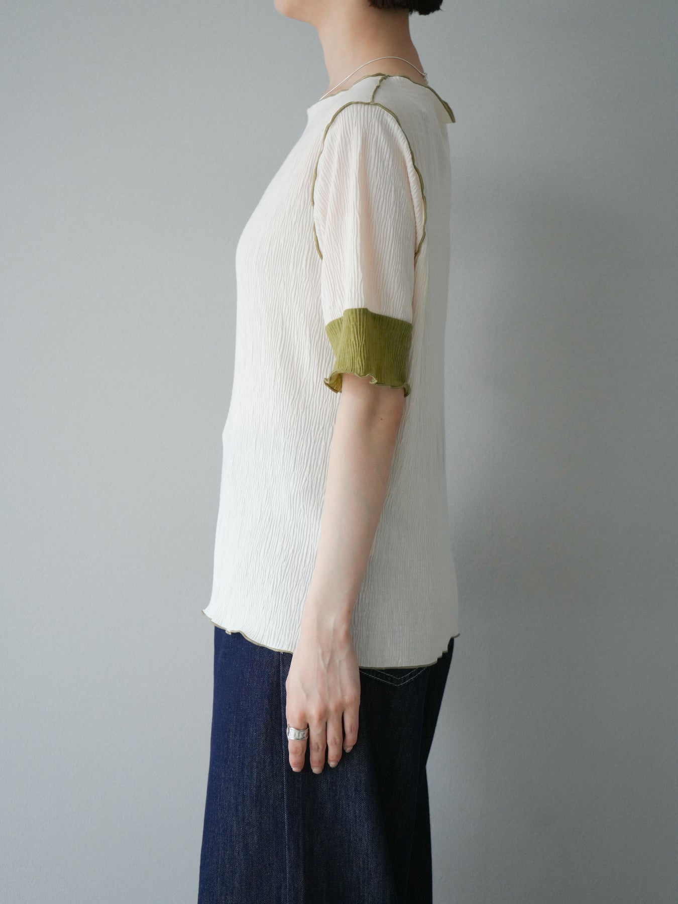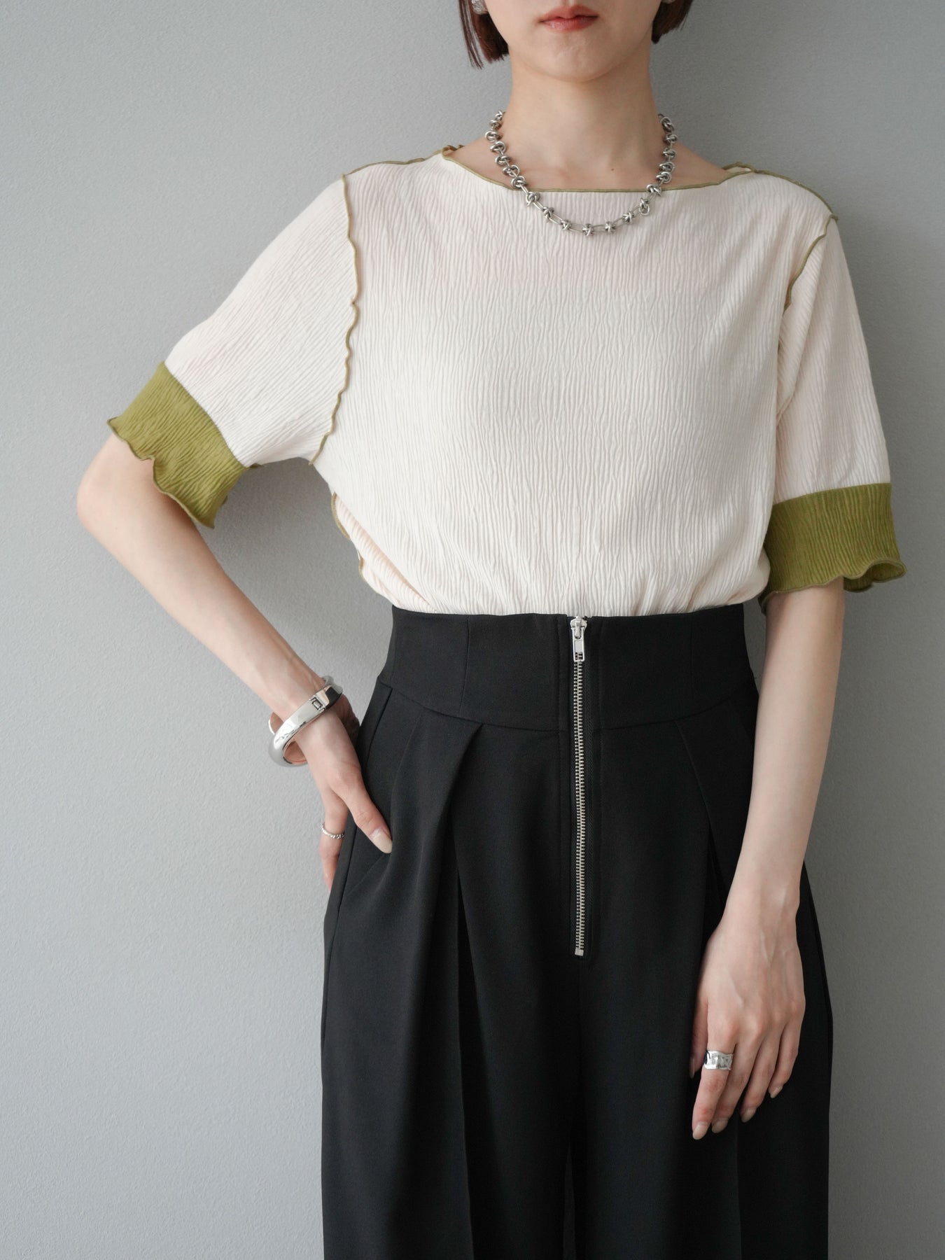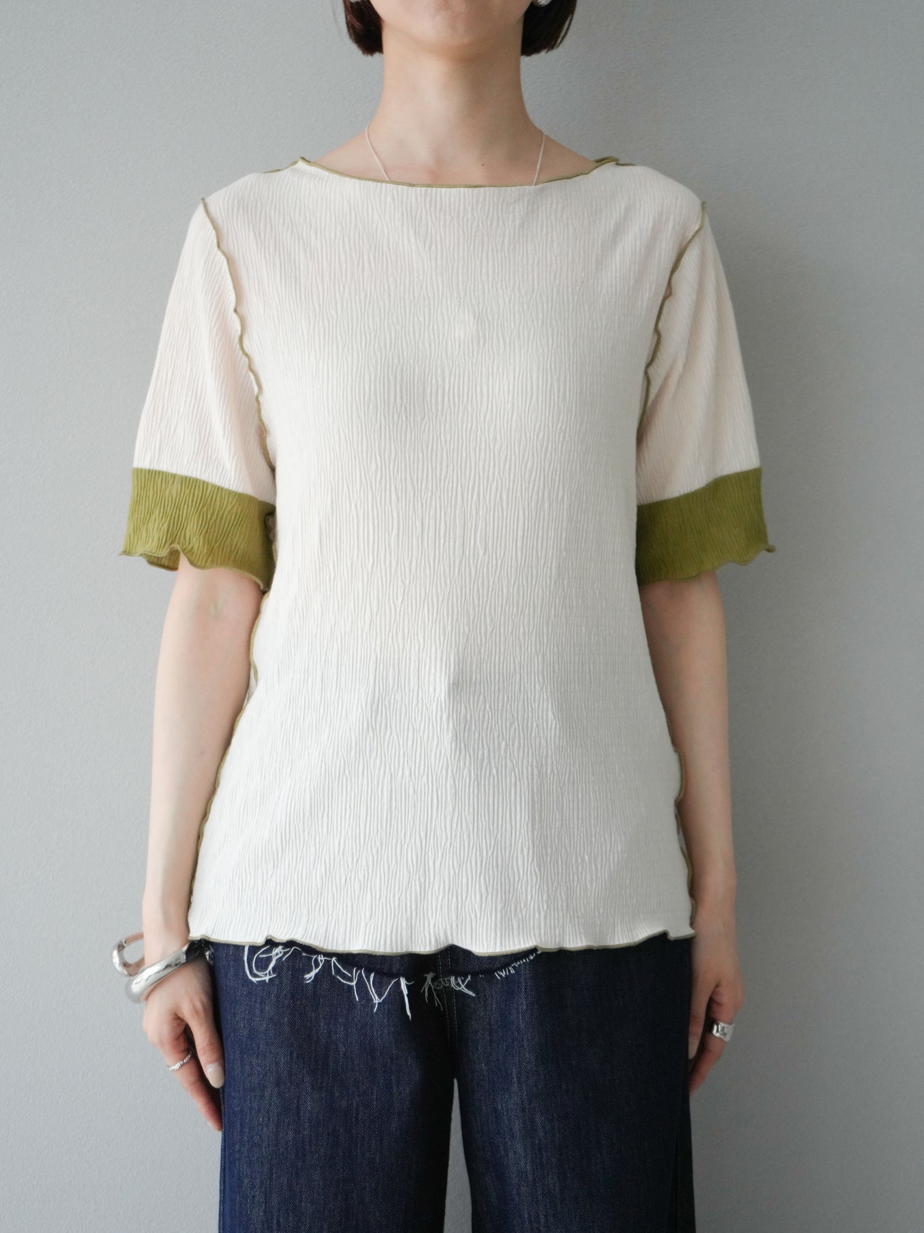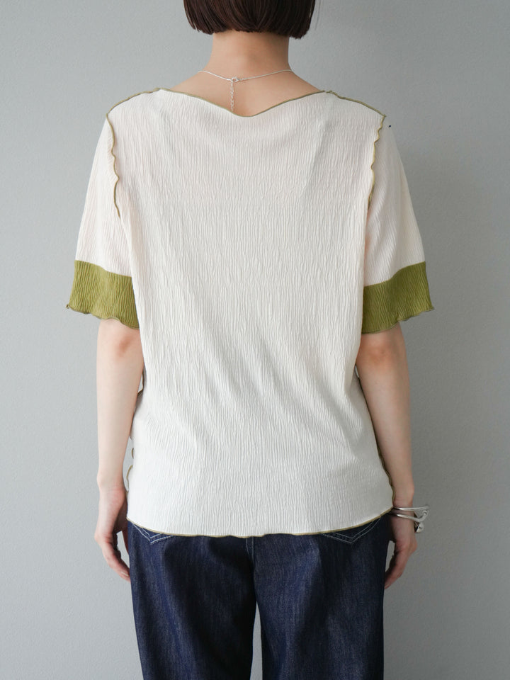 [予約]プリーツ配色ボートネックプルオーバー/アイボリー