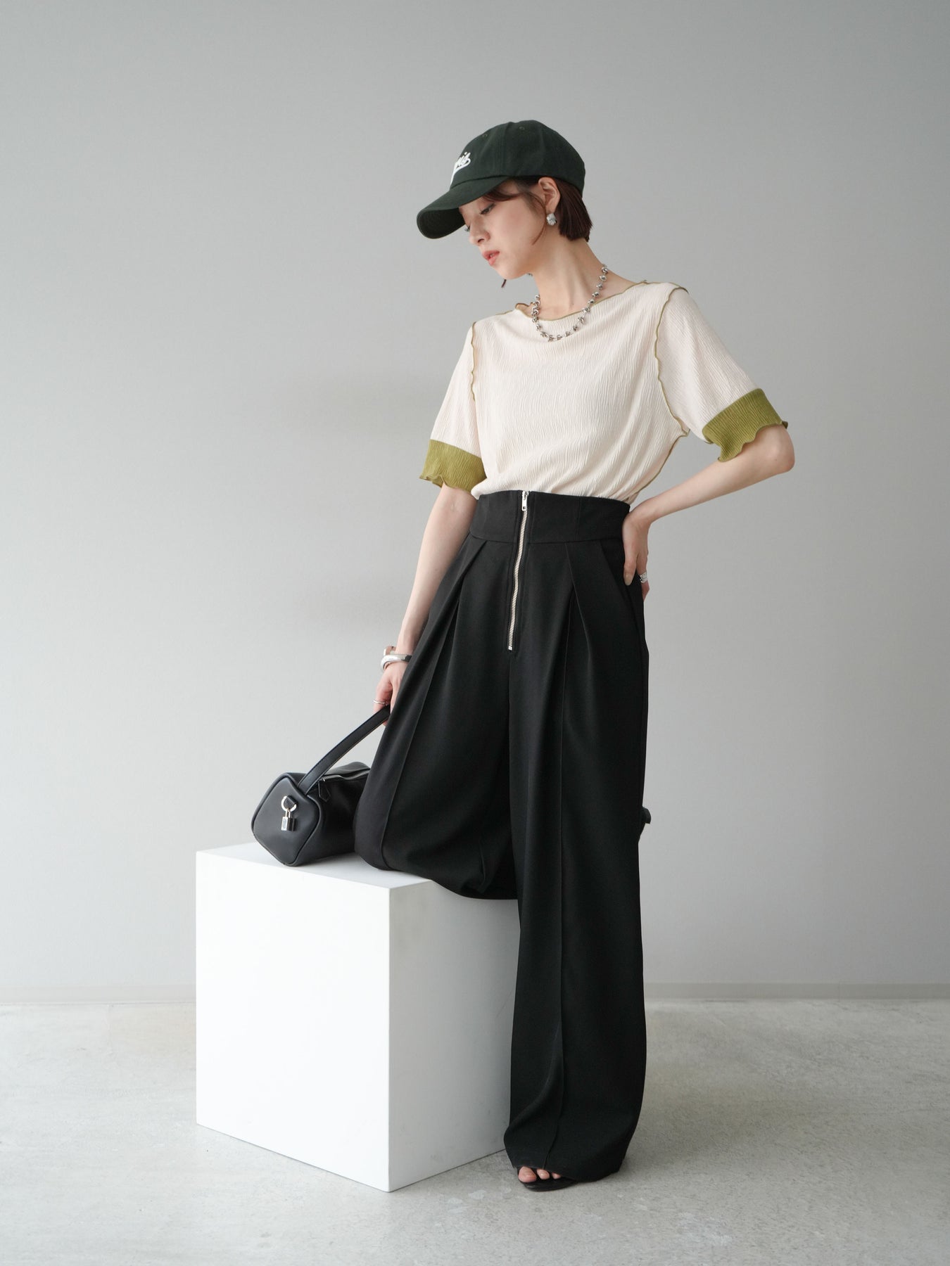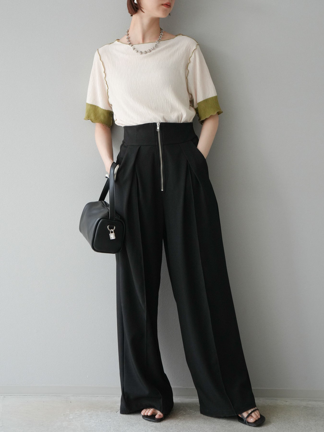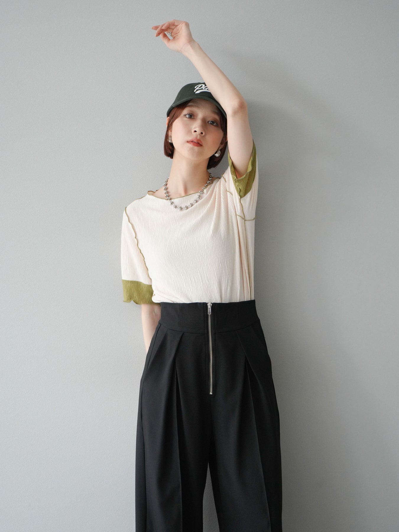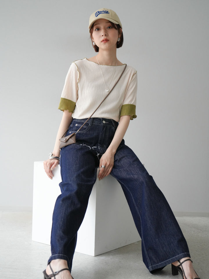 [予約]プリーツ配色ボートネックプルオーバー/アイボリー