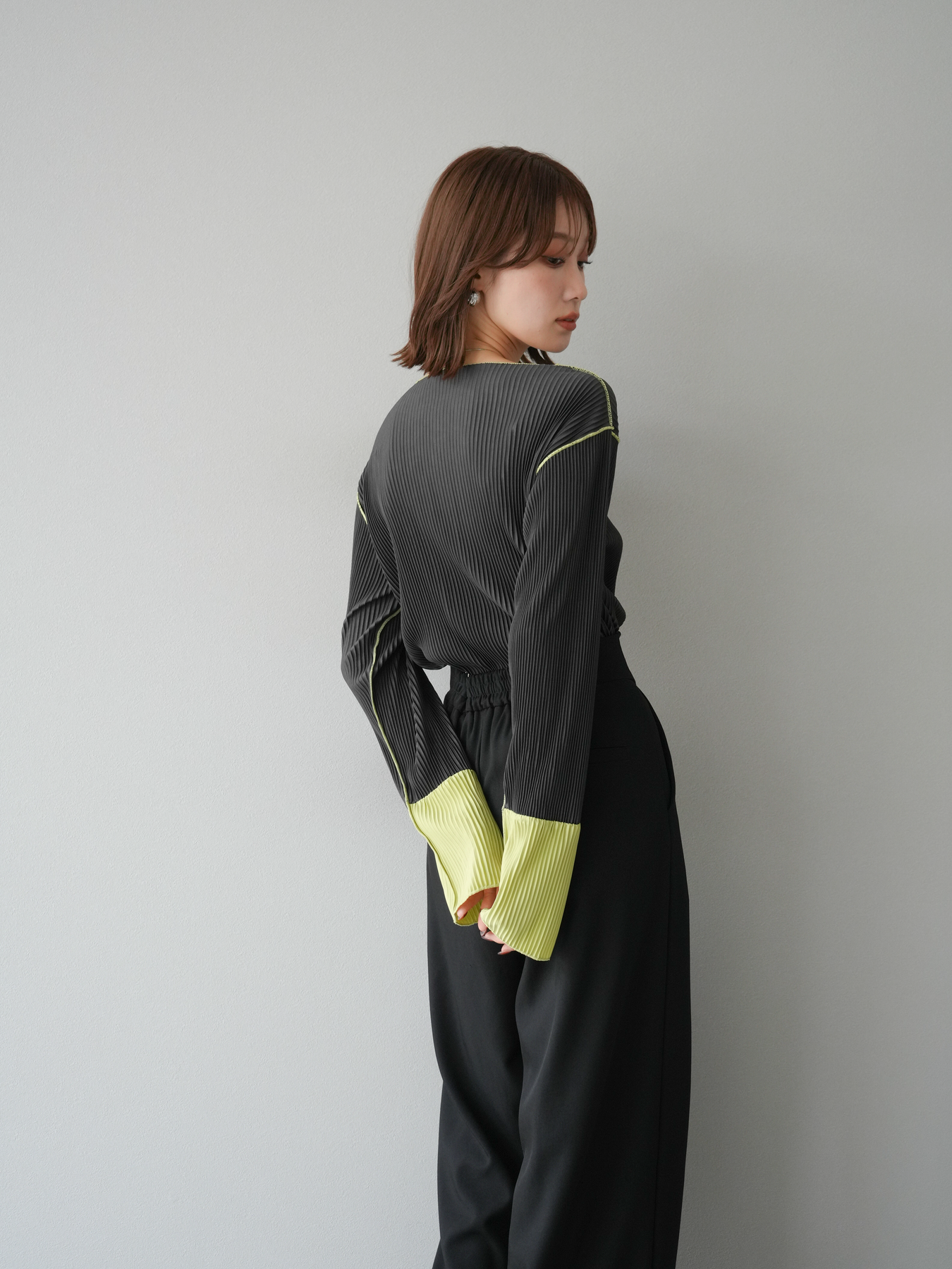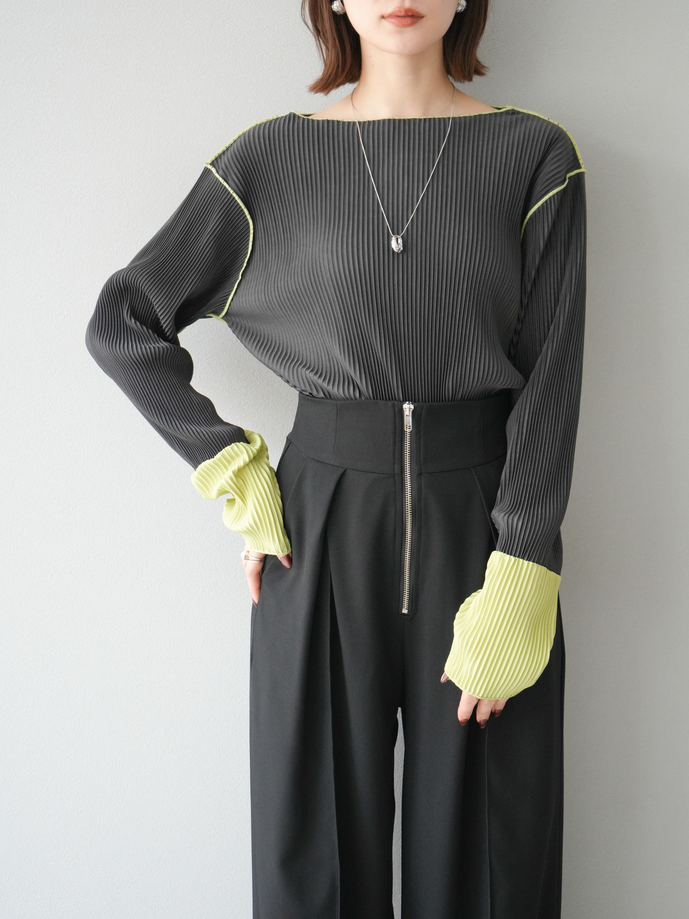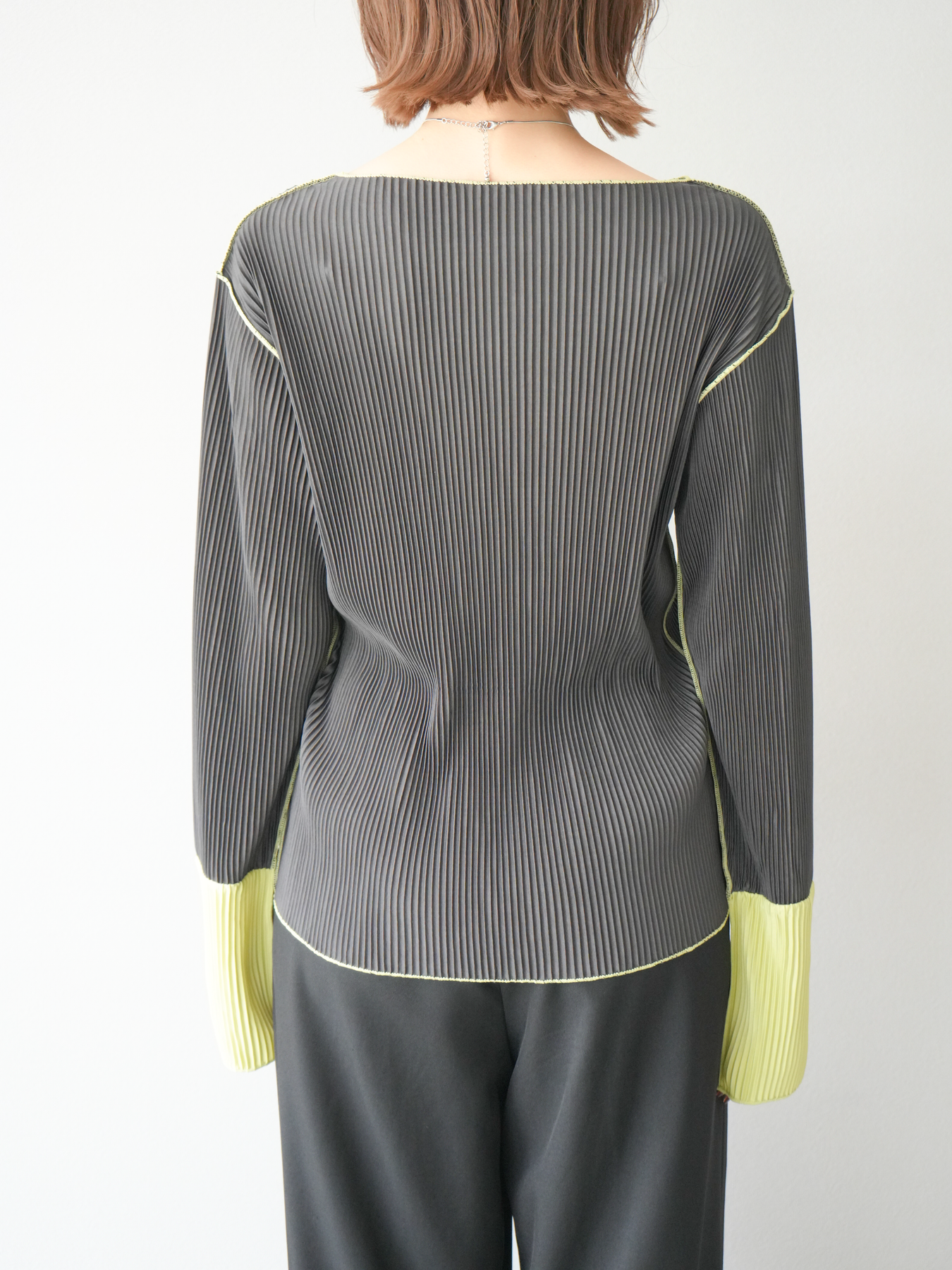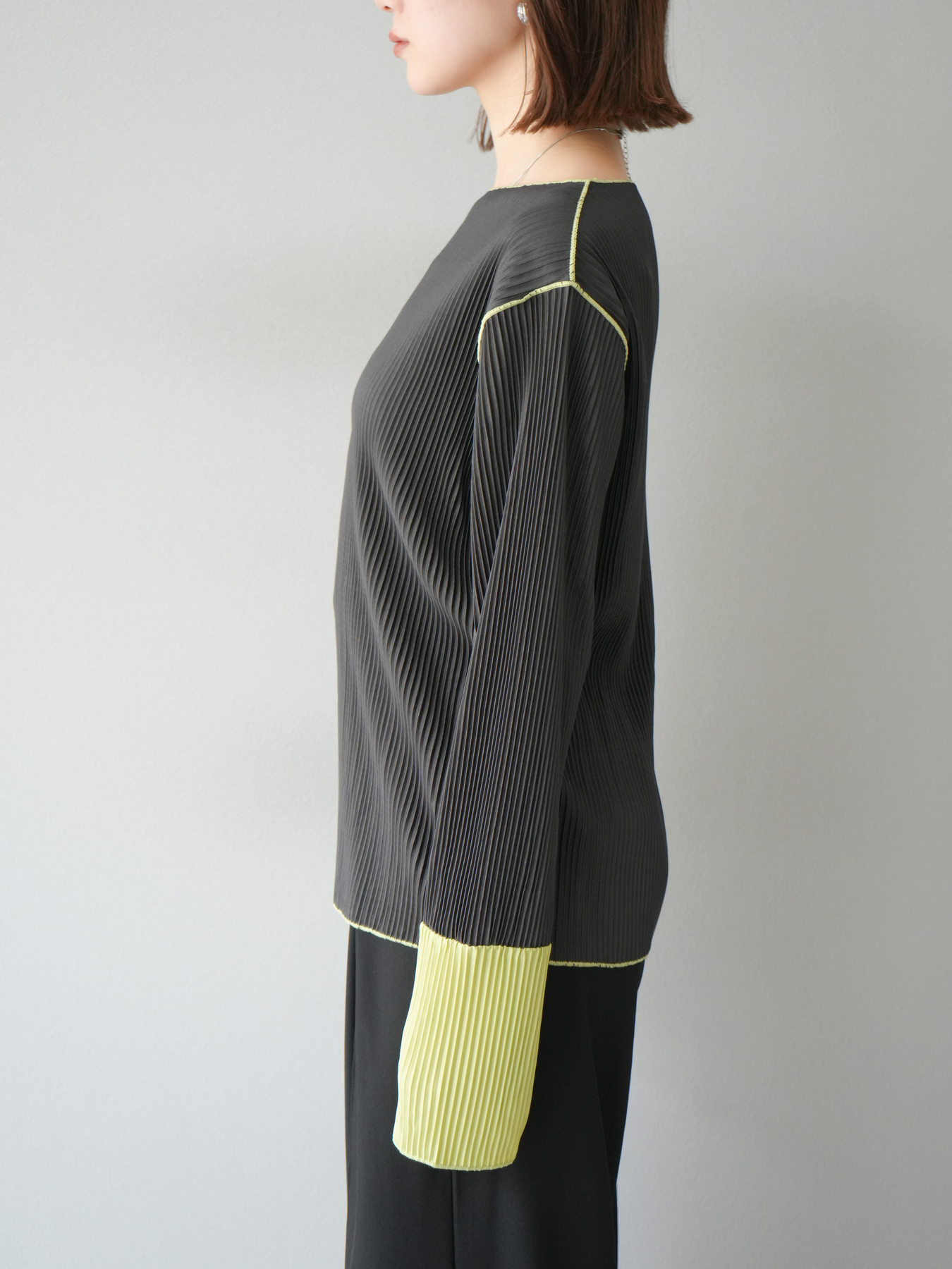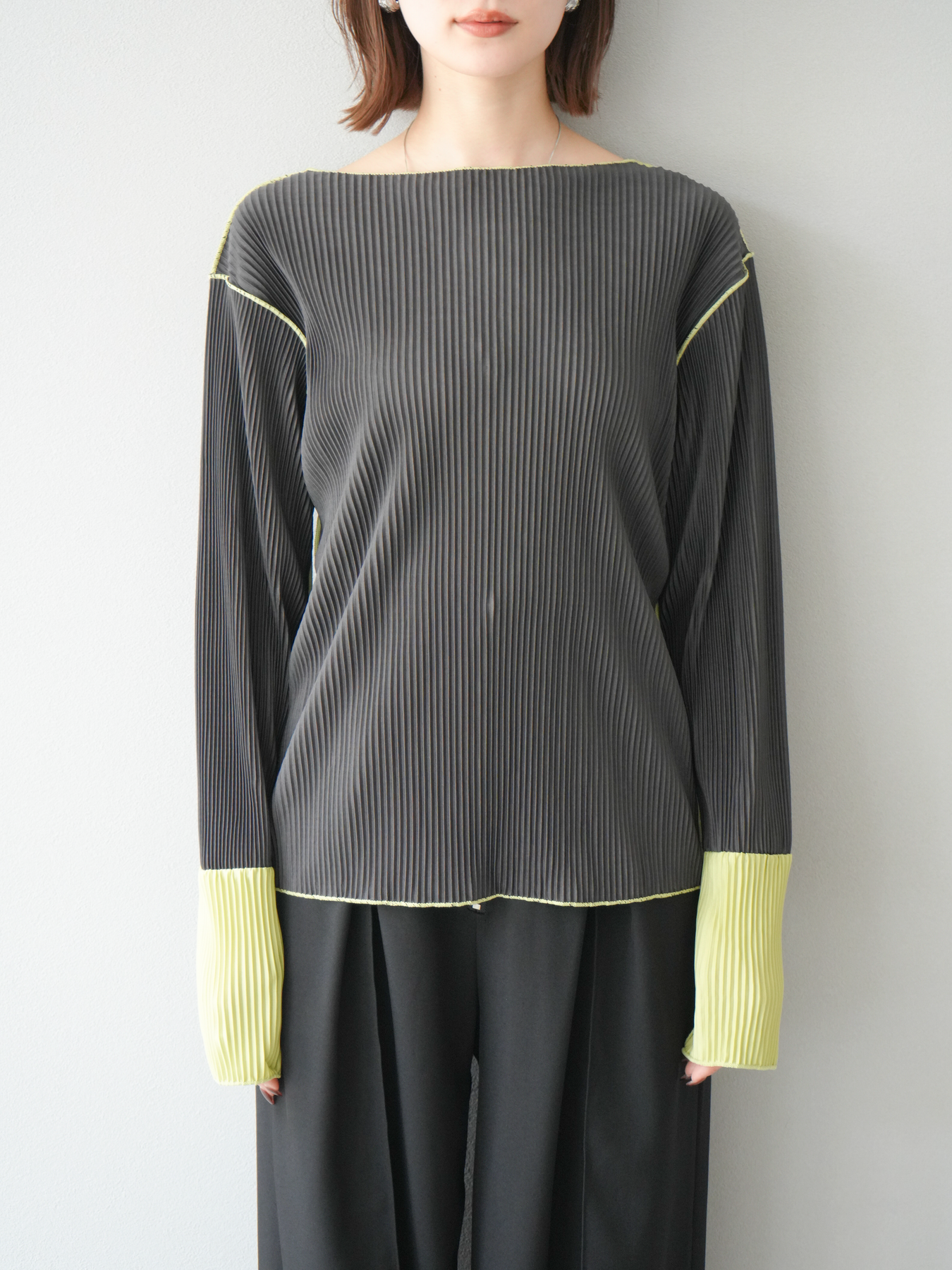 [予約]バイカラープリーツトップス/チャコール