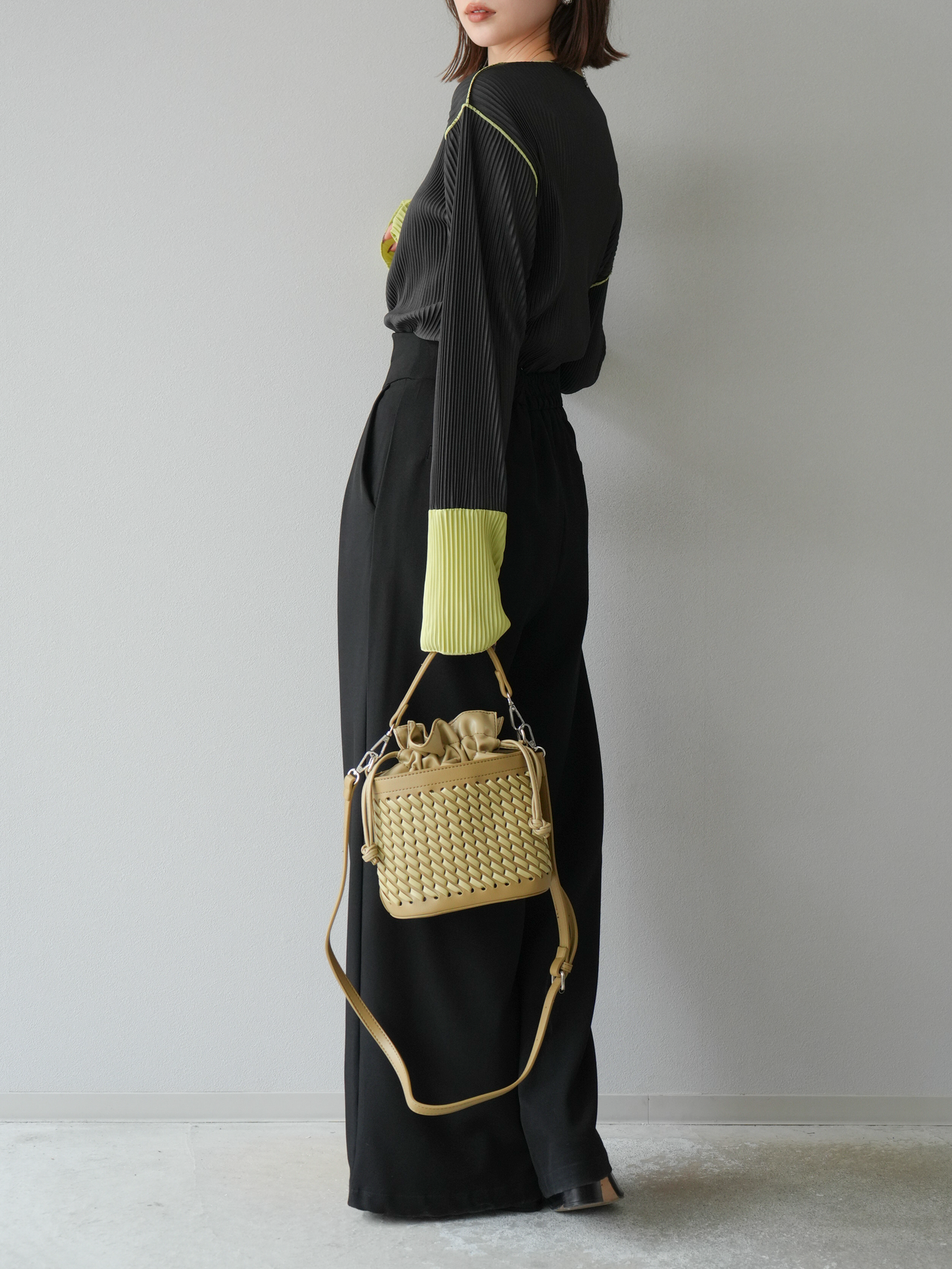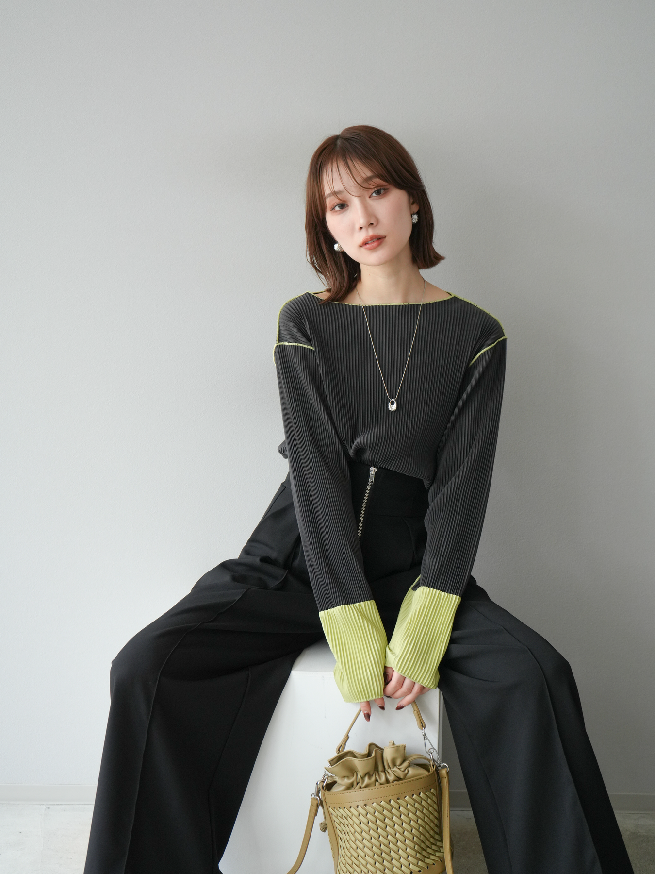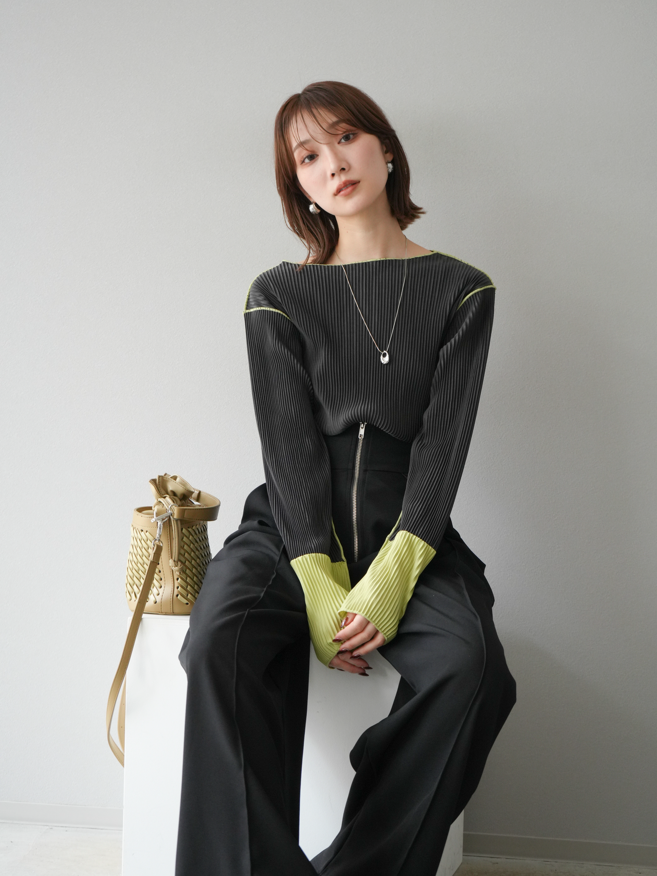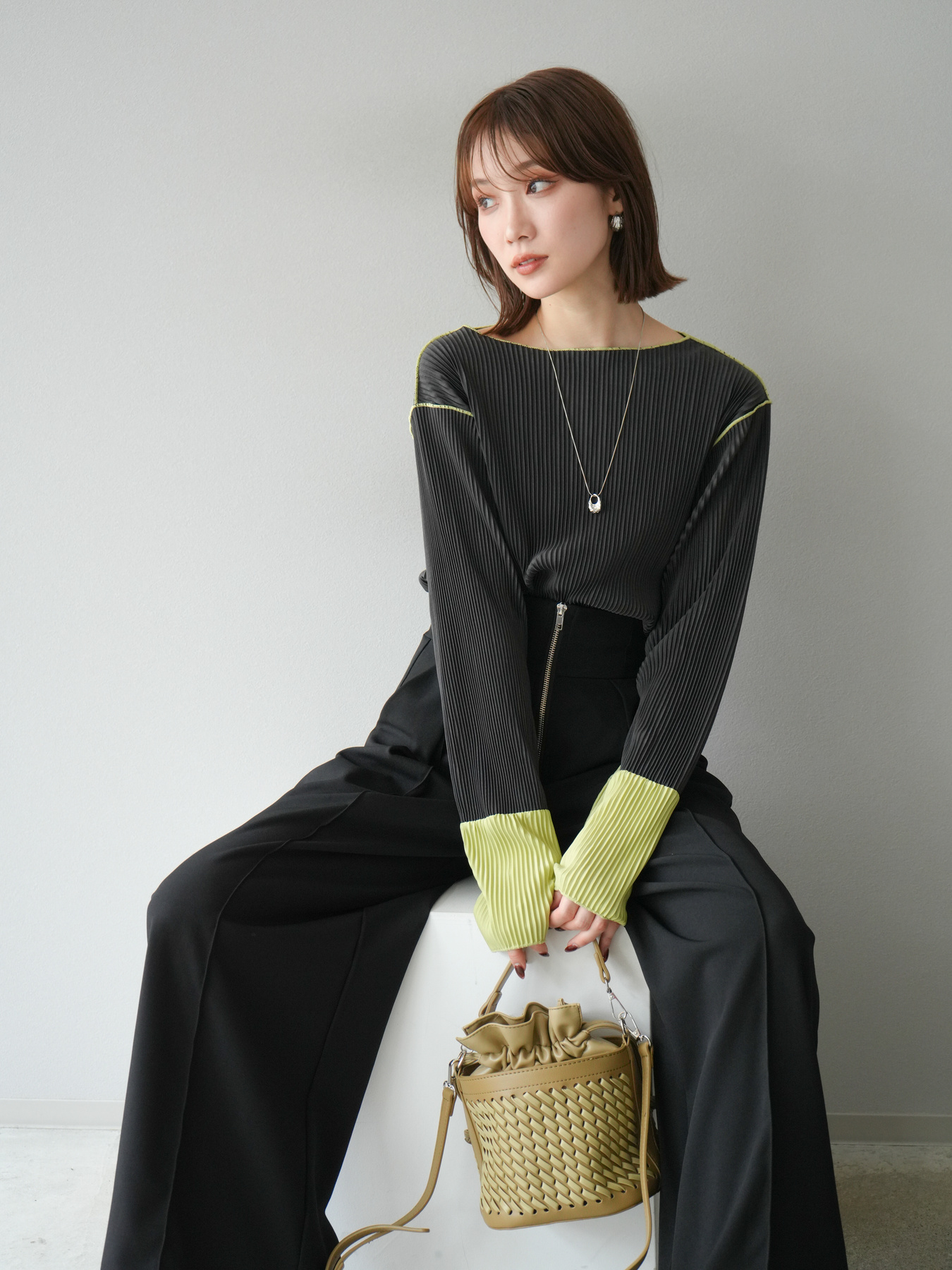 [予約]バイカラープリーツトップスに関連する商品を探す↓